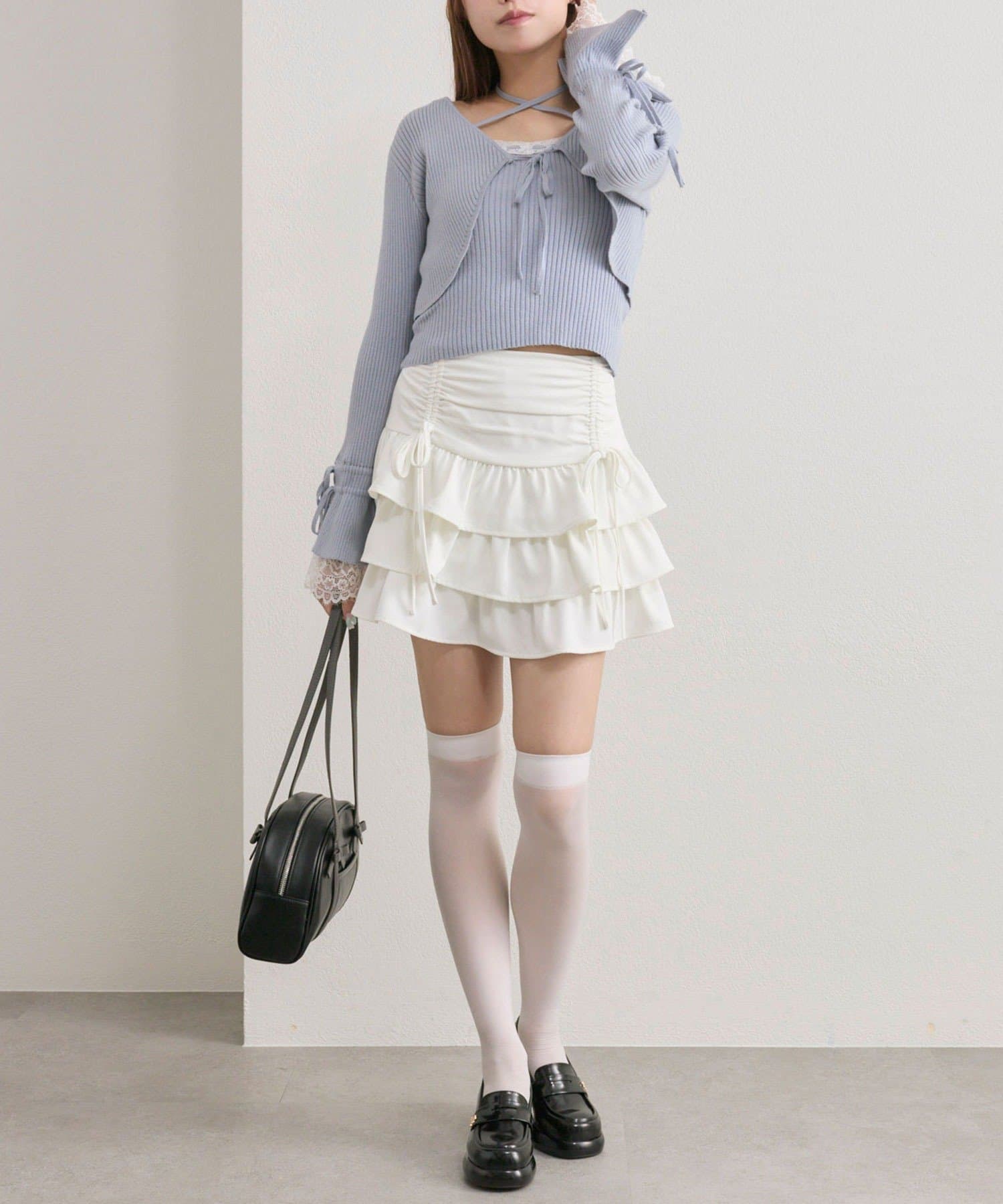 ・ミニスカート合わせでフェミニンにまとめるのがおすすめ。