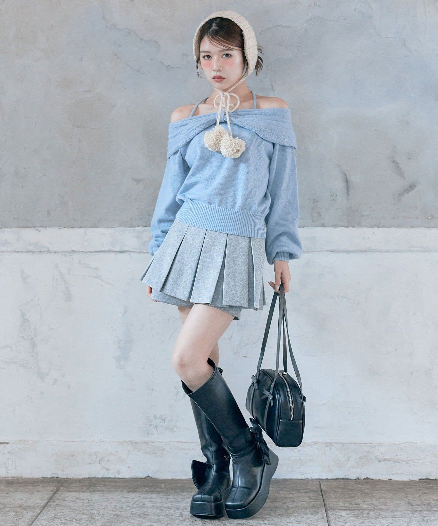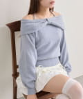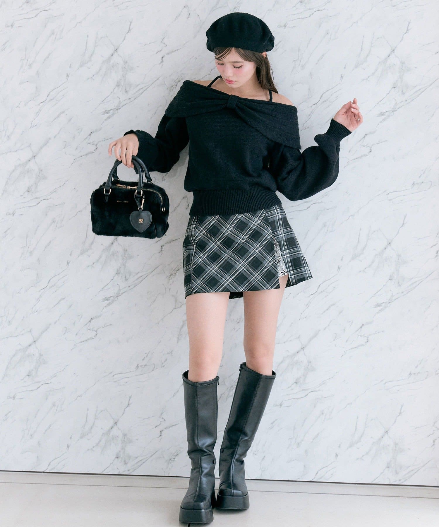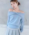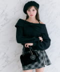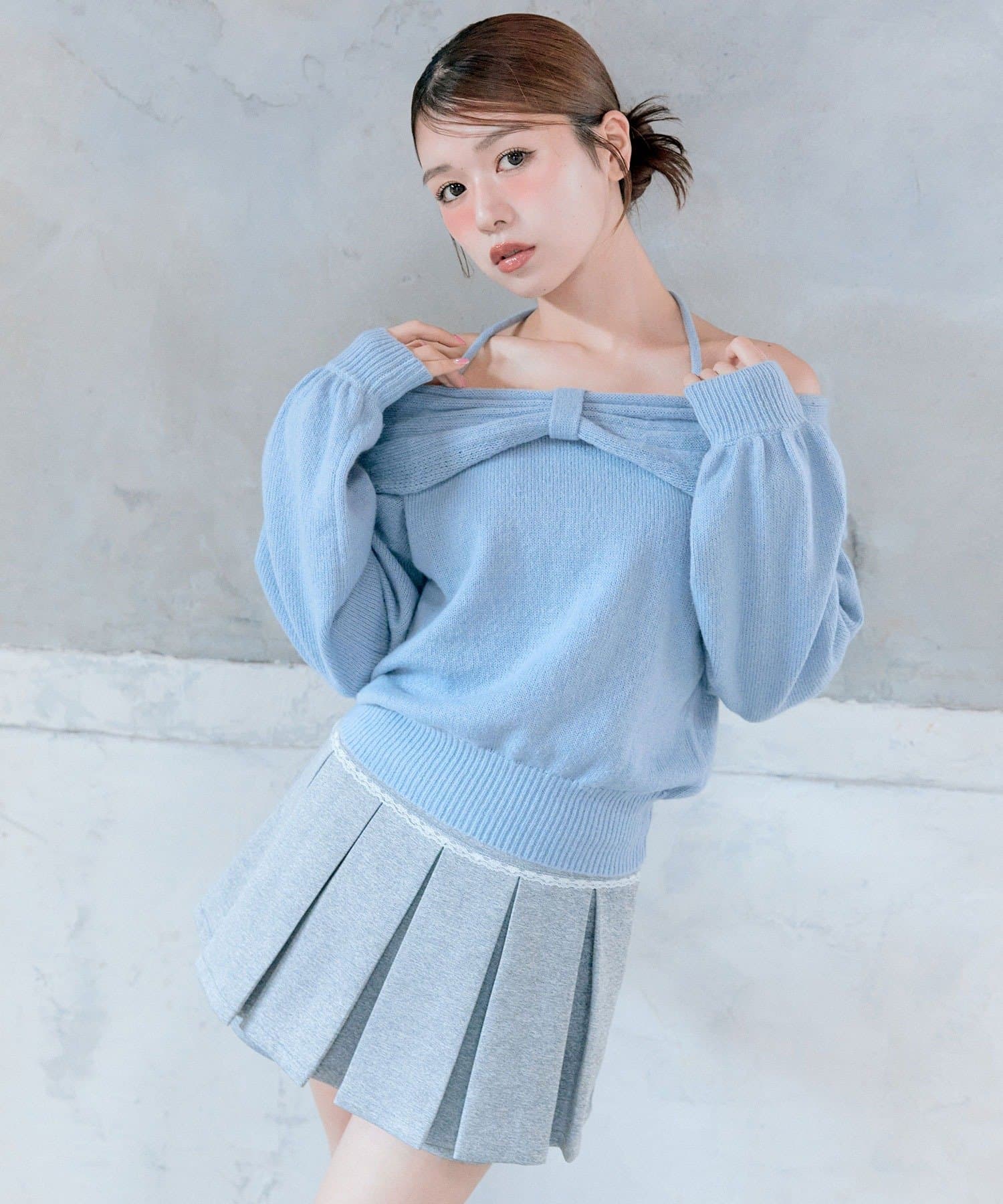 ・デコルテが綺麗にみえるオフショルと胸元のリボンがポイントで、大人かわいい印象になります。