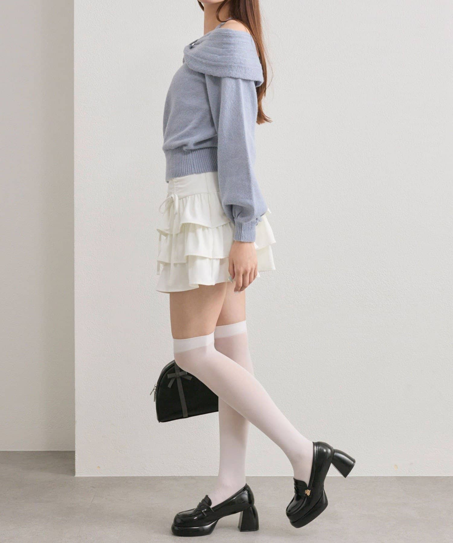 ・ミニスカート合わせでとことんガーリーにまとめるのがおすすめ。