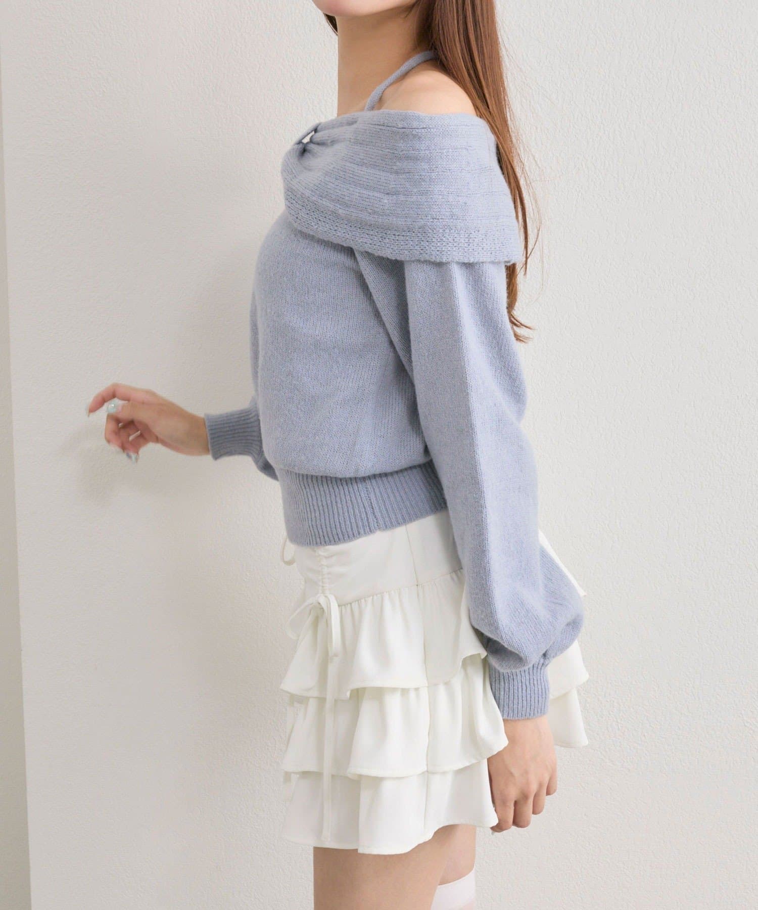 ・ホルターネックデザインで、顔周りも華やかに着れます。
