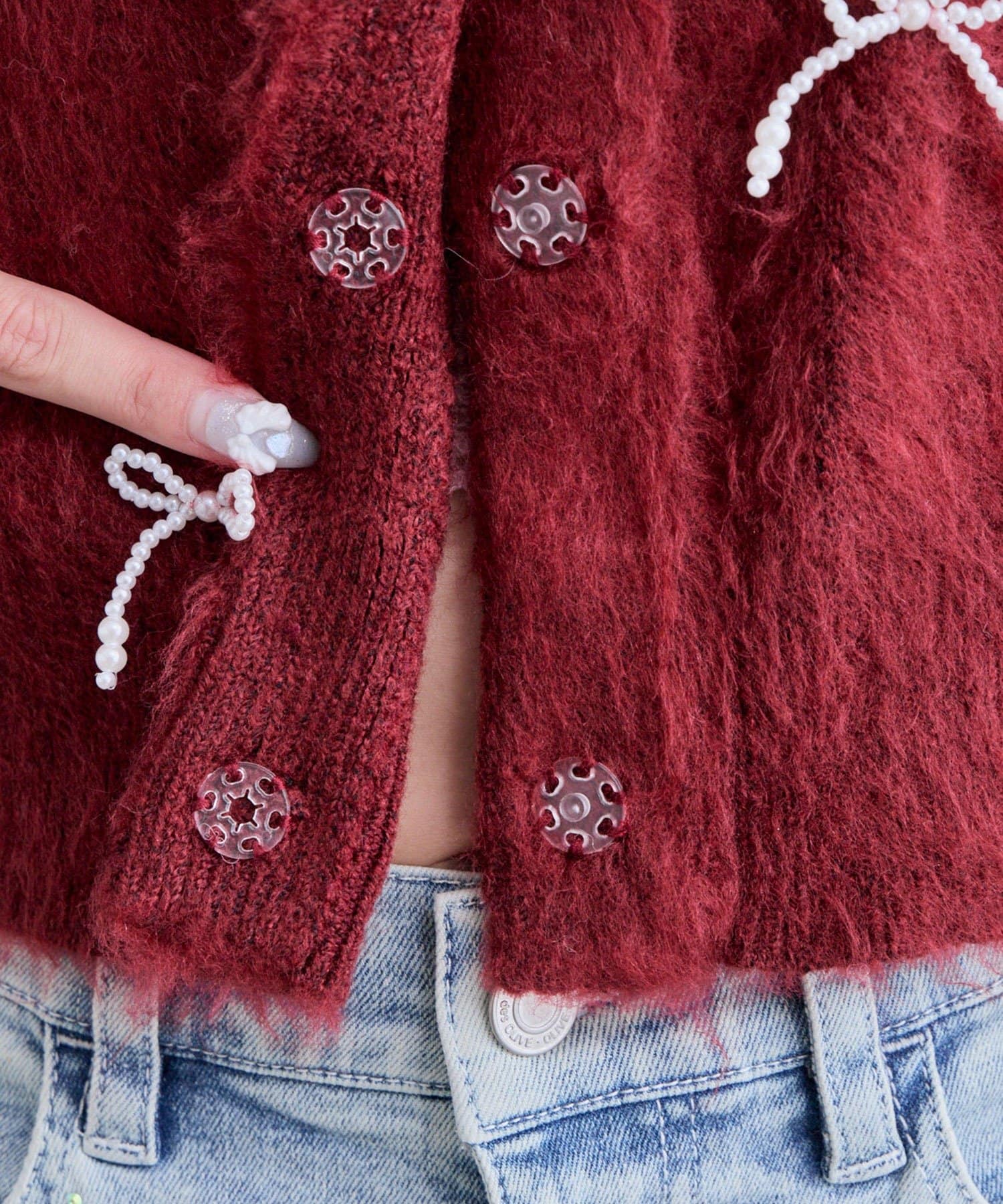 ・パールリボンをフロントに散りばめた、ガーリーデザインのニット。