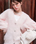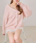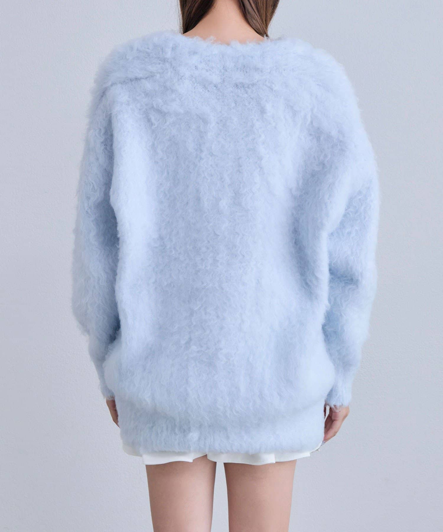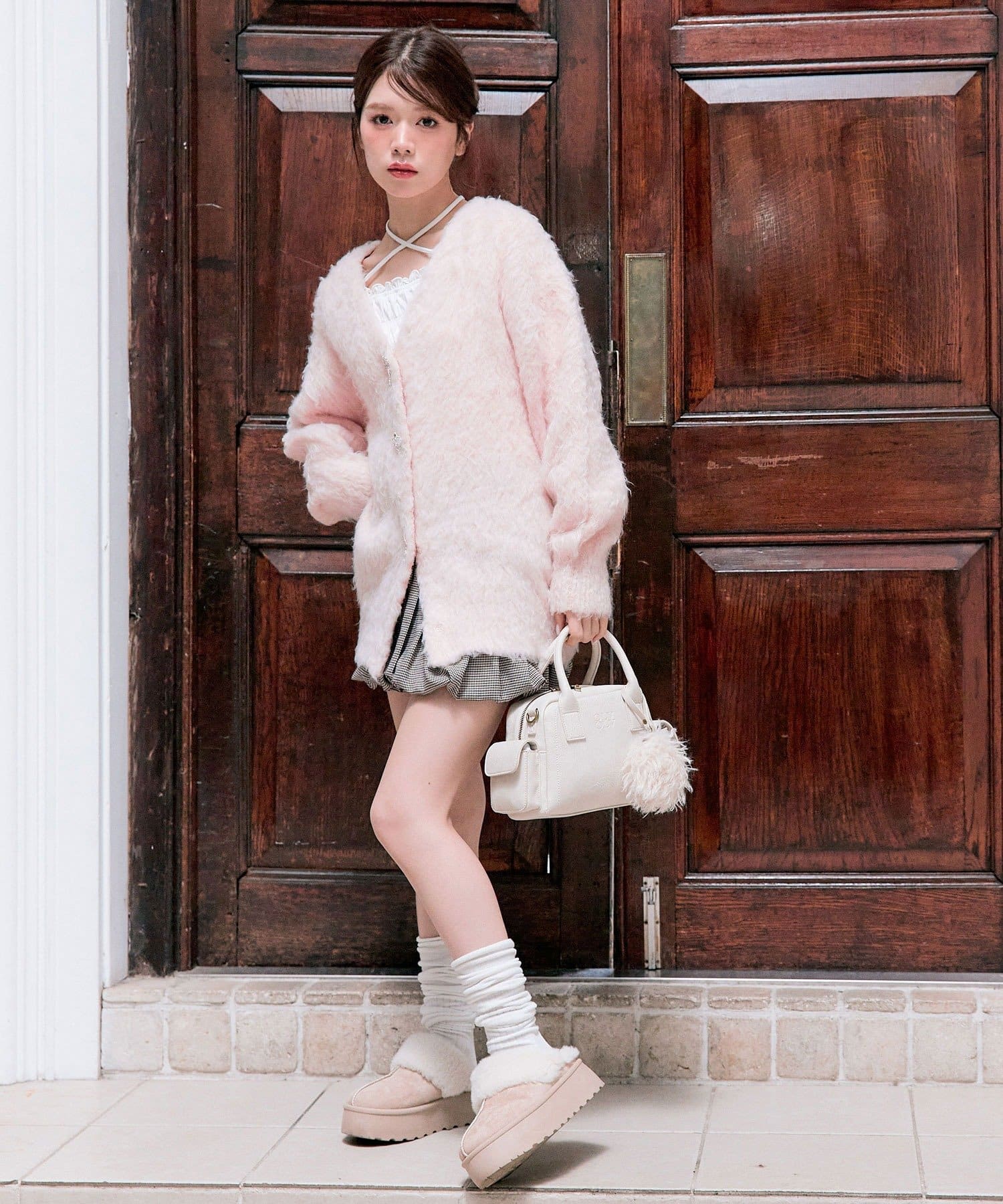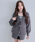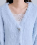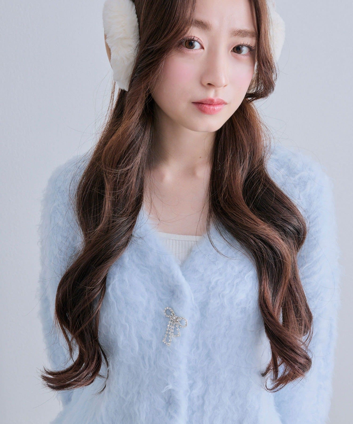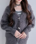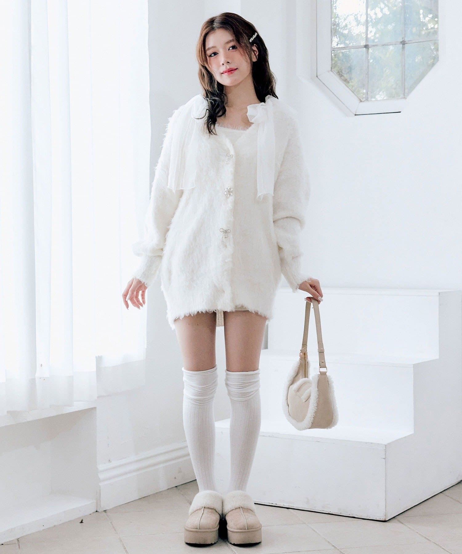 ・雪の結晶とリボンのビジューがかわいい、ロング丈のカーディガン。