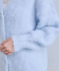 ・雪の結晶とリボンのビジューがかわいい、ロング丈のカーディガン。