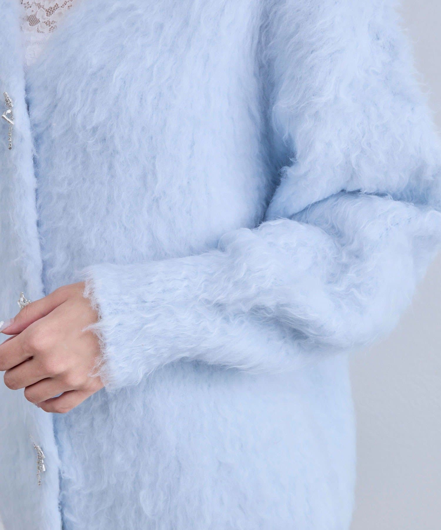 きらきらのビジューが冬に映えるカーディガン