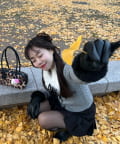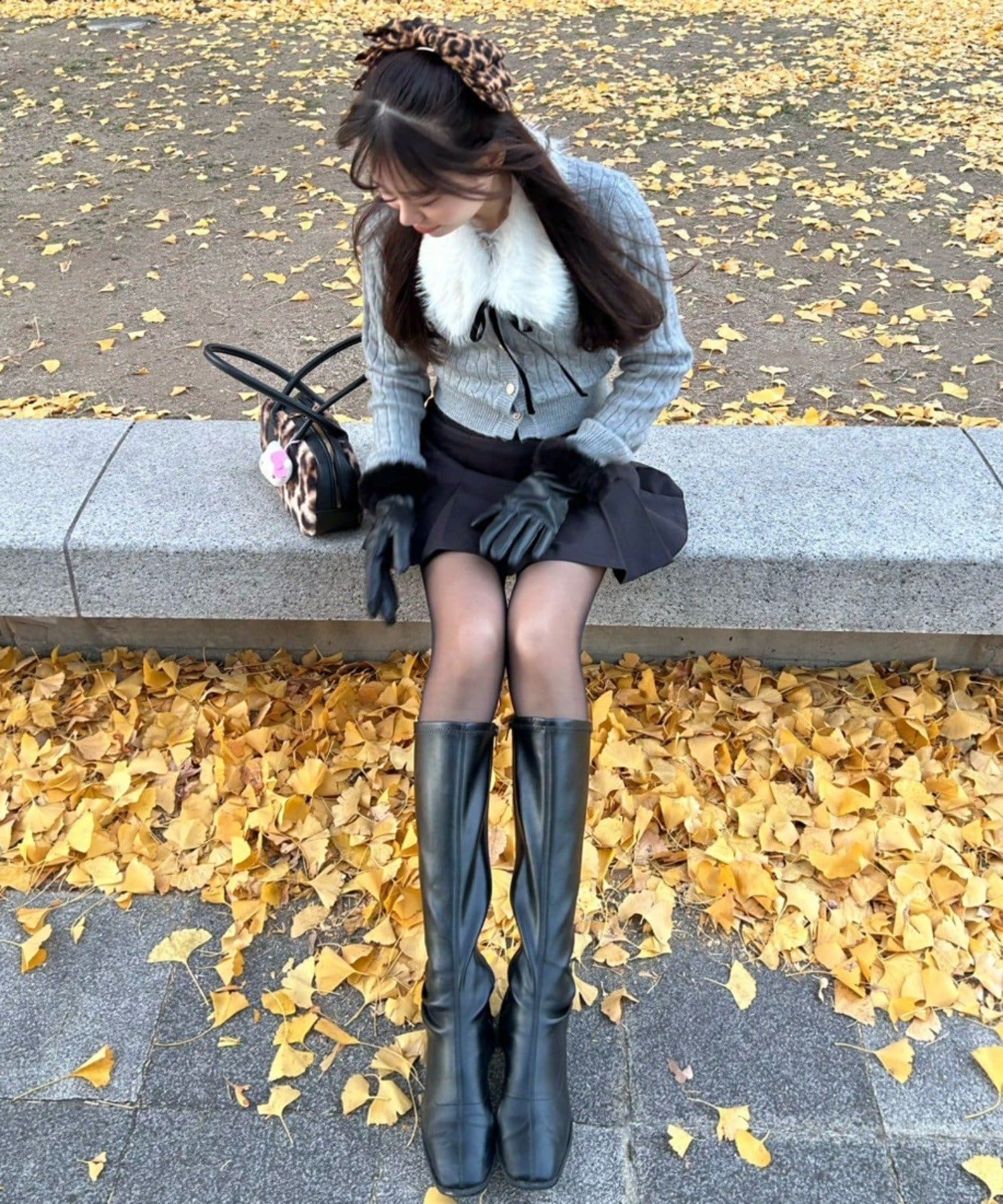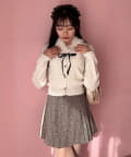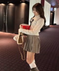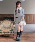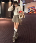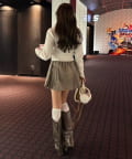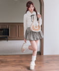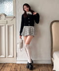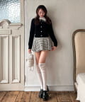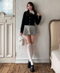 ・ミニスカートを合わせてガーリーにまとめるのがおすすめ。
