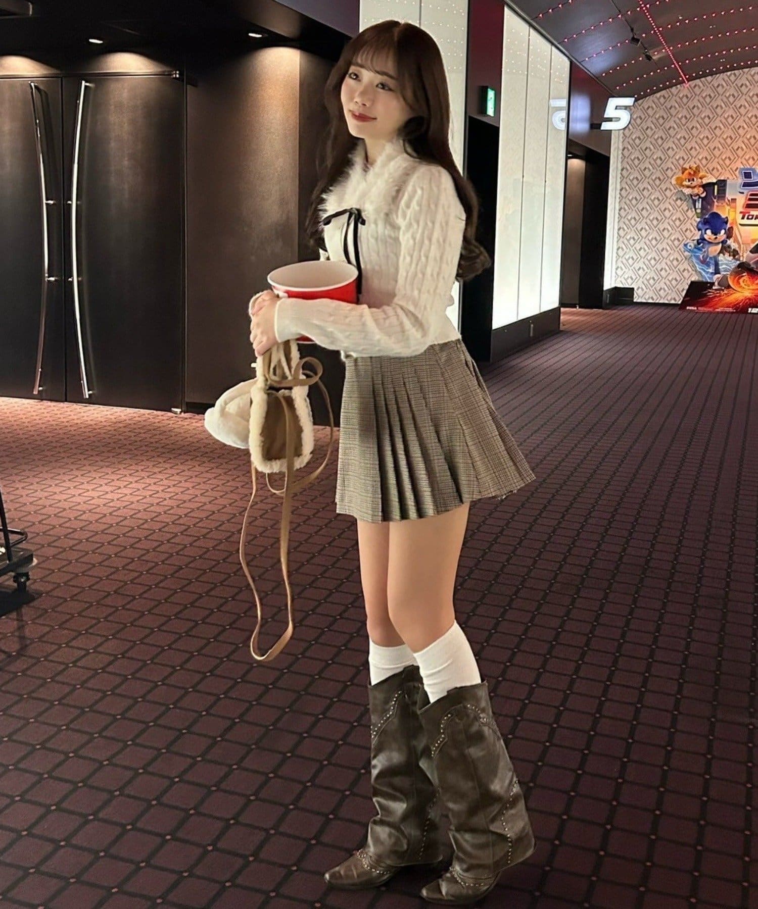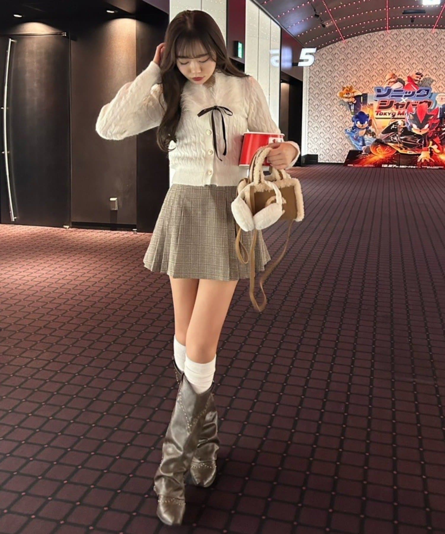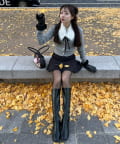 ・足元はロングブーツやハイソックスにローファーを合わせるとコーデに統一感が出て◎