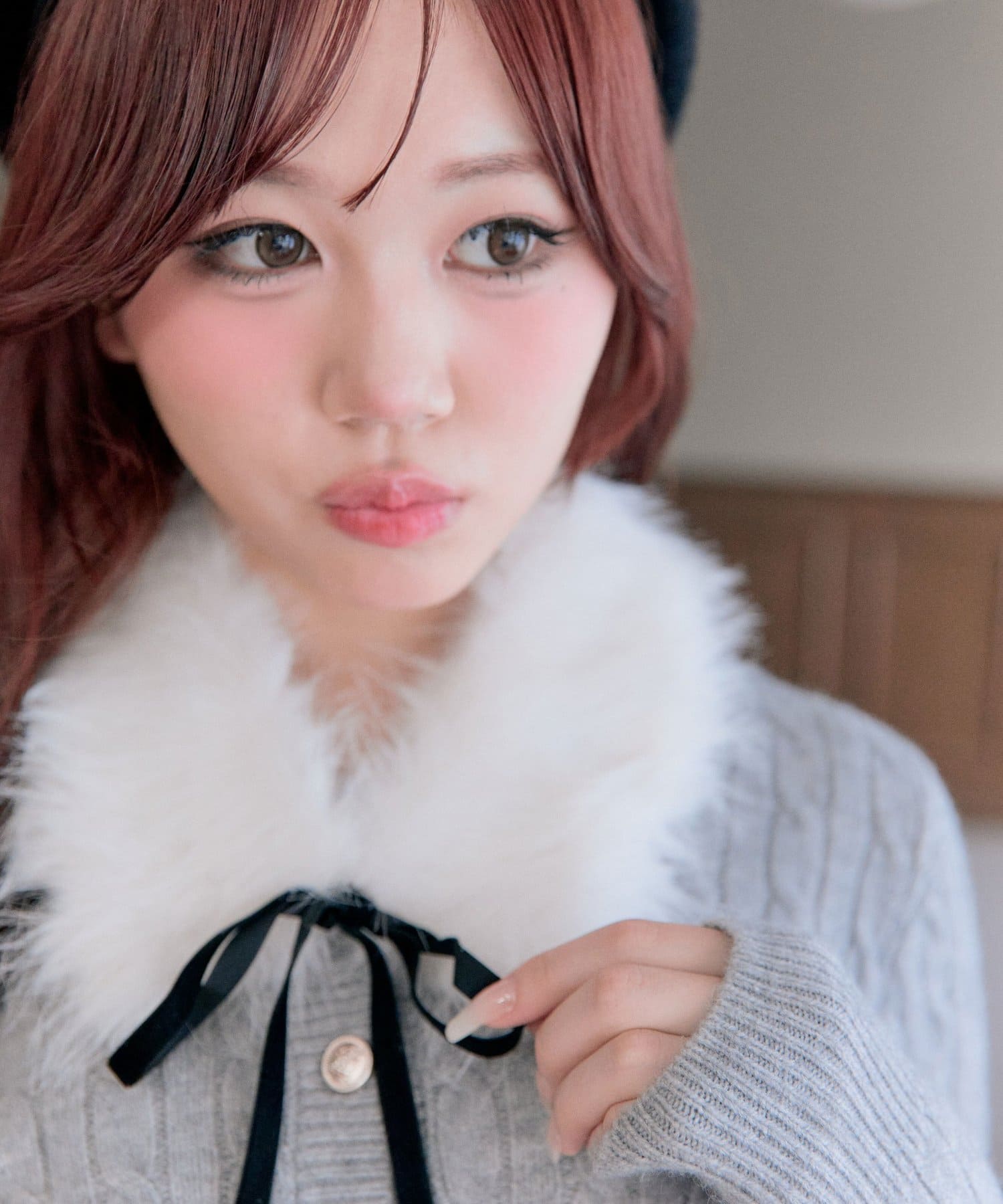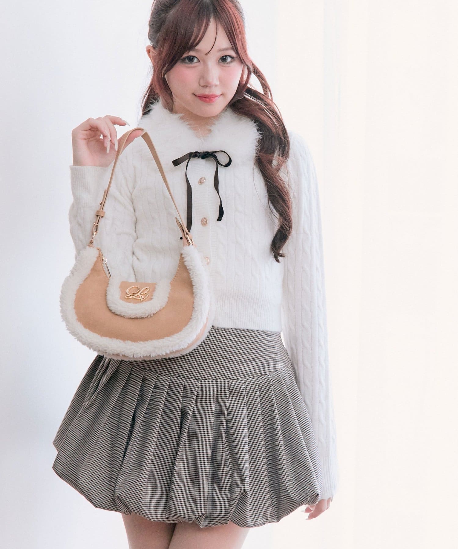 ・ファーティペットは全色ホワイトで、リボンはオフがブラウン、ピンクがオフ、トップグレーがブラックとコーディネートしやすい色にこだわりました。