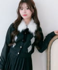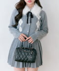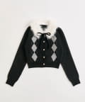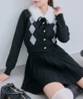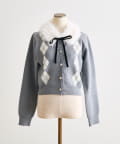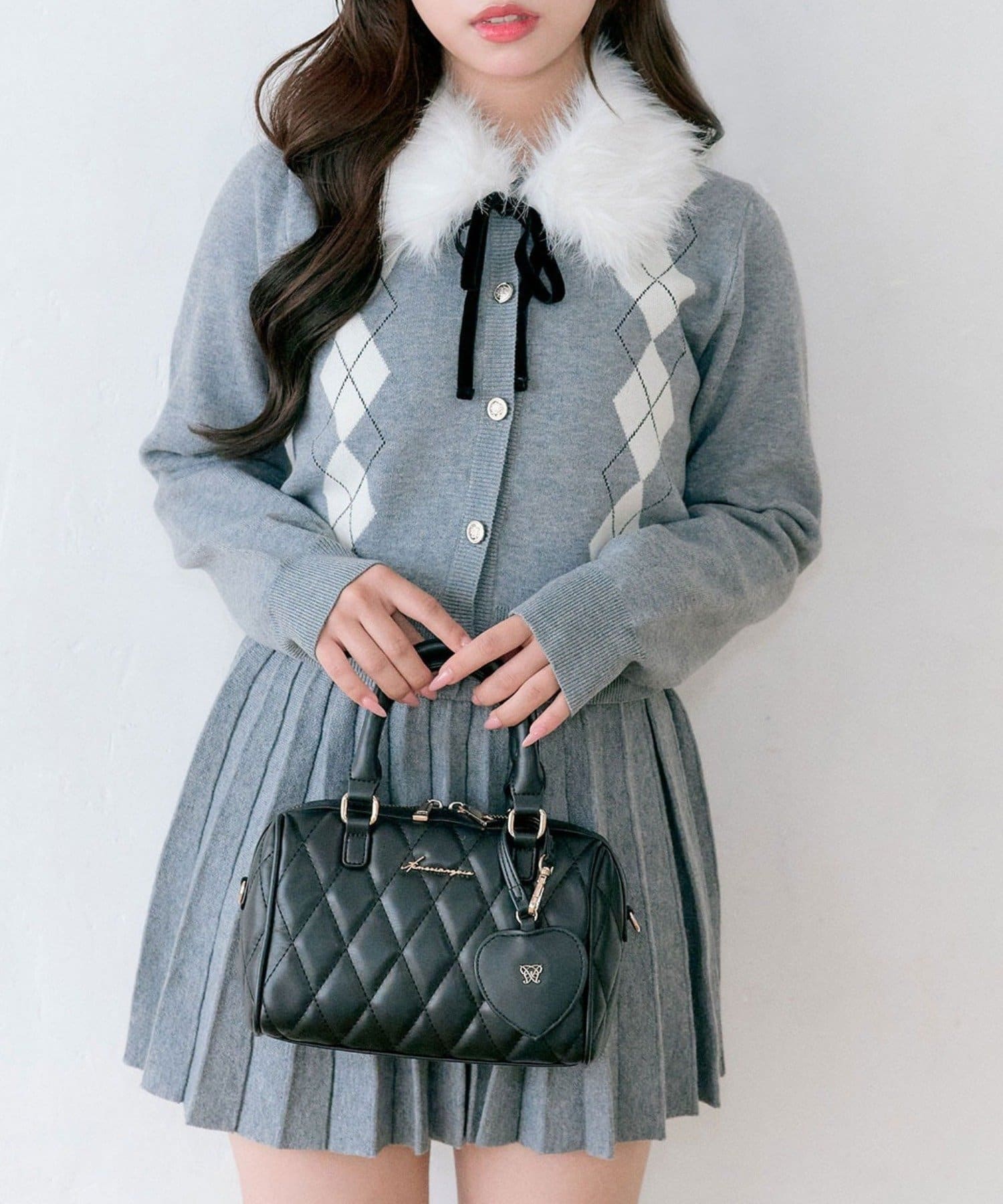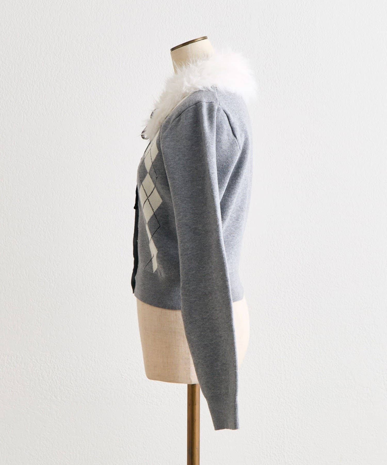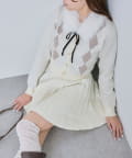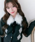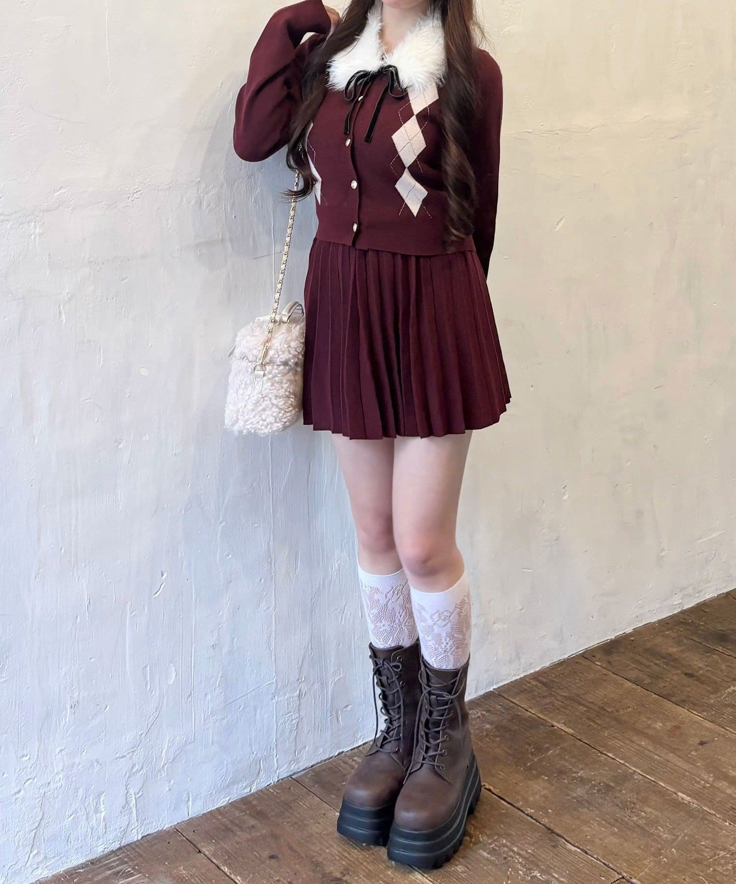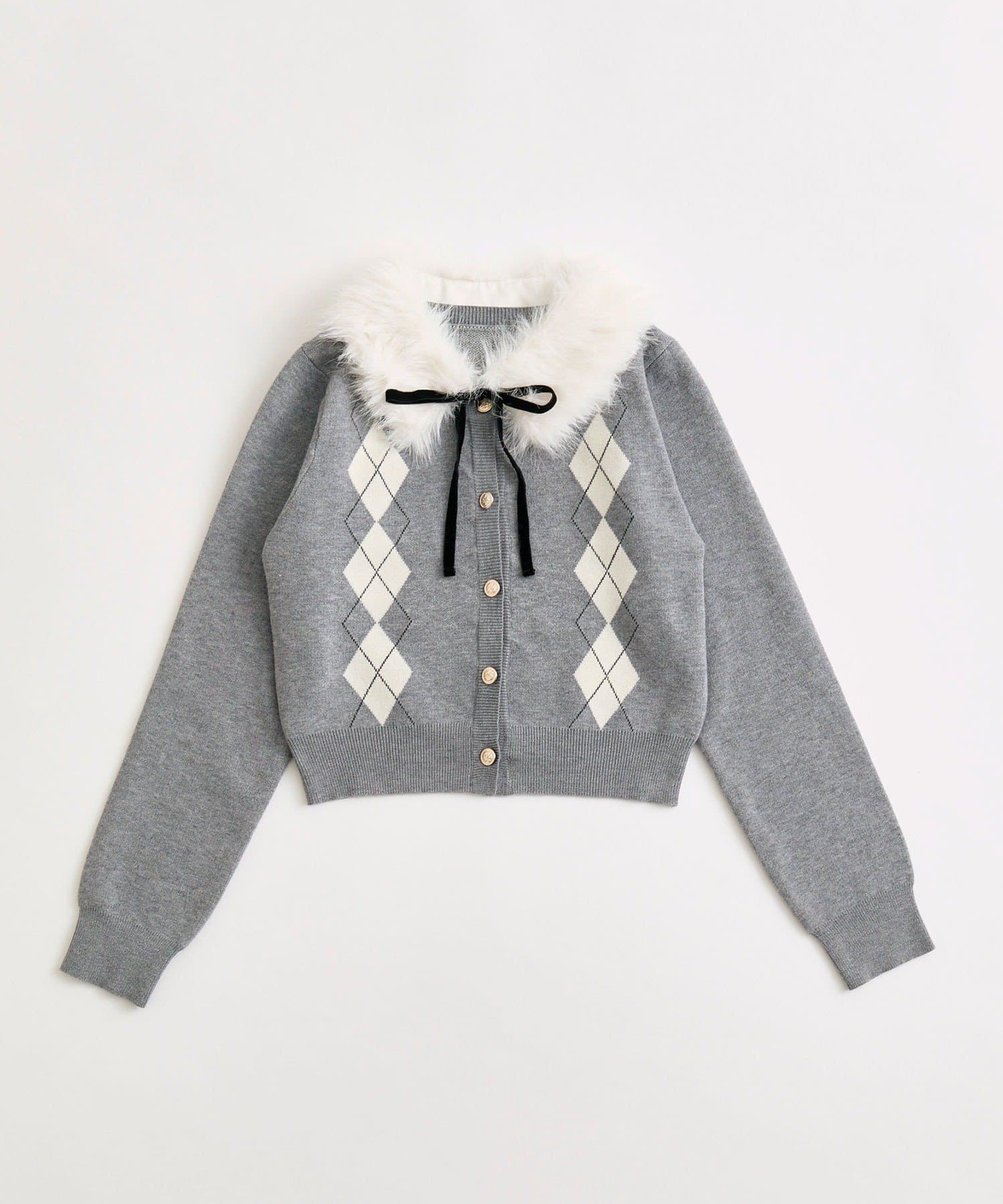 ・ベロアリボン付きのファーティペットと、キラキラの糸を使用したアーガイルチェックのニットセット。