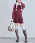・足元はロングブーツやハイソックスにローファーで、ガーリーにまとめるのがおすすめ。