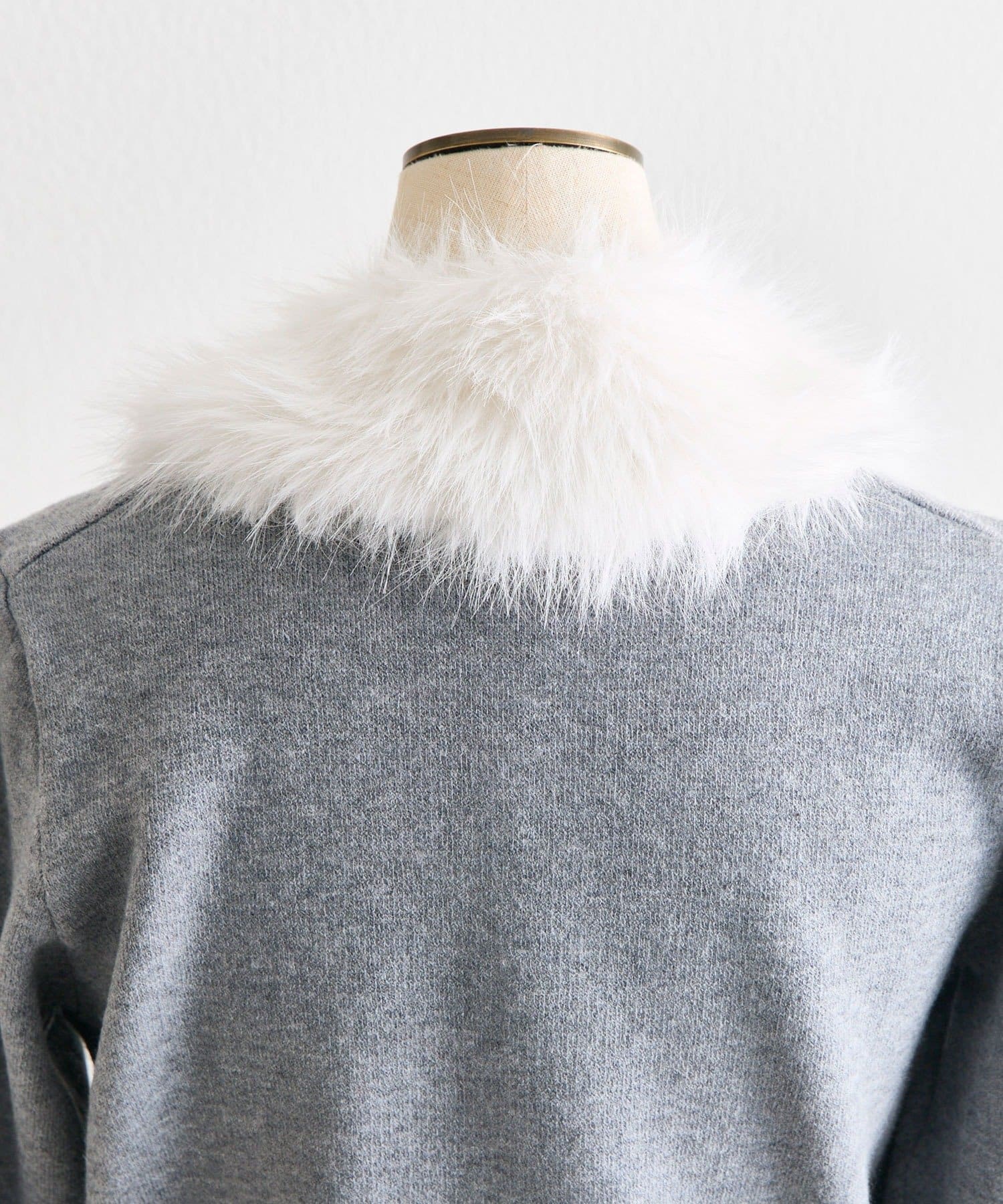 ・ファーティペットは取り外し可能なので、クルーネックで首回りすっきりとした印象でも着用していただけます。