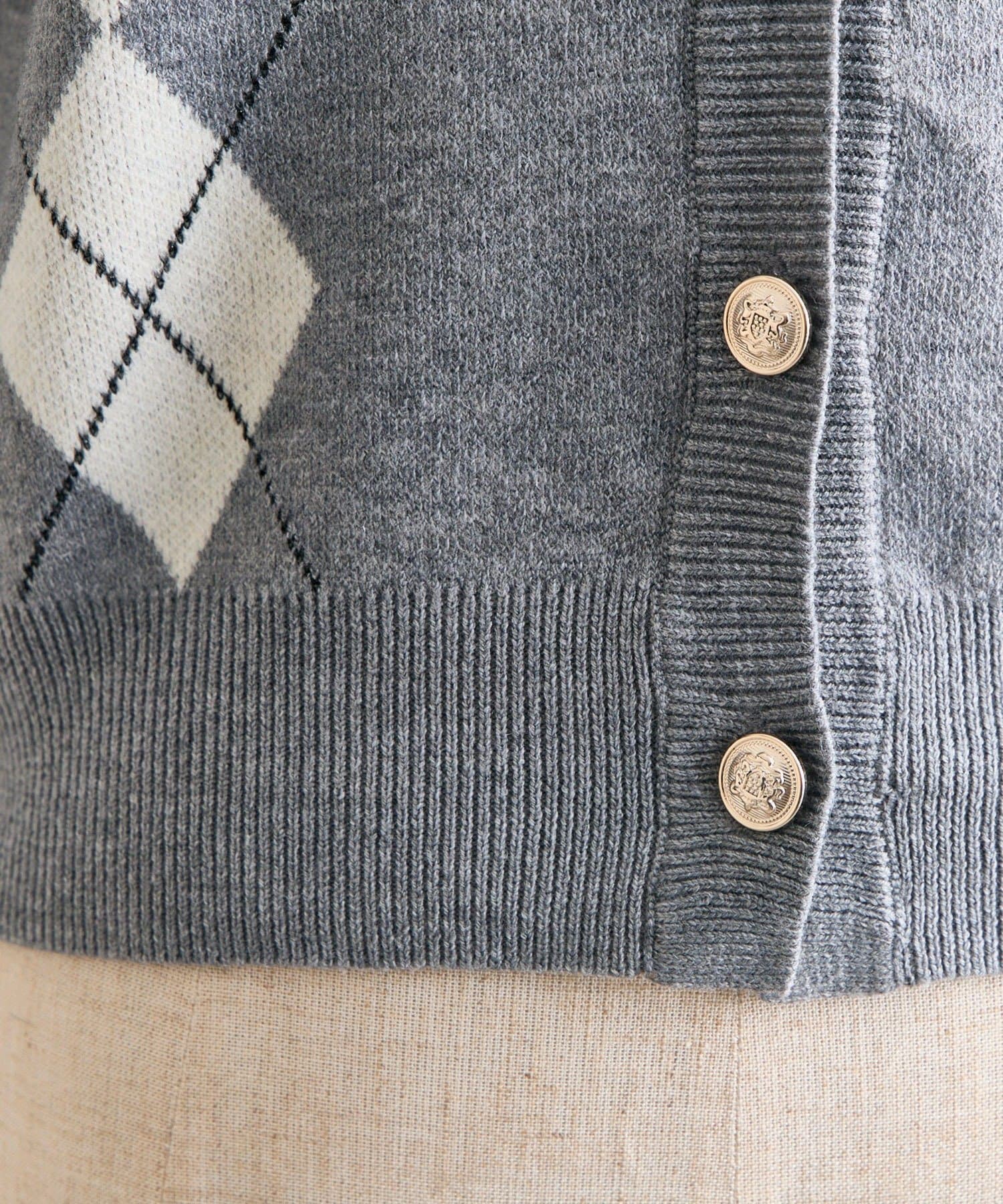 ・ニットは金ボタンときらきらの糸で高見えするデザイン。