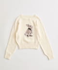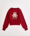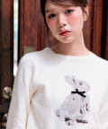 ・カラーによって柄が異なり、オフはウサギ×ベロアリボン、ピンクはネコ×ビジュー、レッドはクマ×オーガンジーリボン、トップグレーはイヌ×ベロアリボンのデザインです。