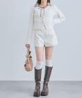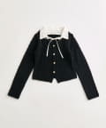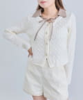 ・襟元の華奢なリボンが、顔まわりをほんのり甘く仕上げてくれます。