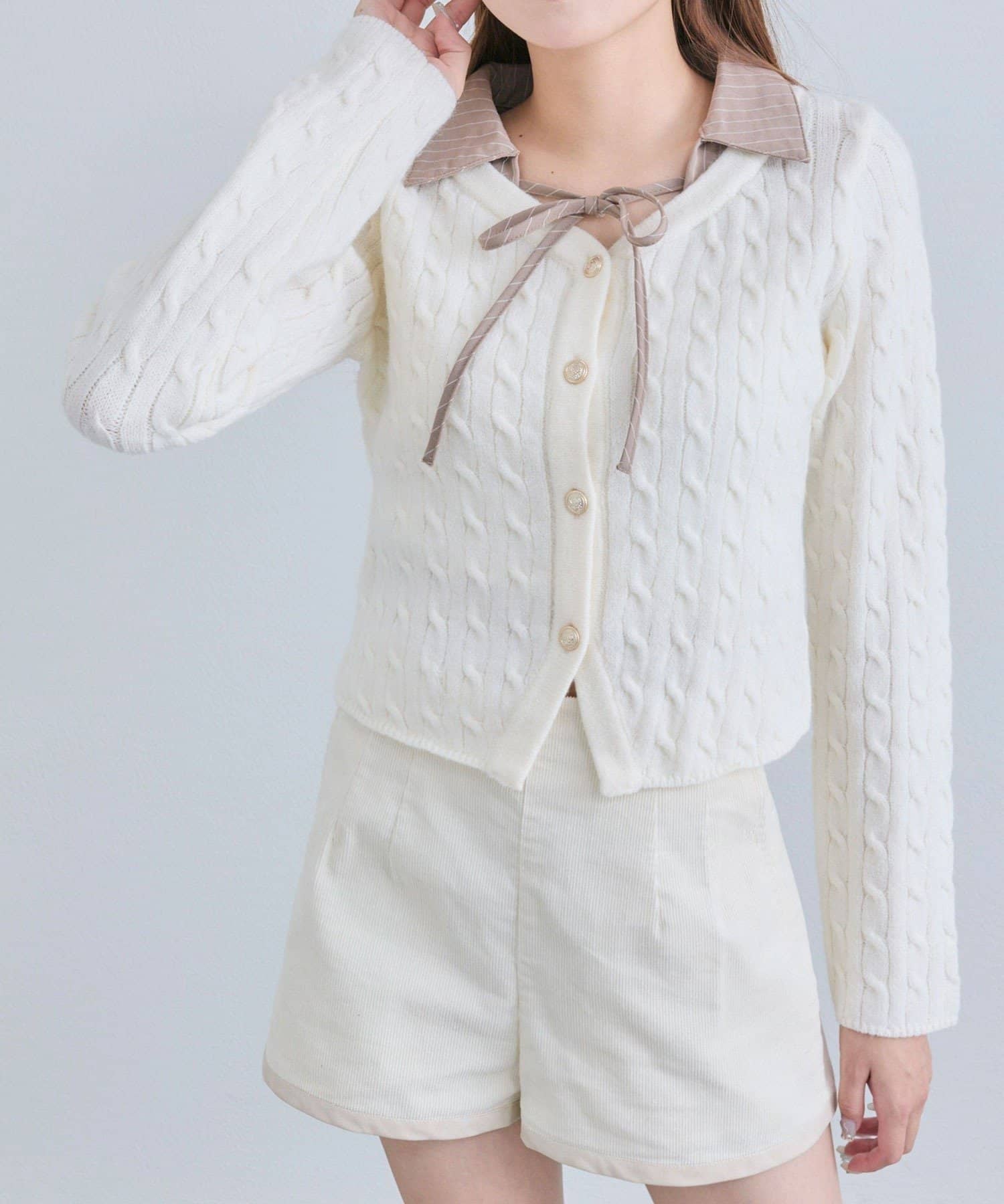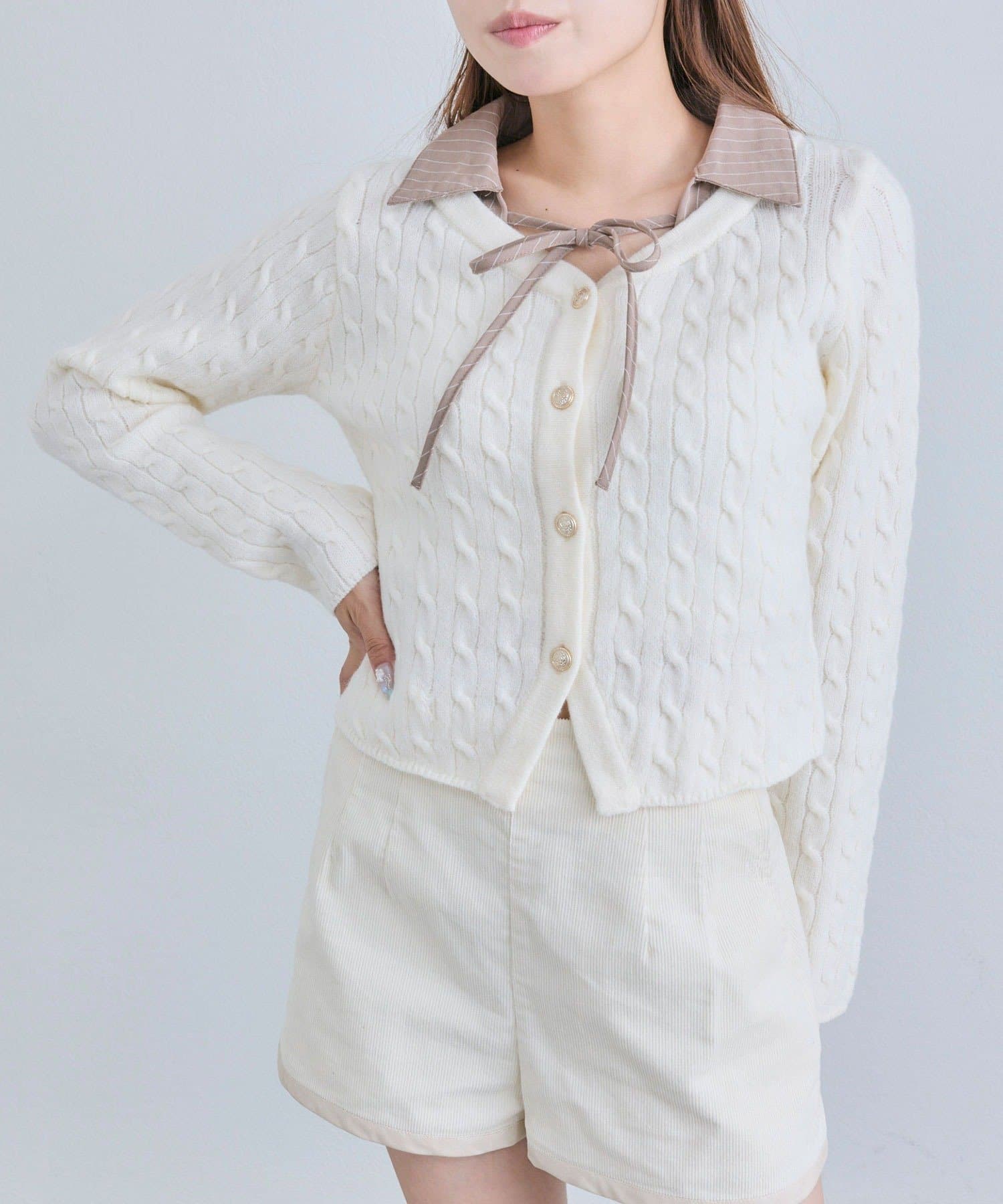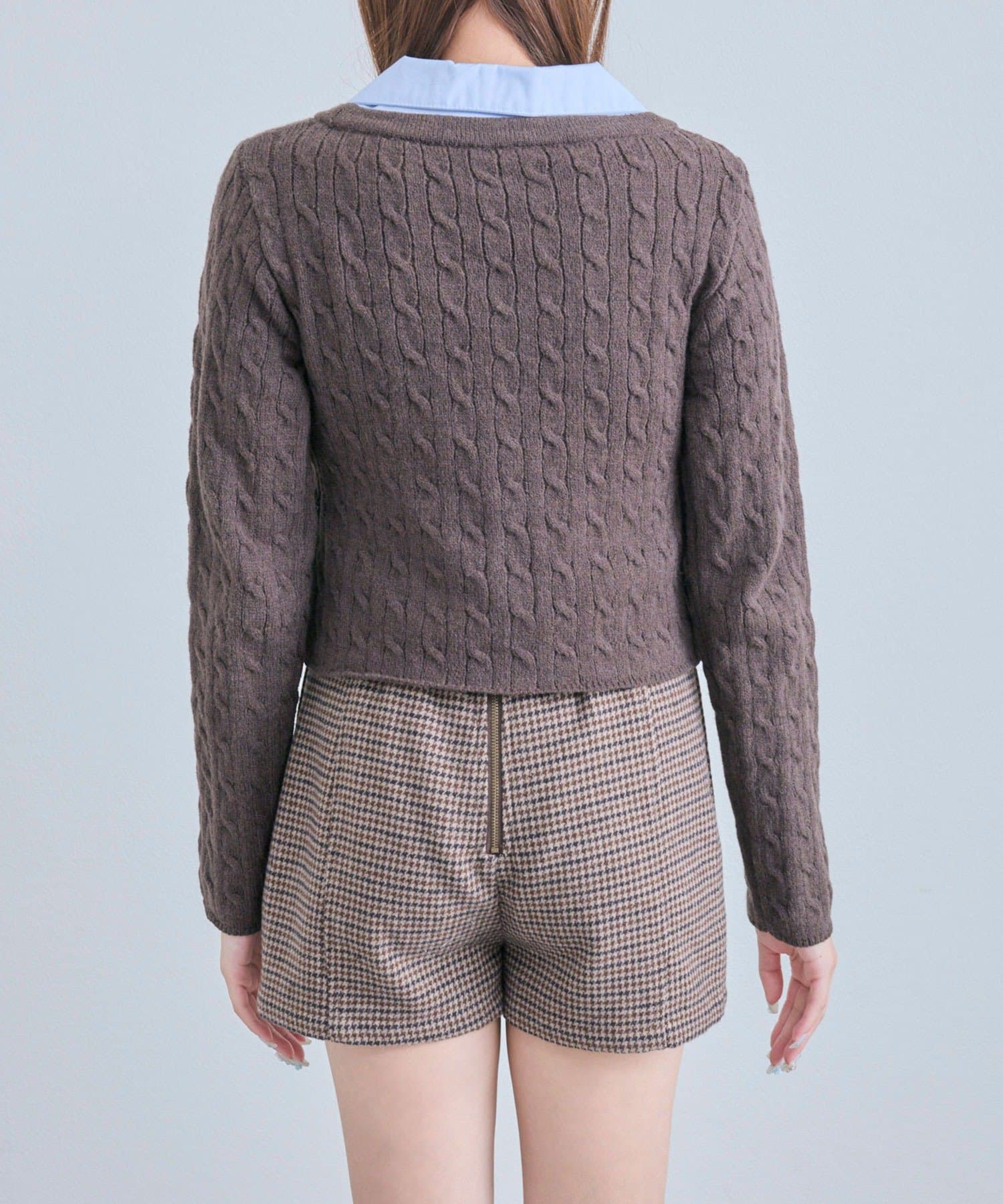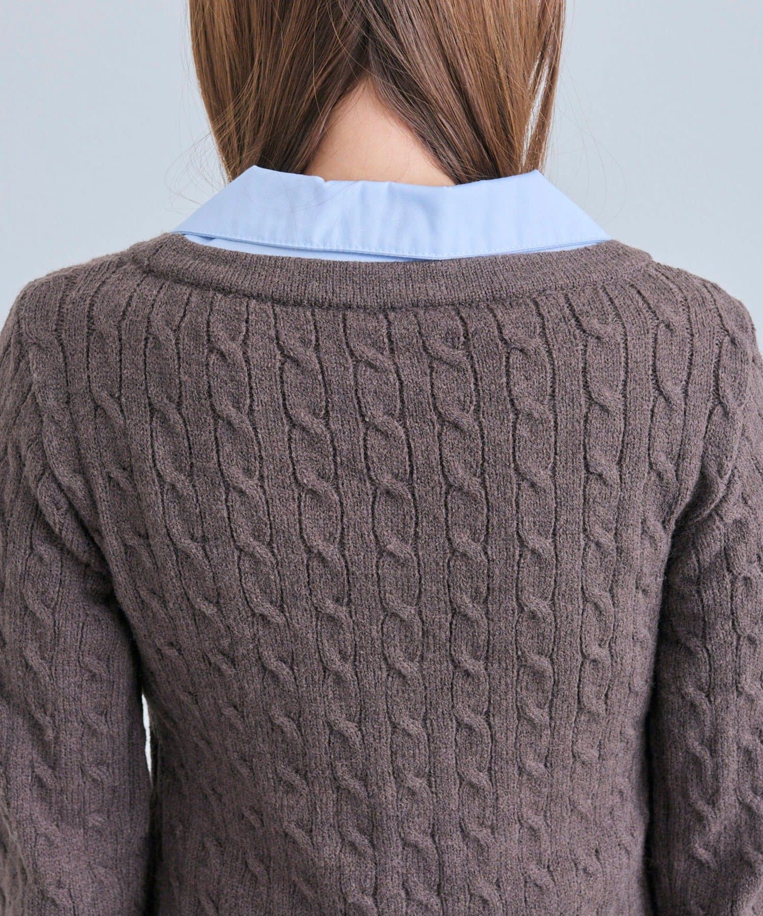 ・金ボタン付きのケーブルニットに、シャツをレイヤードしたようなきちんと感も可愛さも叶うデザイン。