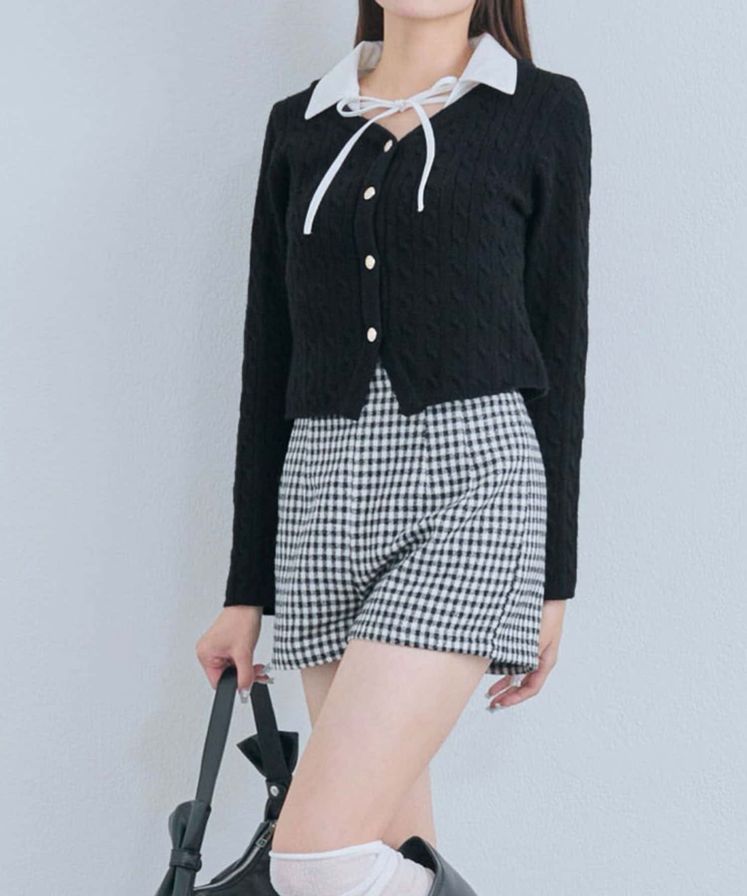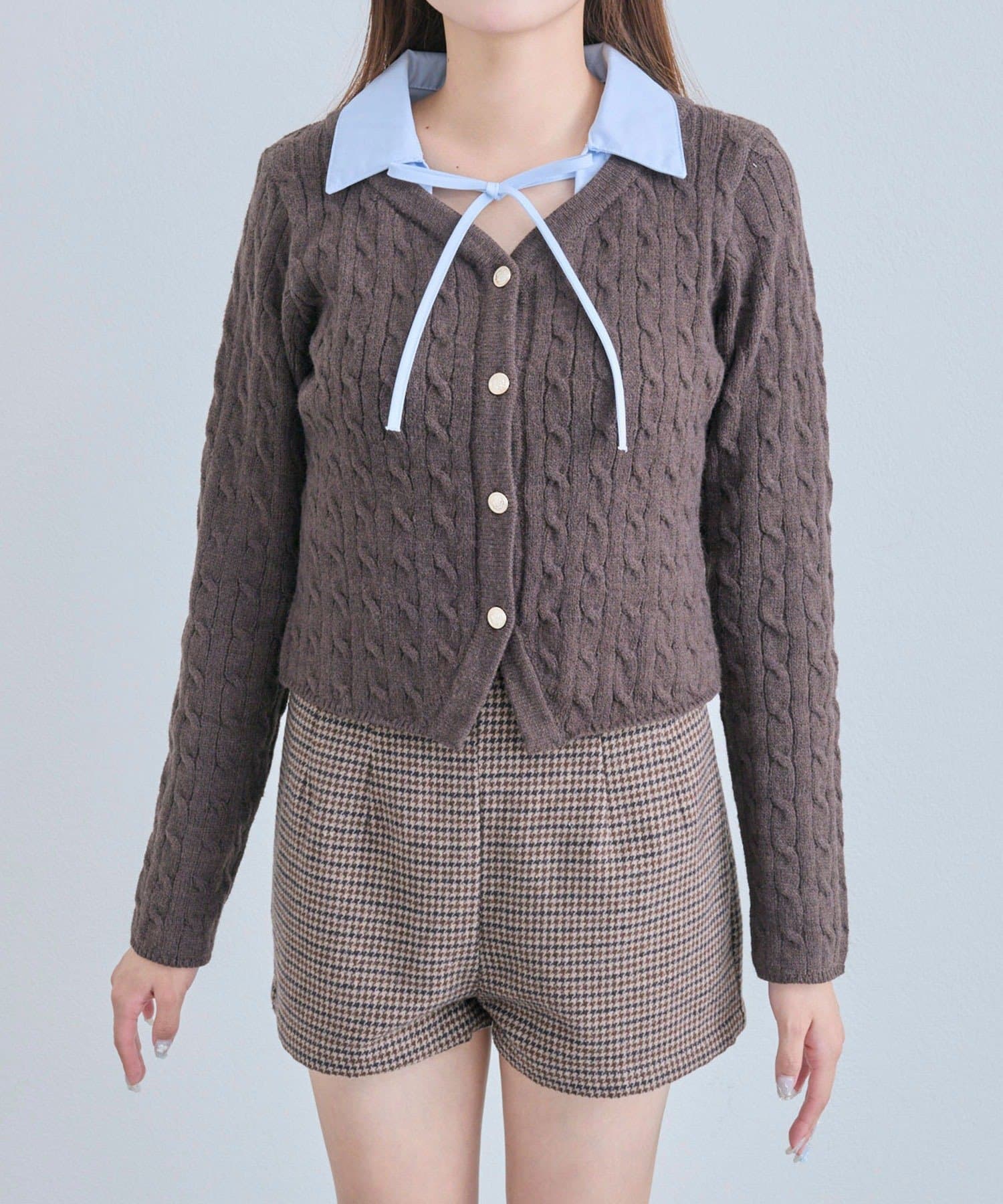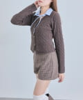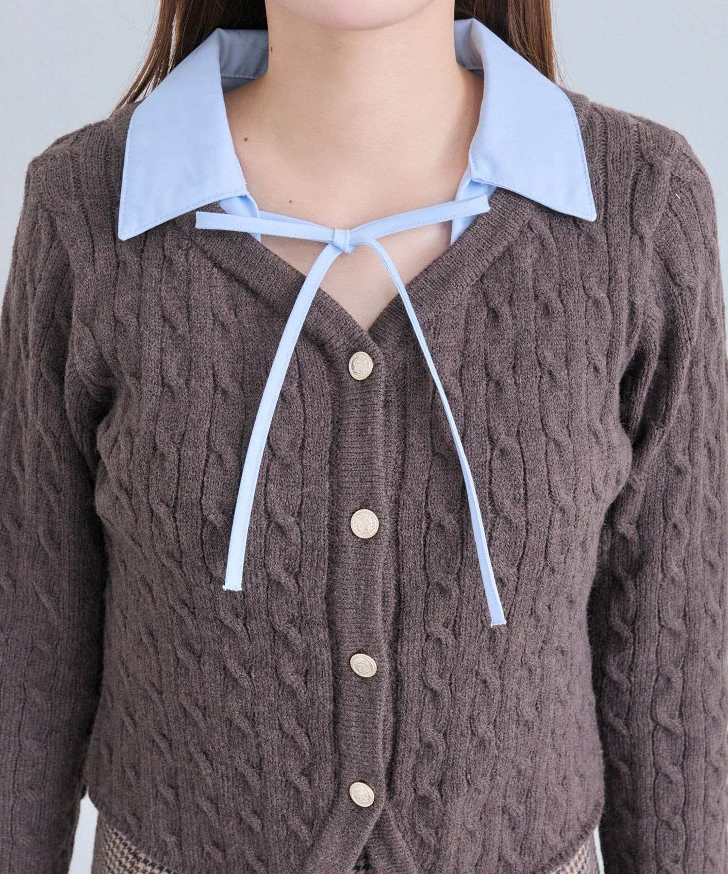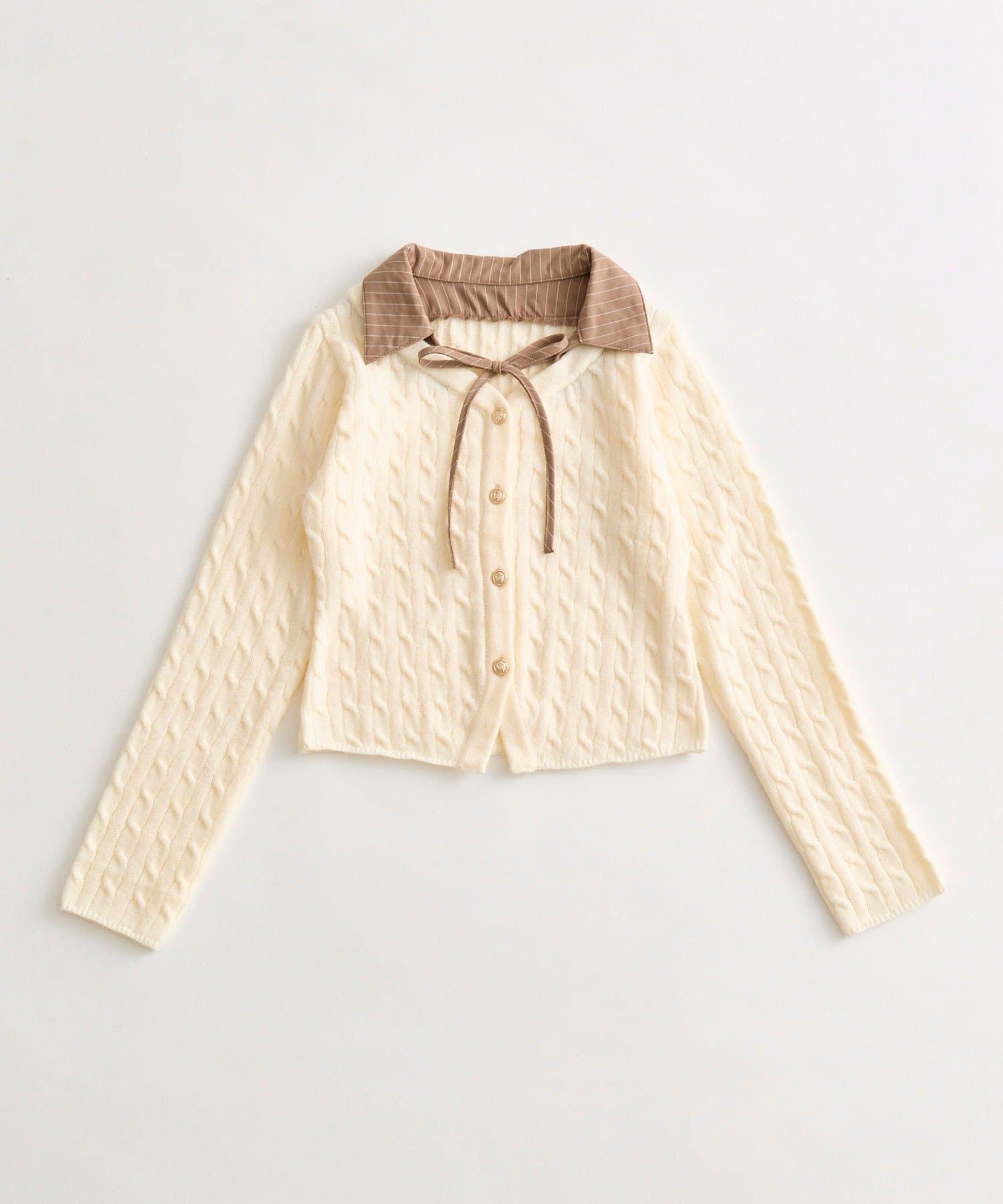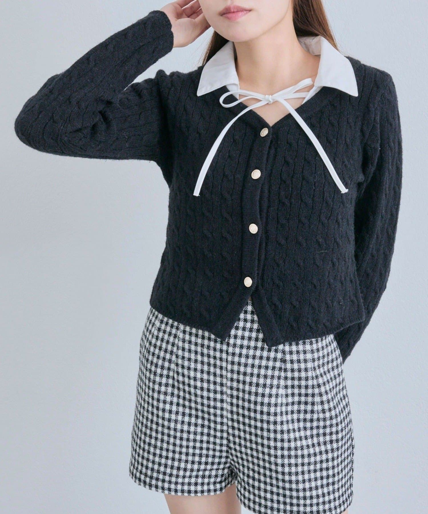 ・金ボタン付きのケーブルニットに、シャツをレイヤードしたようなきちんと感も可愛さも叶うデザイン。
