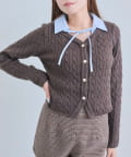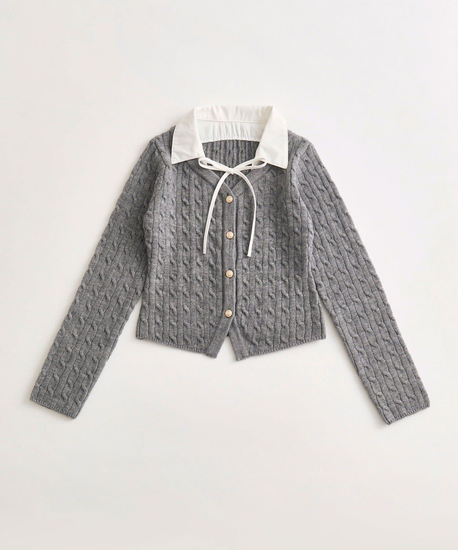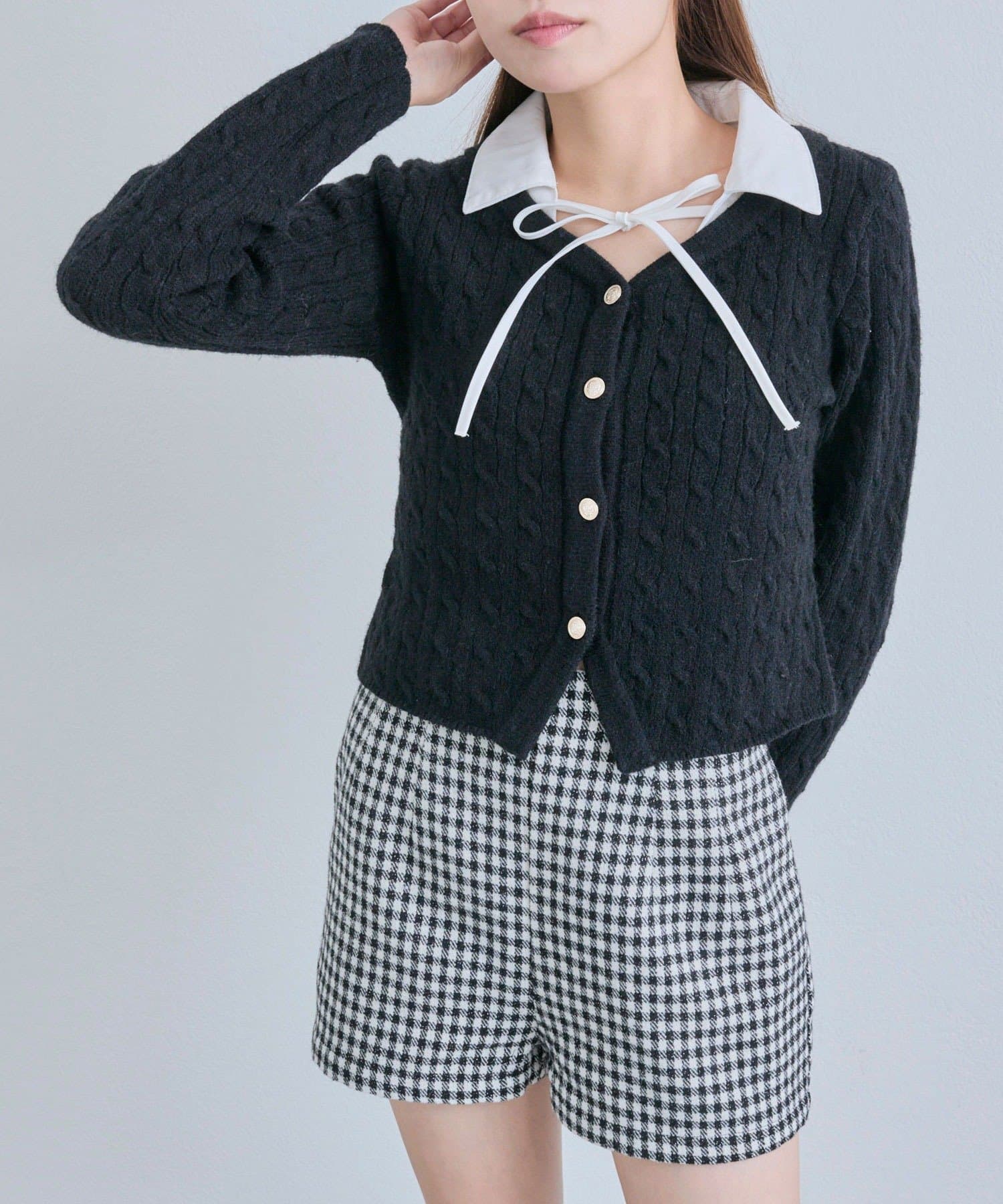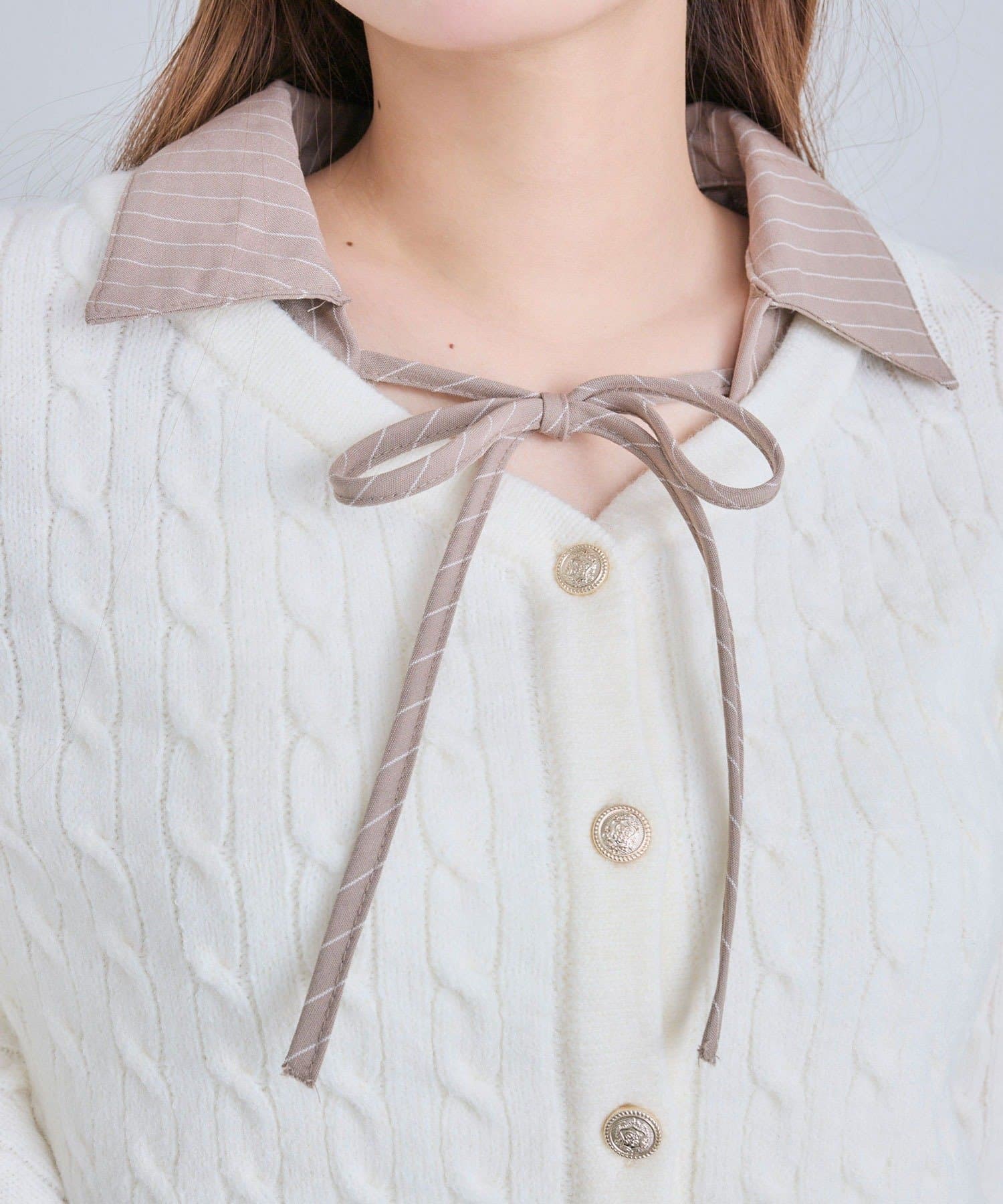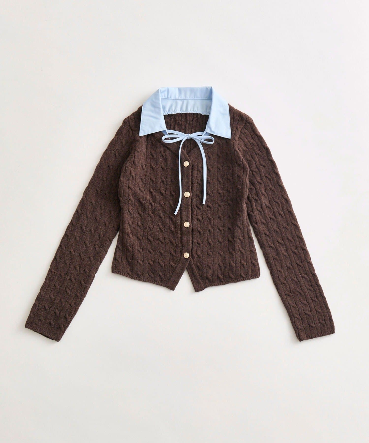 ・金ボタン付きのケーブルニットに、シャツをレイヤードしたようなきちんと感も可愛さも叶うデザイン。