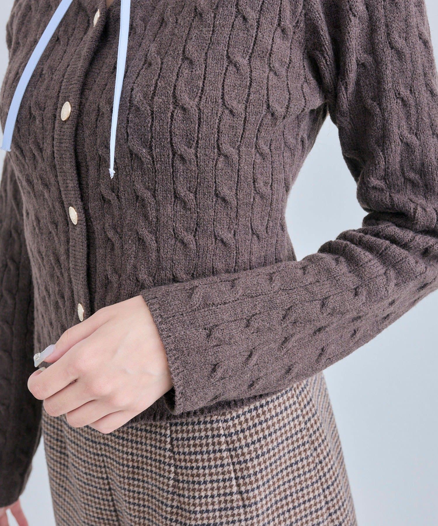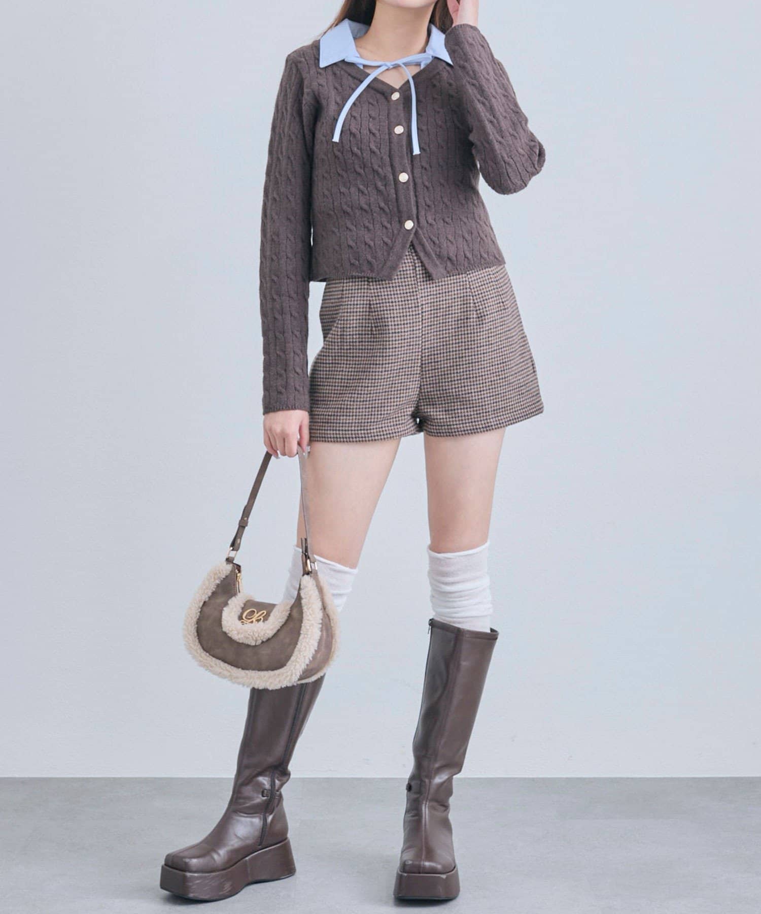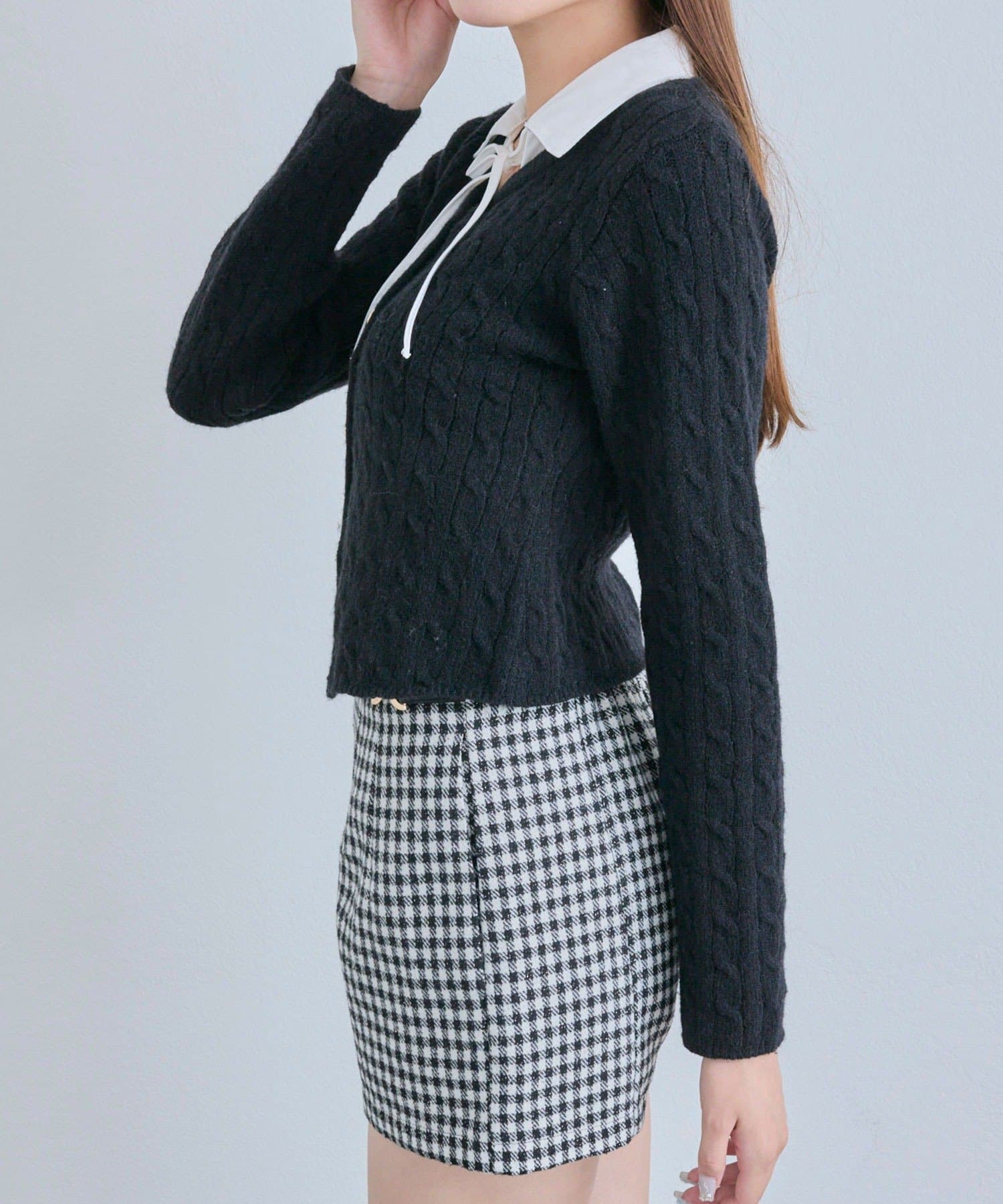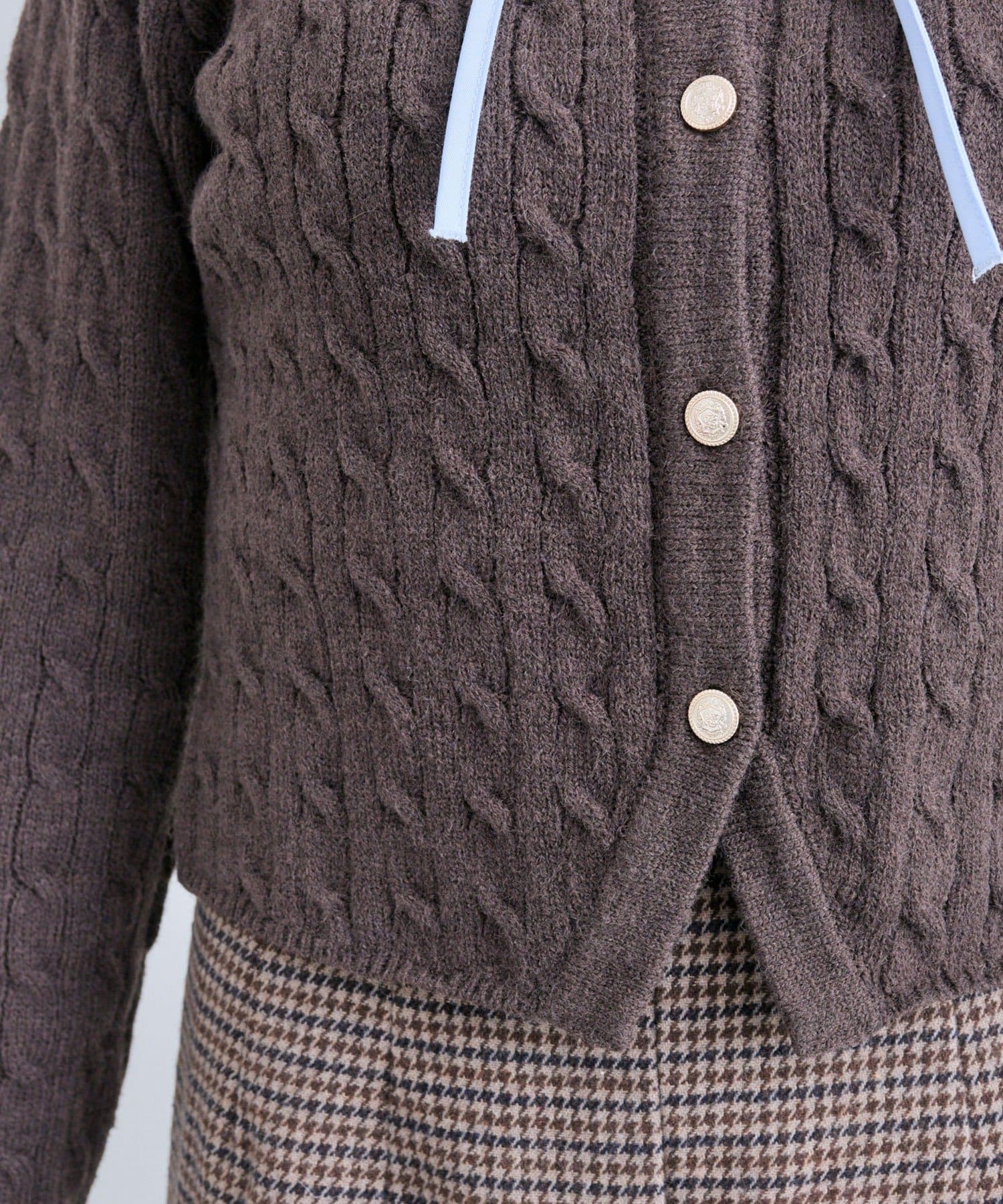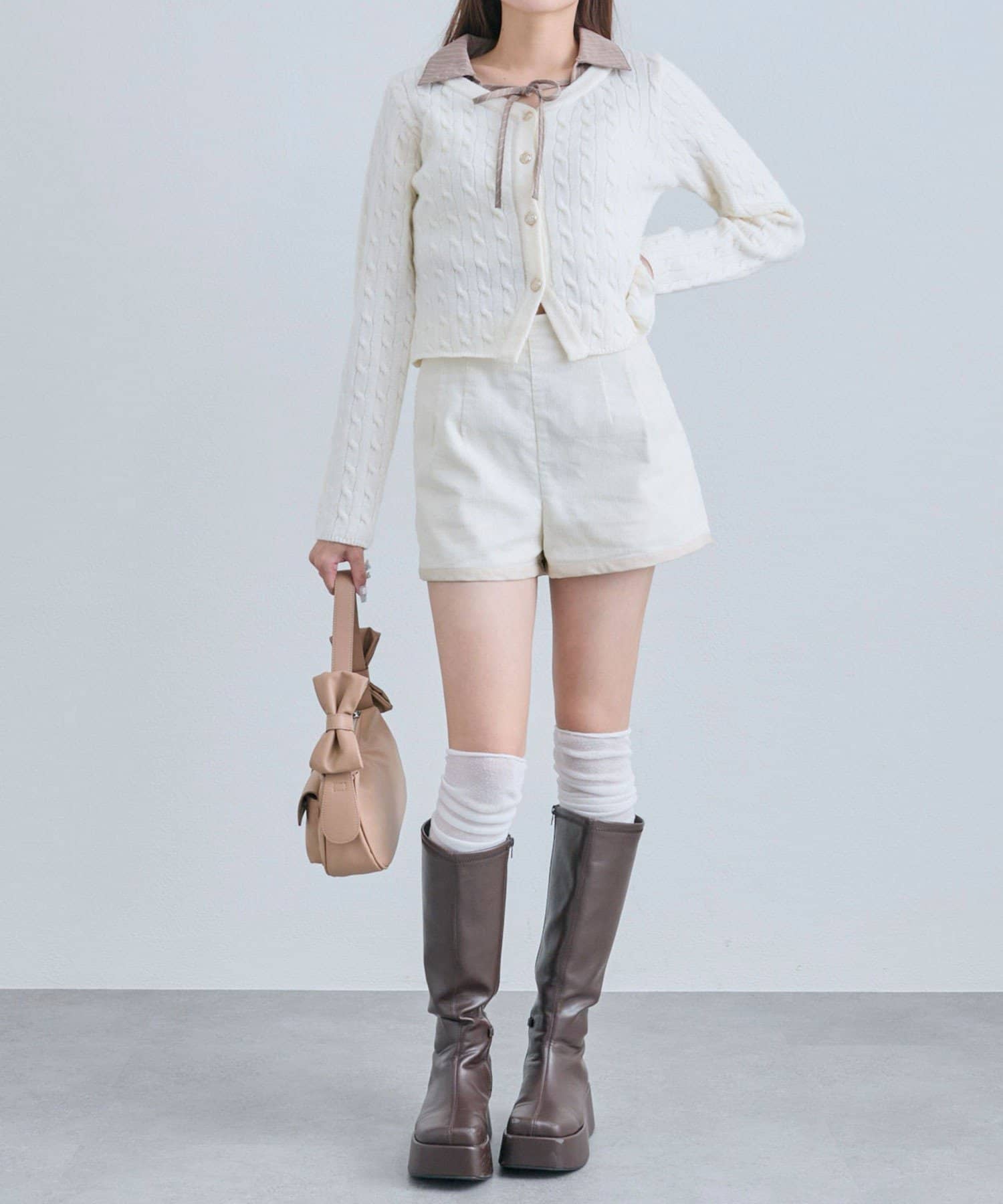 ・金ボタン付きのケーブルニットに、シャツをレイヤードしたようなきちんと感も可愛さも叶うデザイン。