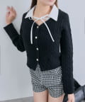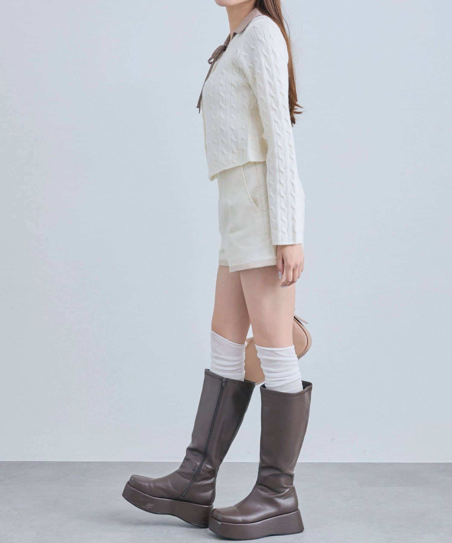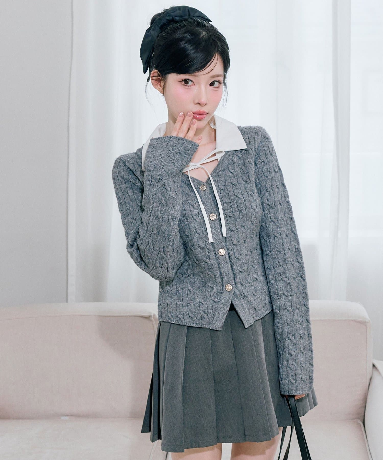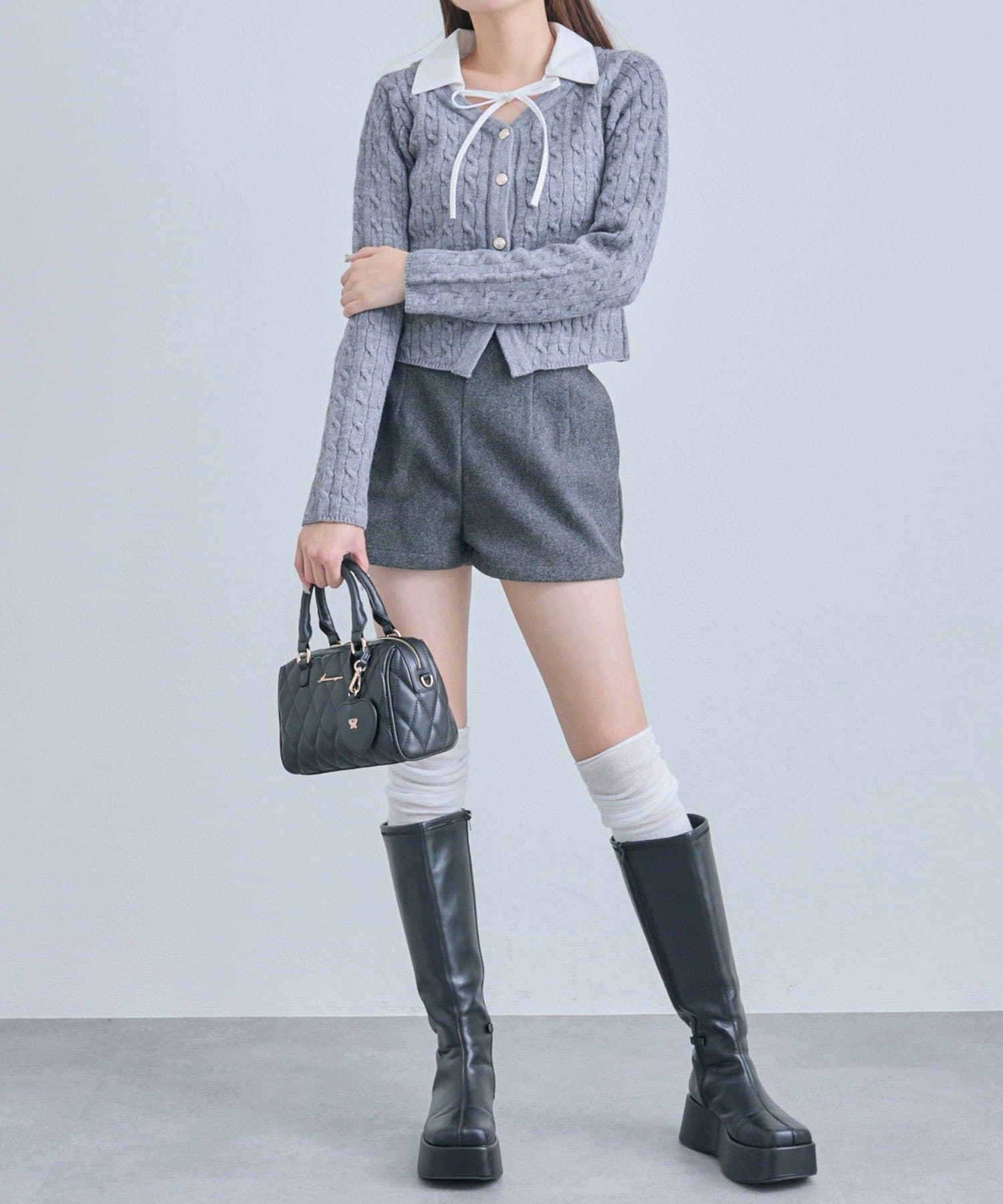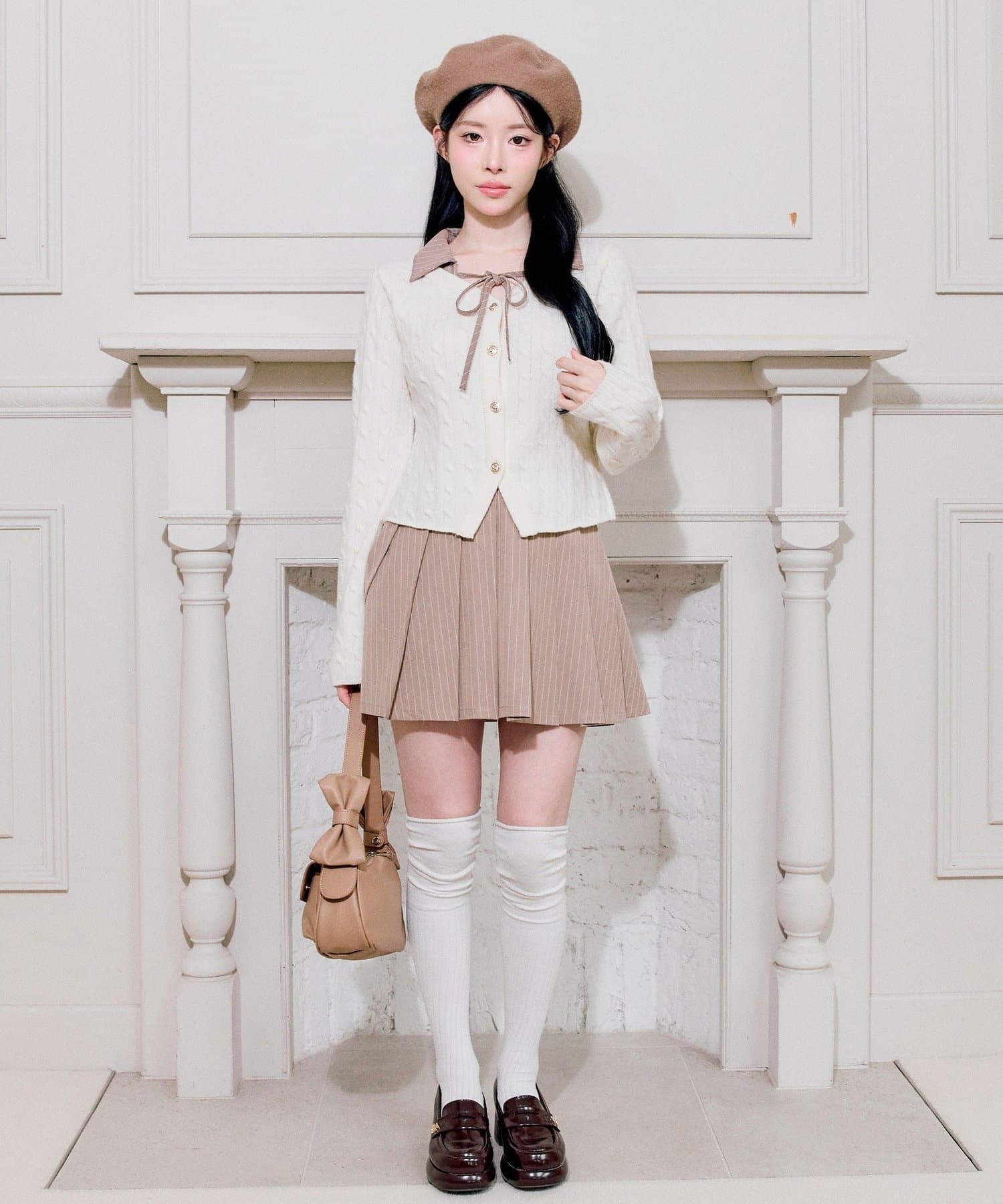 ・金ボタン付きのケーブルニットに、シャツをレイヤードしたようなきちんと感も可愛さも叶うデザイン。