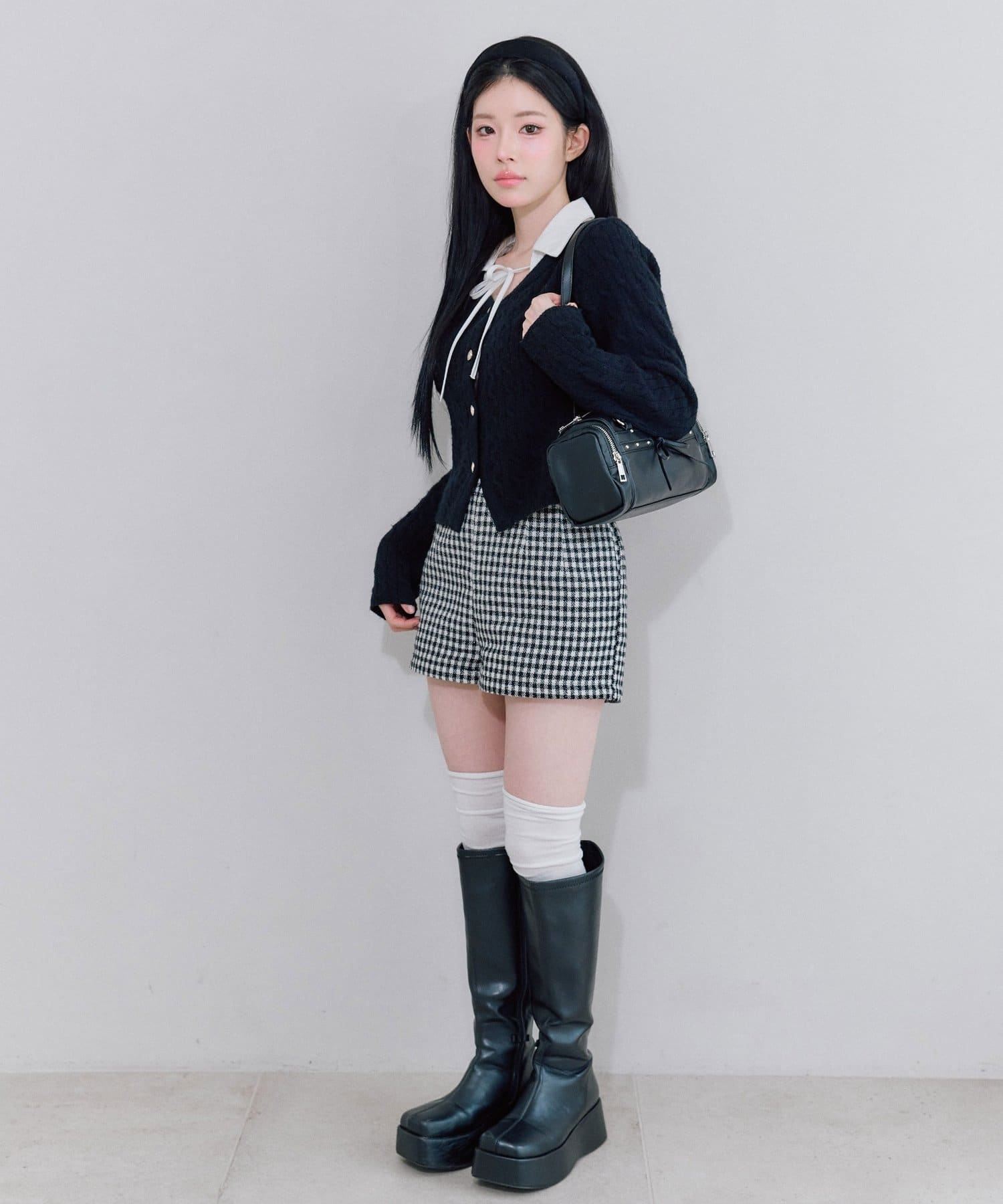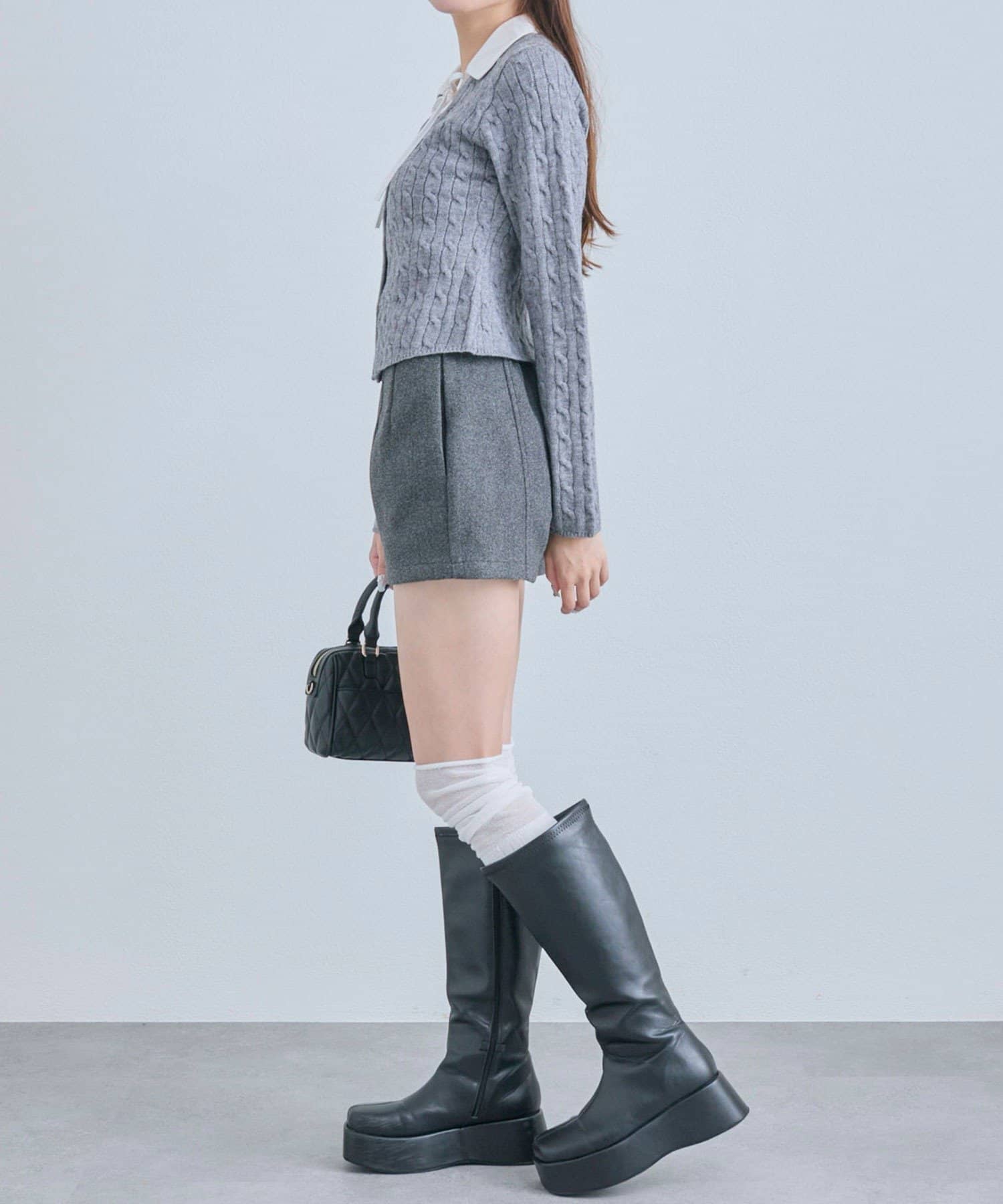 ・ミニスカート合わせでガーリーにまとめるのがおすすめ。