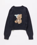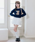 ・カラーによって柄が異なり、オフはうさぎの被り物をしたクマ、ピンク/グレーはビジュー付きのネコ、ネイビーはポンポン付き帽子のクマのデザインです。