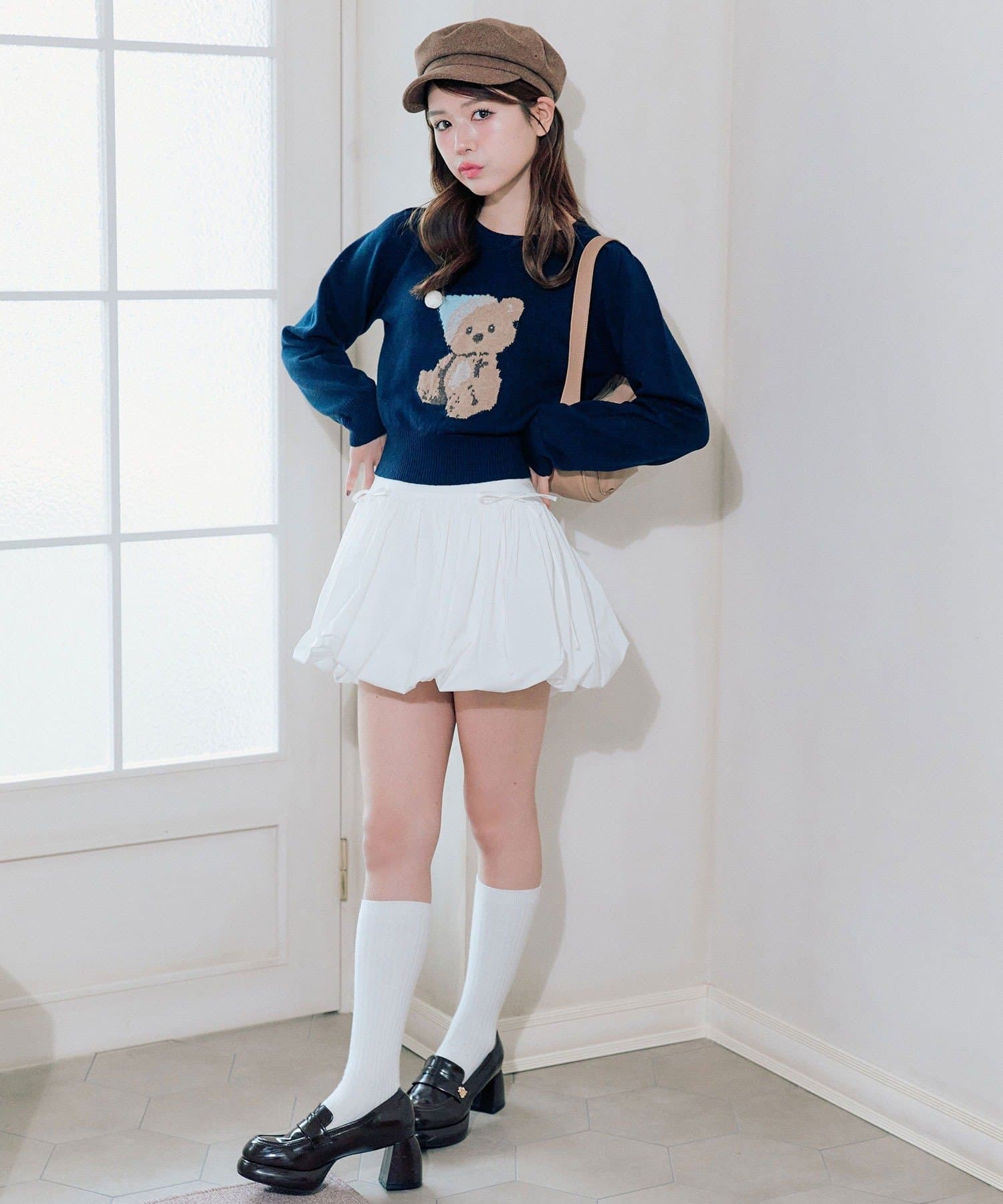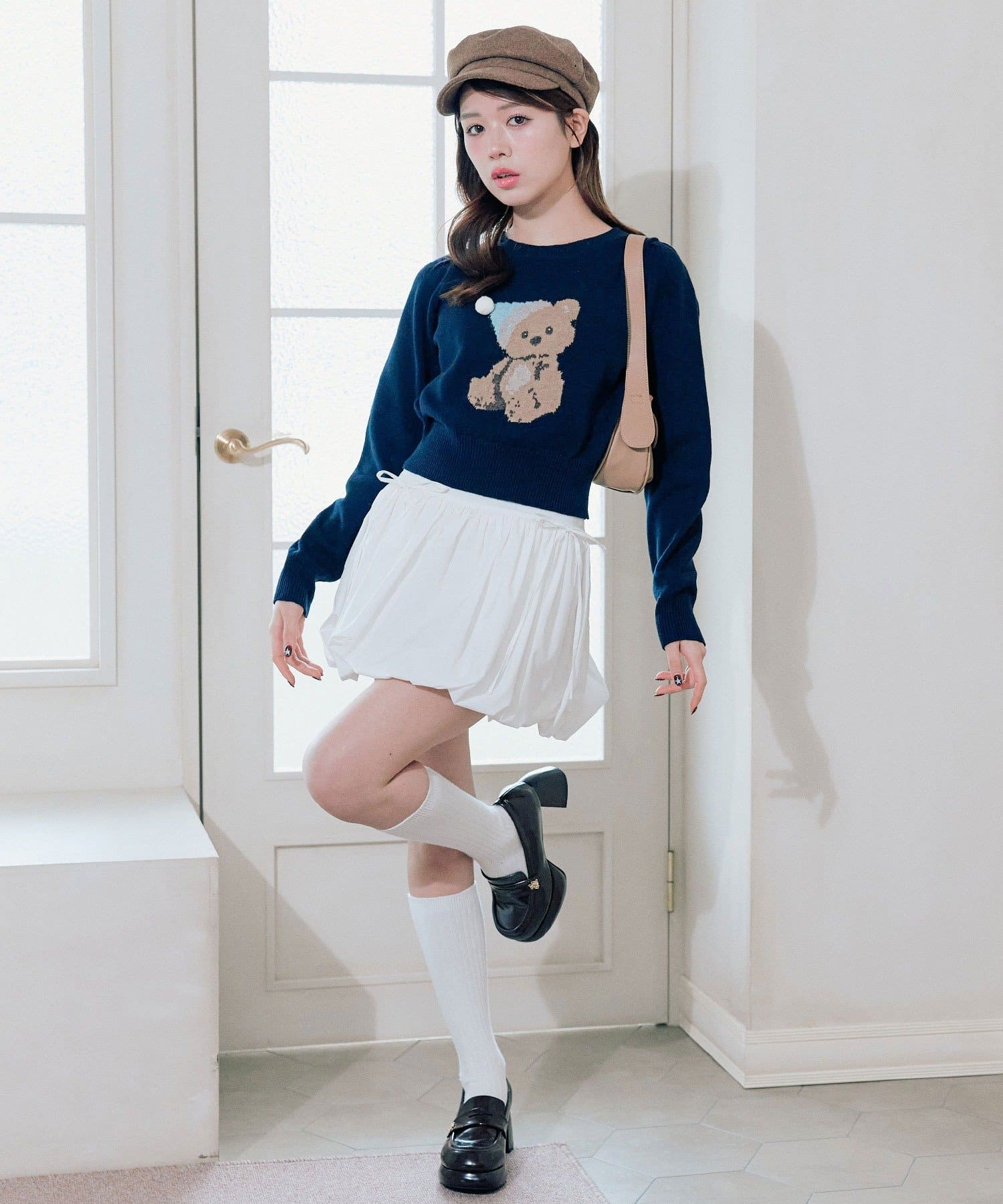 ・ミニスカートを合わせて韓国ガーリーなコーデがおすすめ。