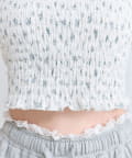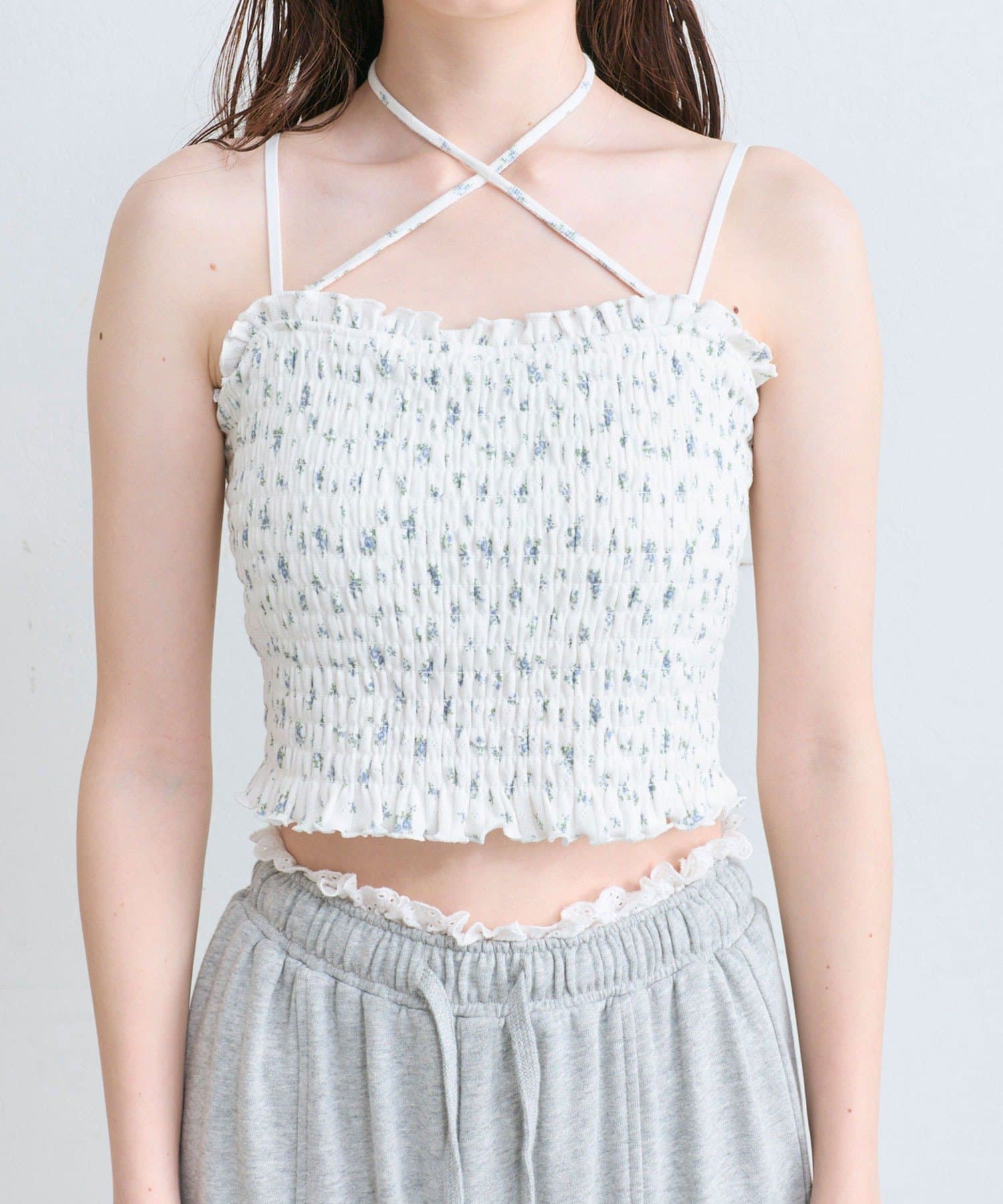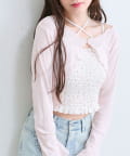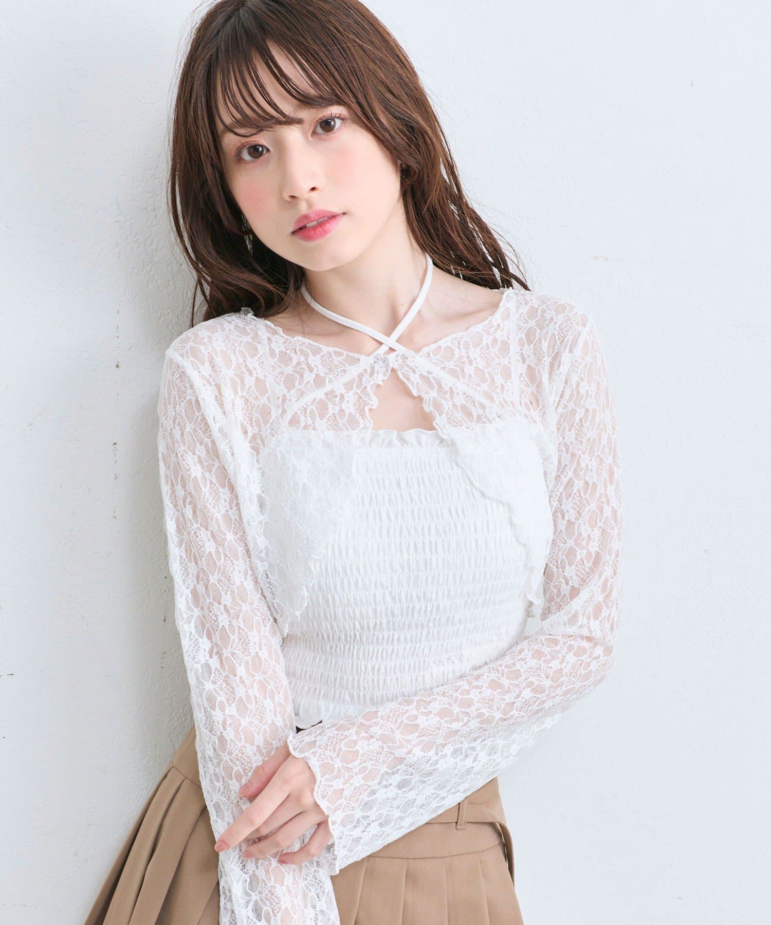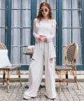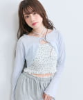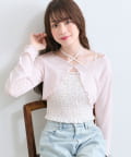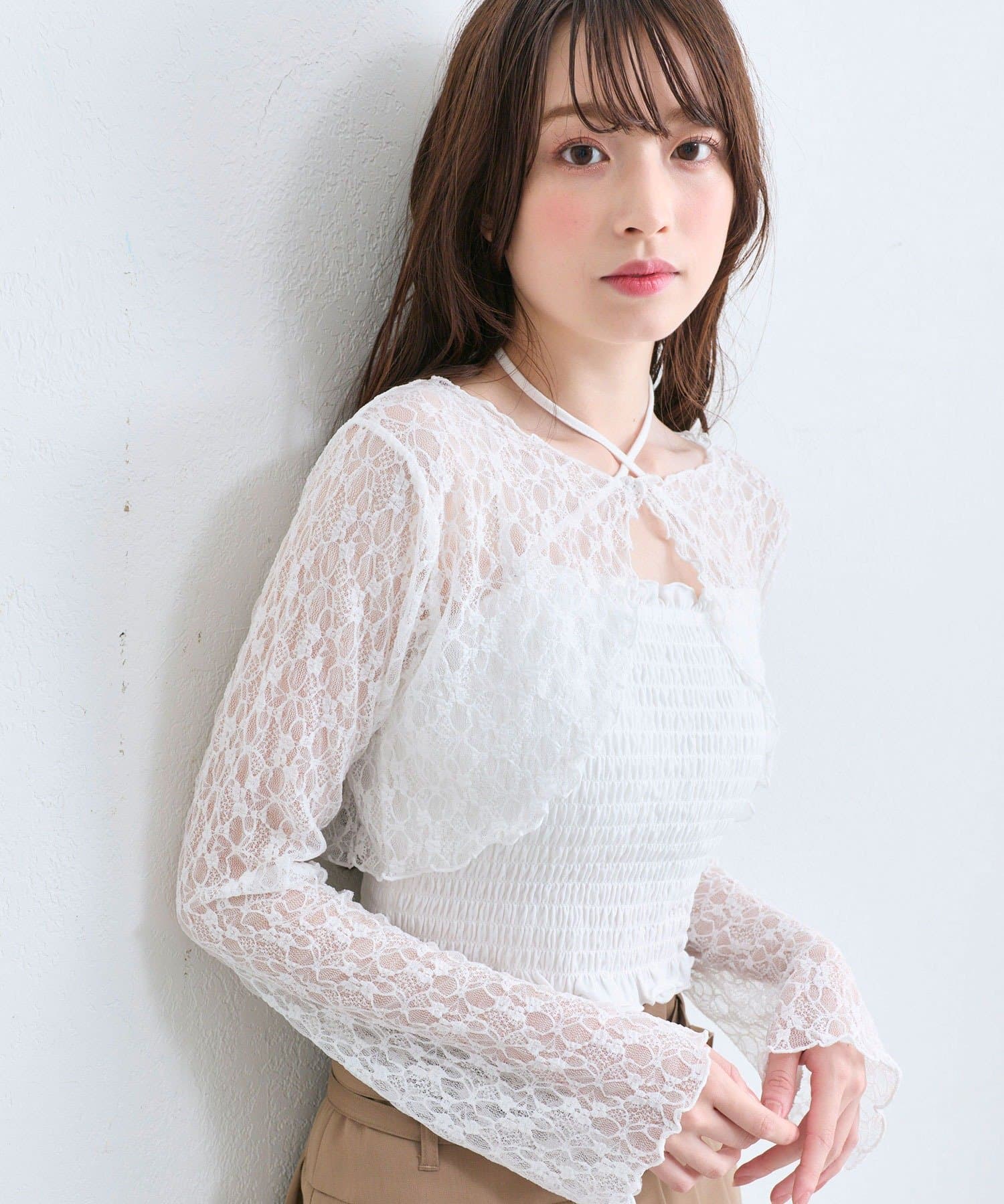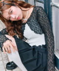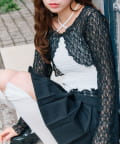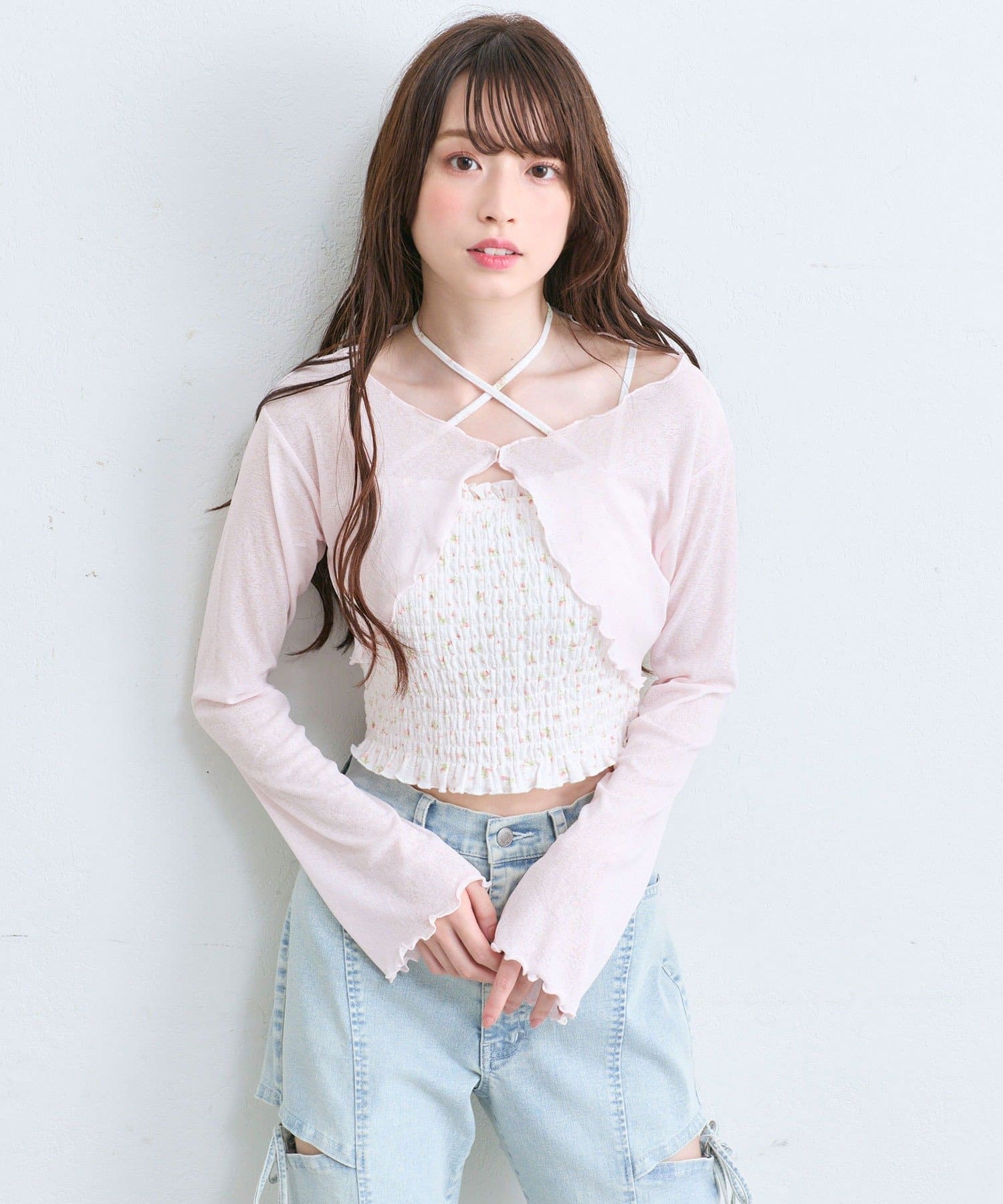 ・オフ/ブラックはレースのボレロに無地インナー、ピンク/サックスは透け感のあるボレロに小花柄のインナーです。