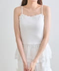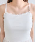 ・ふんわりと揺れる繊細なフリルや胸元のさりげないレースが、フェミニンな雰囲気を演出します。