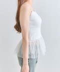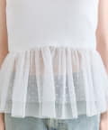 ・クロップド丈のトップスを合わせて、裾からふわふわのチュールが見えるように着てもかわいいです。