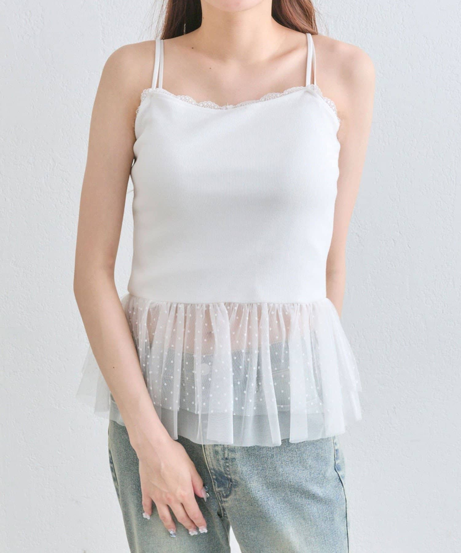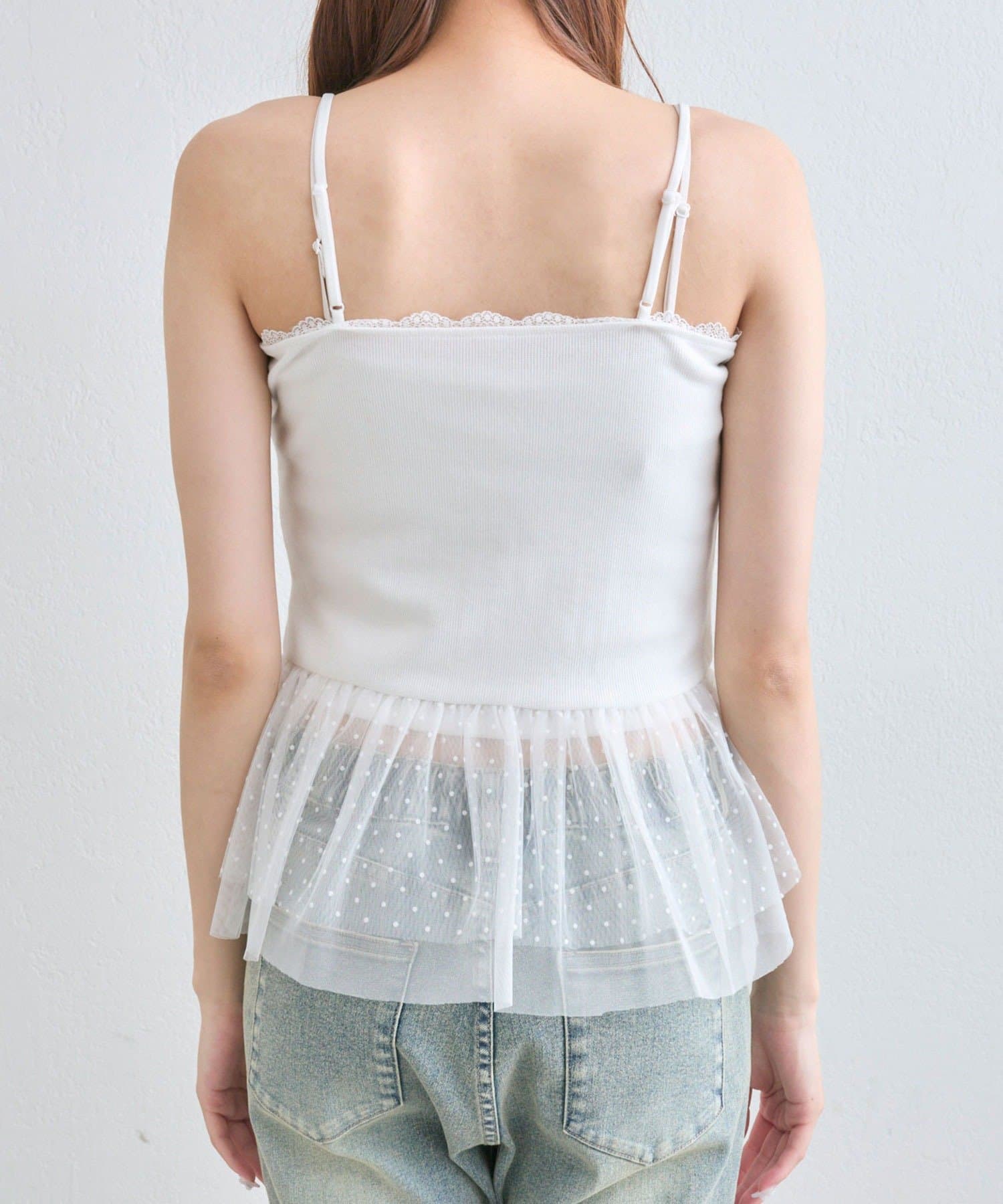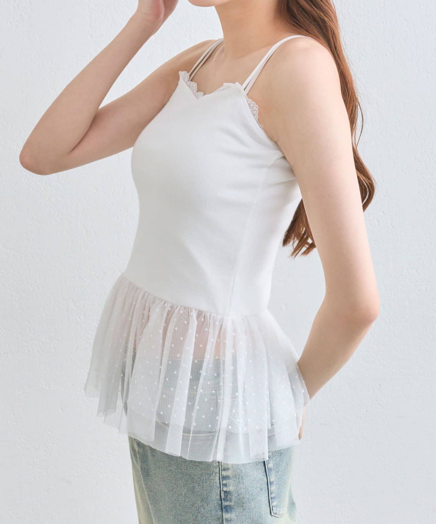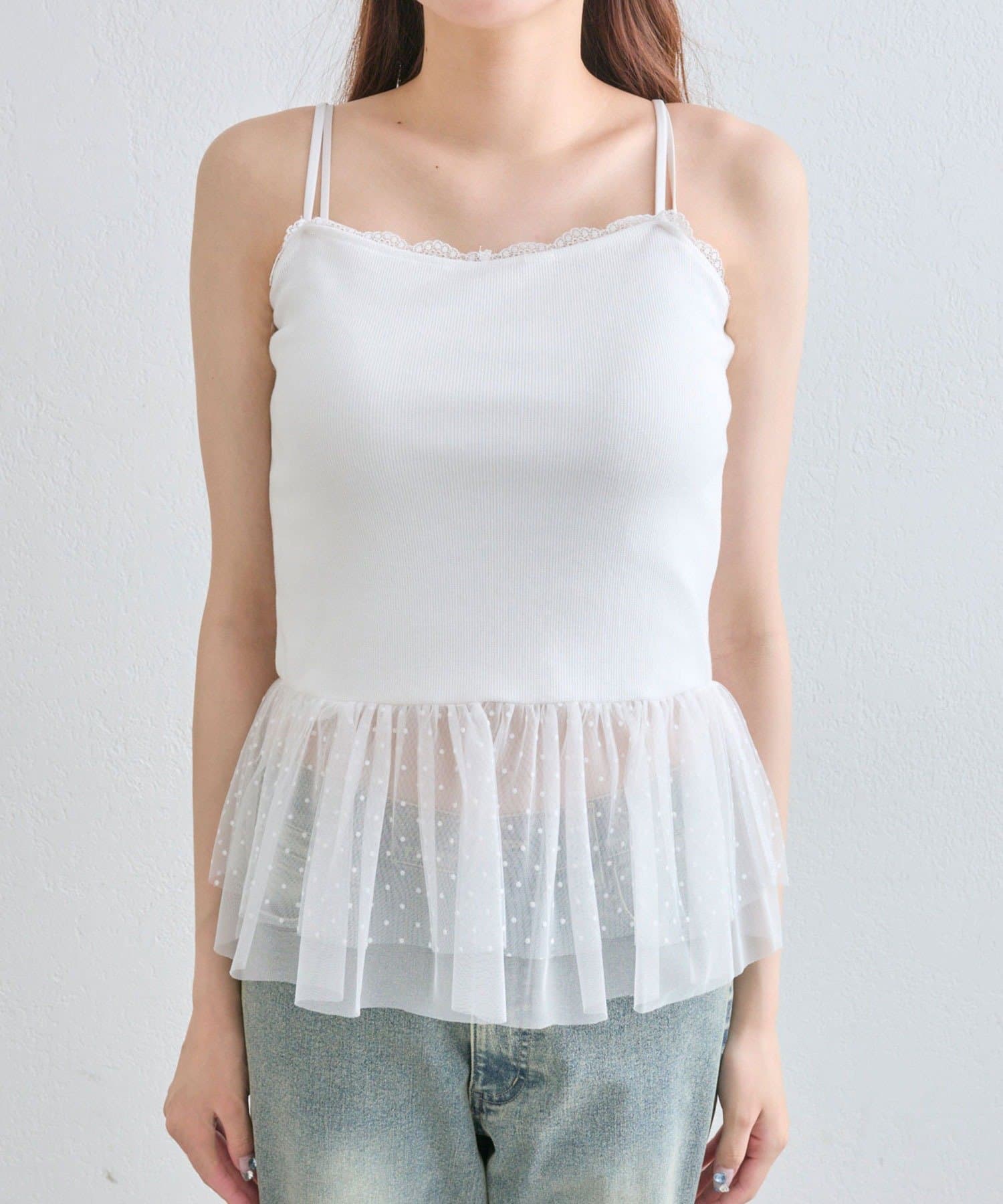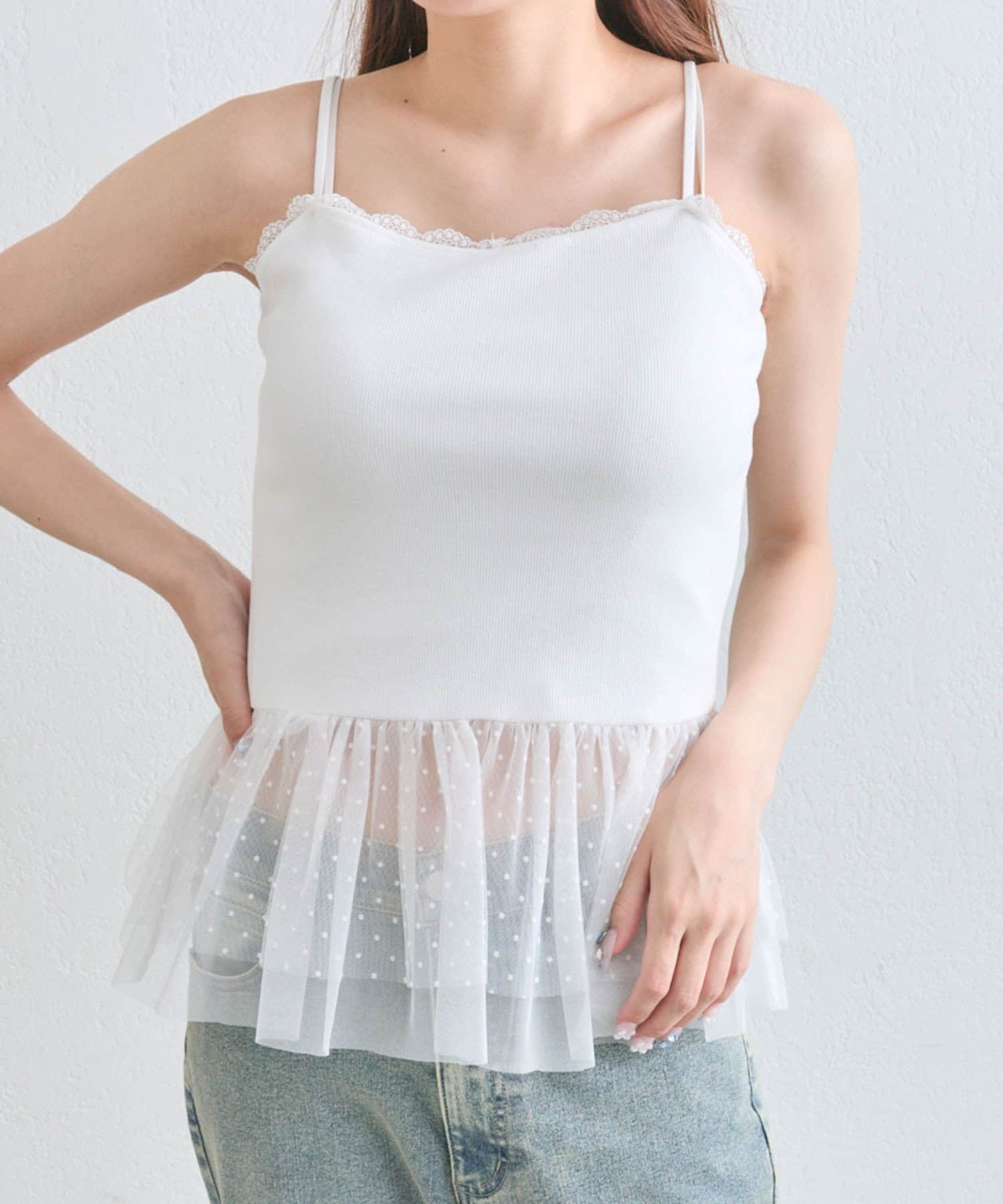 品番 1052060030 素材 本体: ポリエステル62%, 綿33%, ポリウレタン5% チュール部分: ポリエステル100% レース部分: ナイロン90%, ポリウレタン10% 原産国 中国 サイズ FREE カテゴリ トップス > キャミソール タイプ レディース ギフト ラッピング 可 取り扱い 本体:手洗い可能 アイテムサイズ