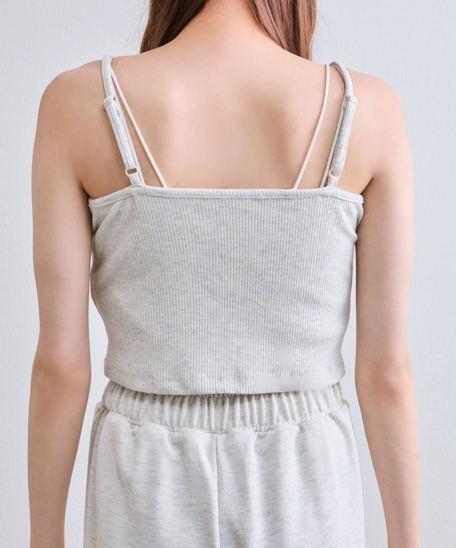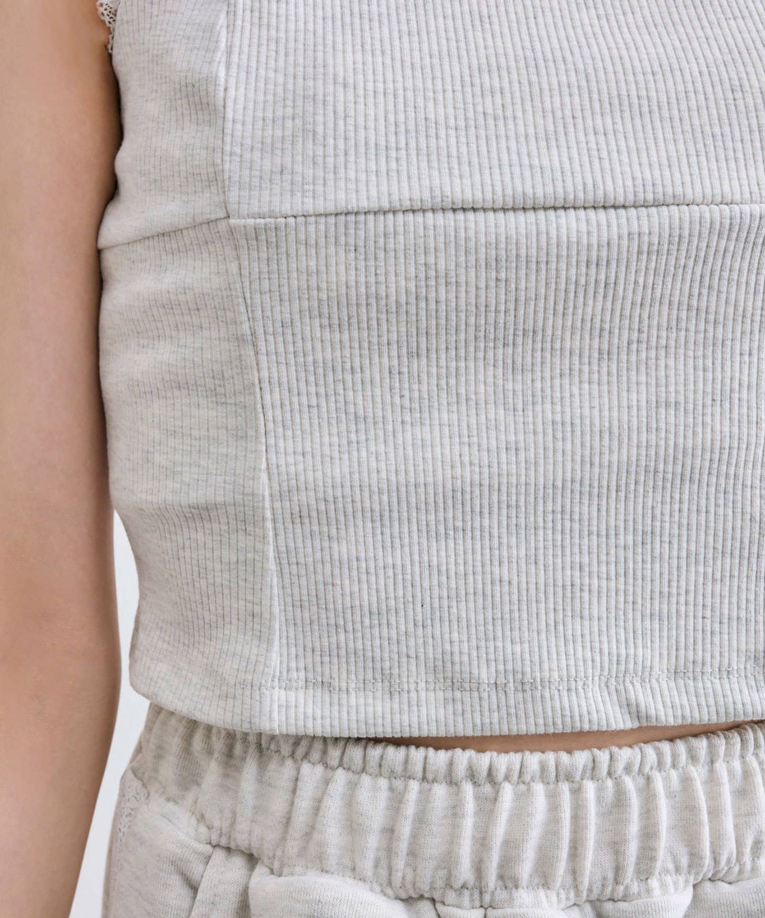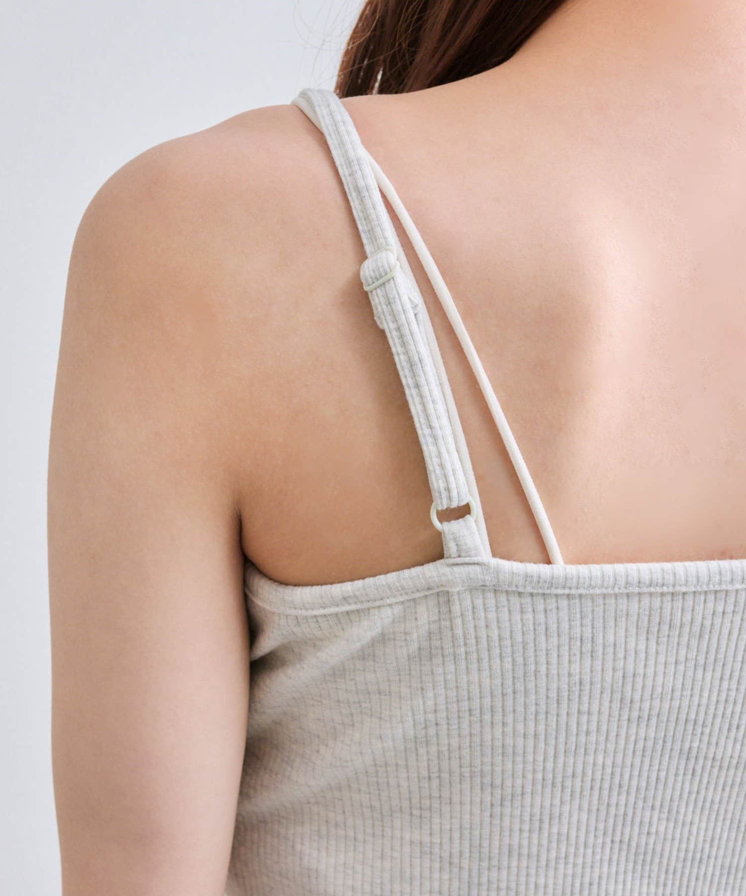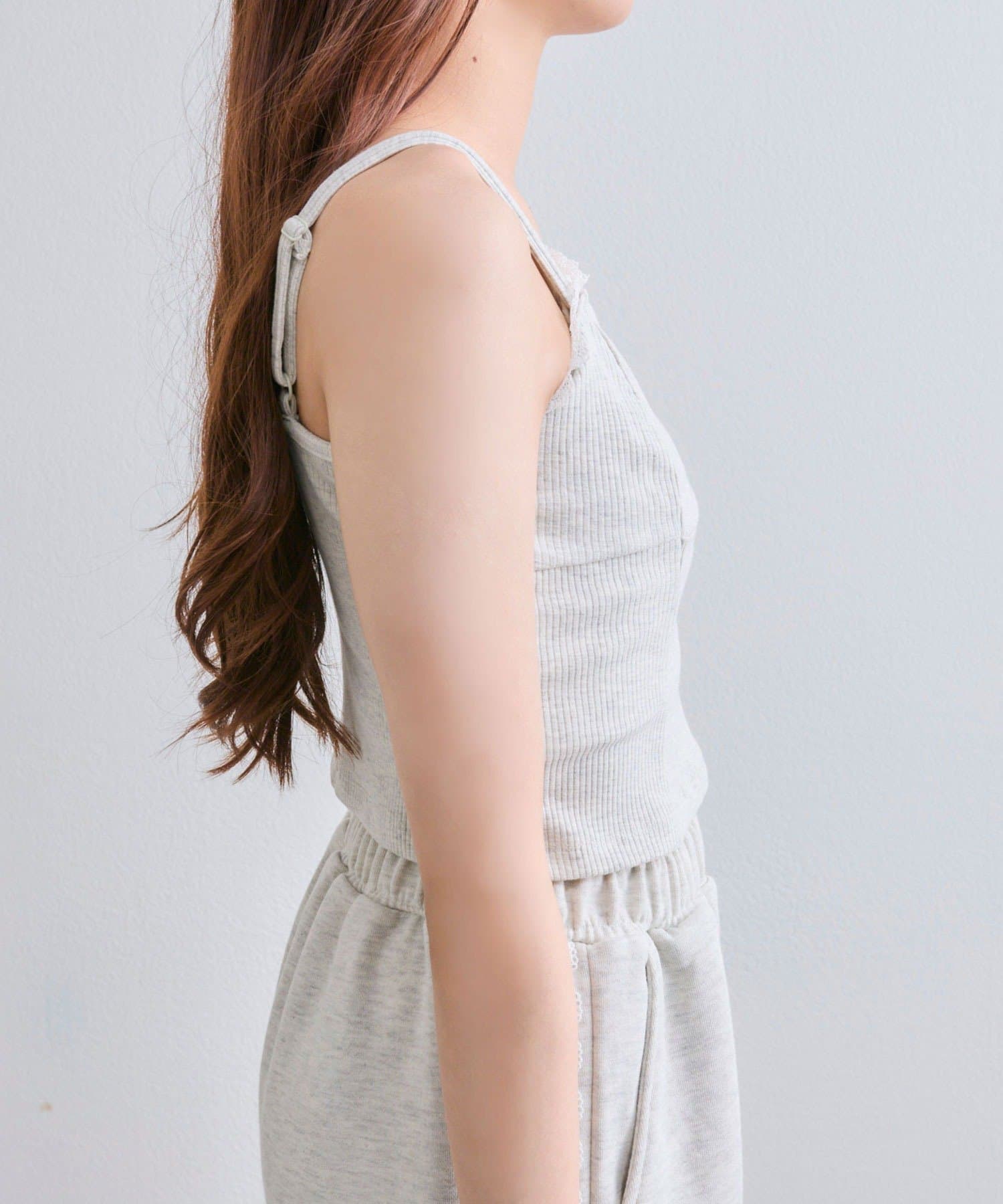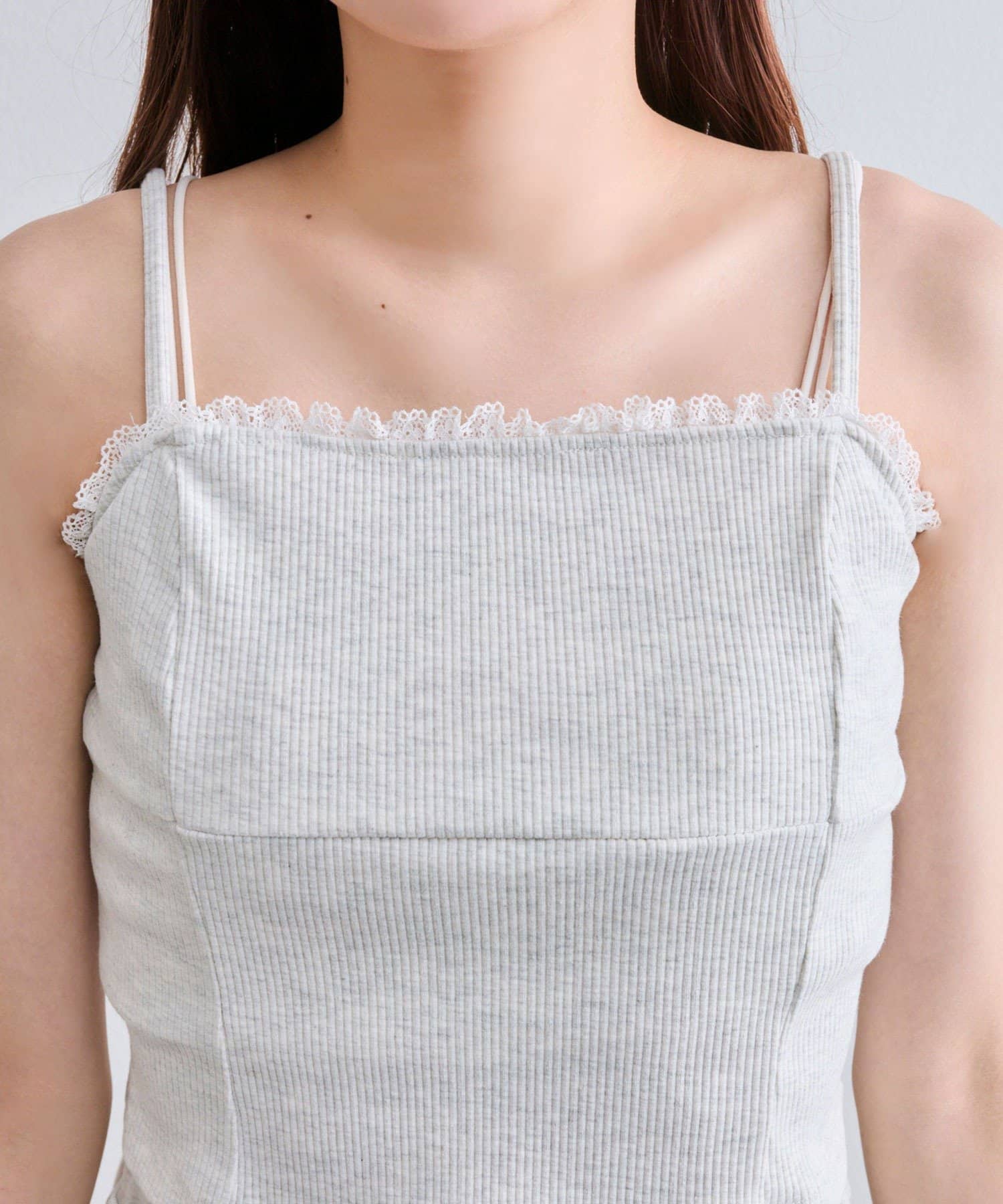 ・キャミは胸元にレース付きで顔周りが華やかになります。