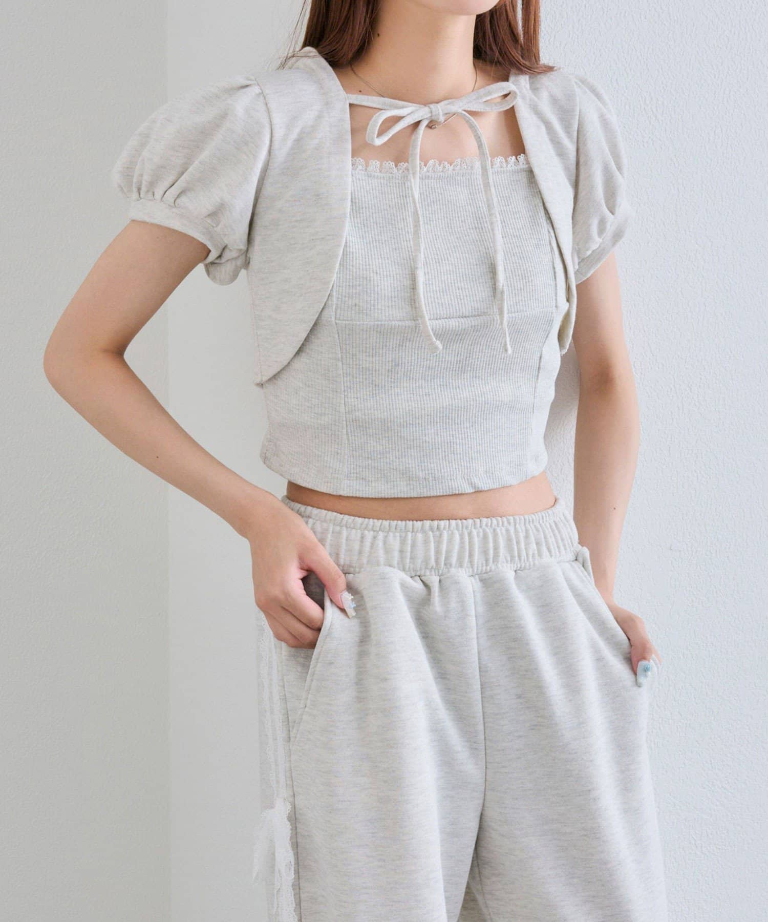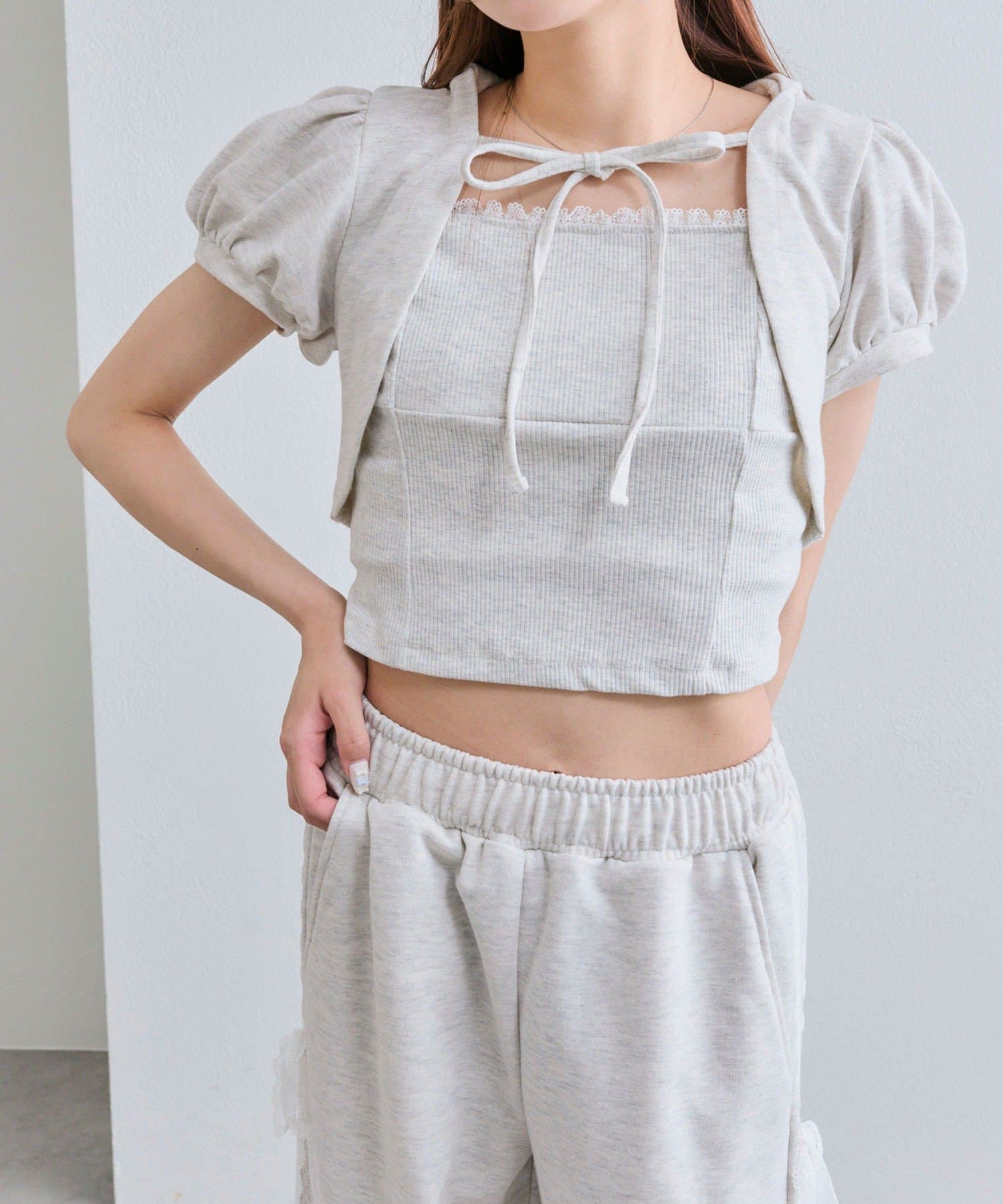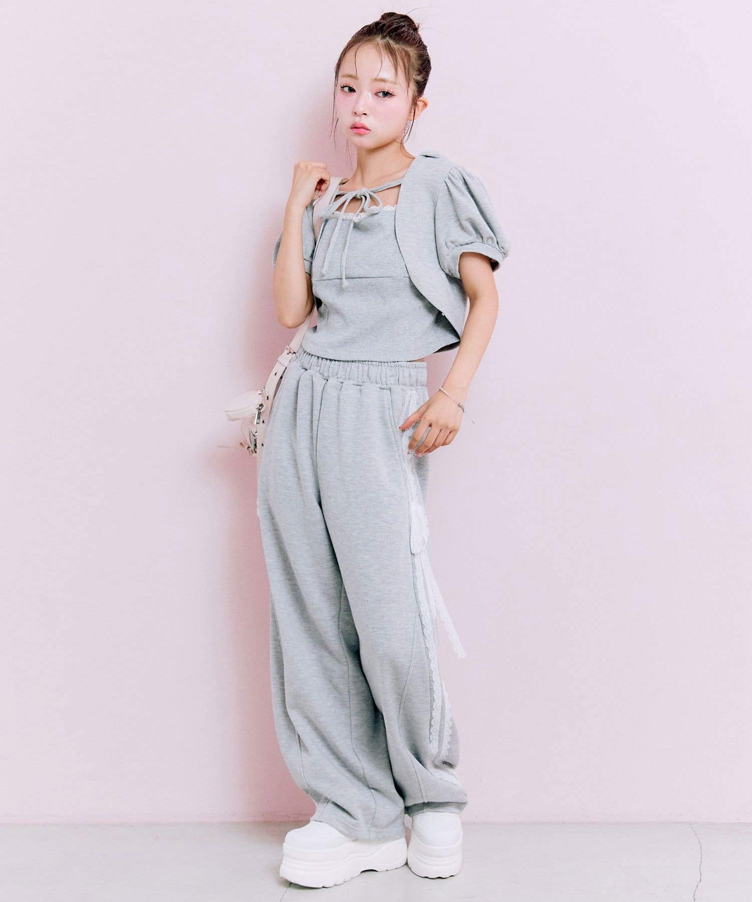 ・ウエストダブルリボンスウェットパンツ(商品番号:1052020030)と合わせてセットアップで着るのがおすすめ。