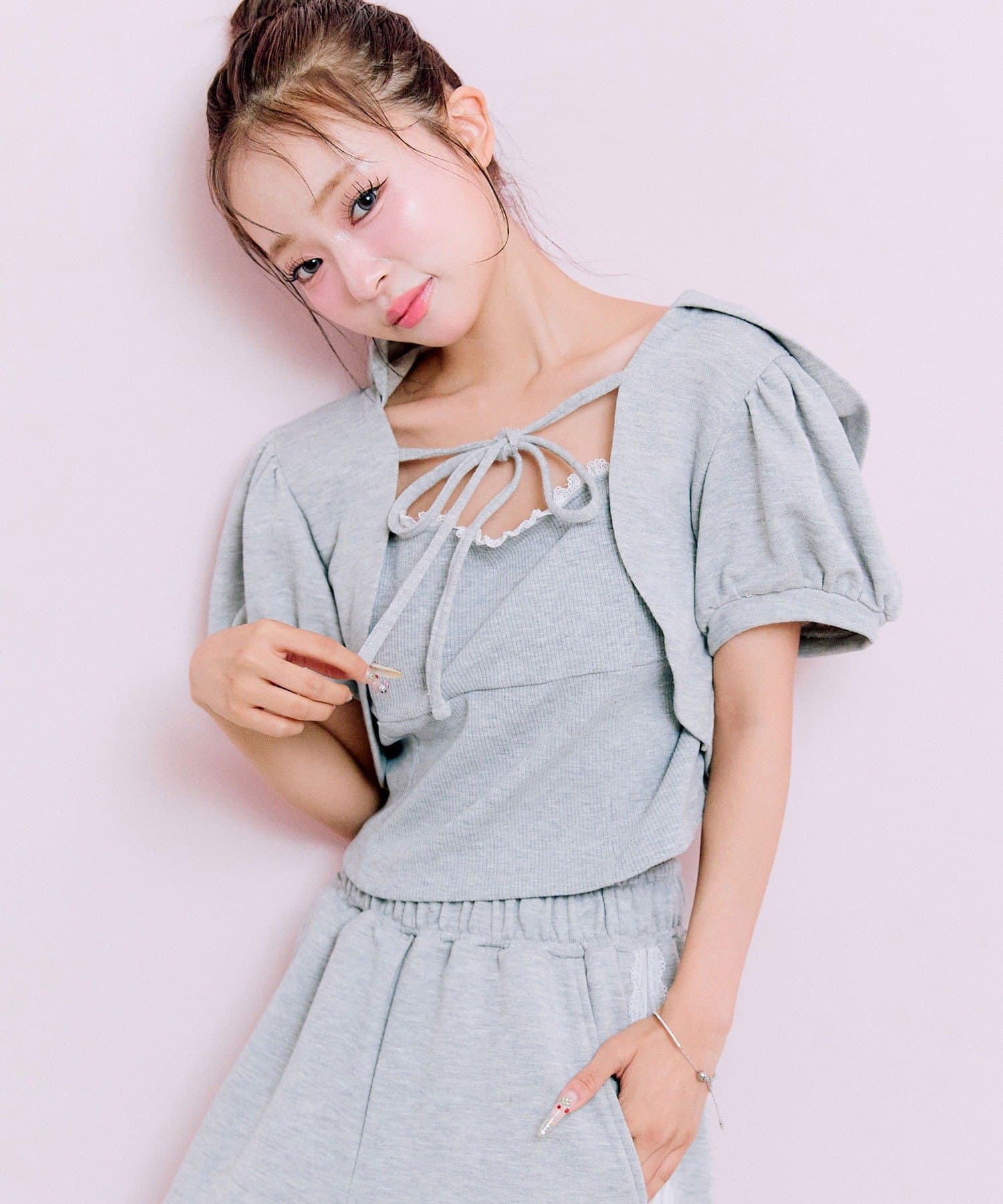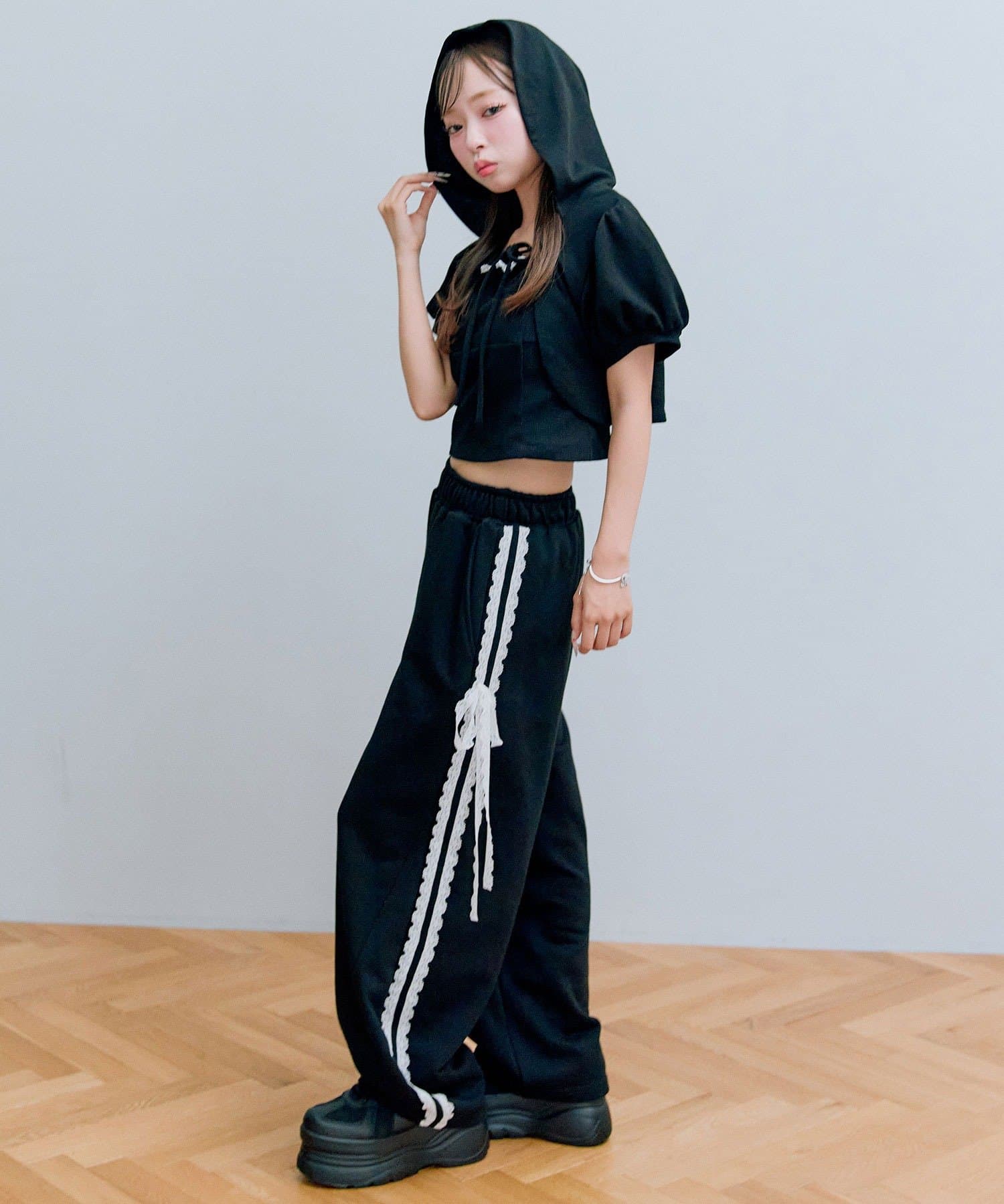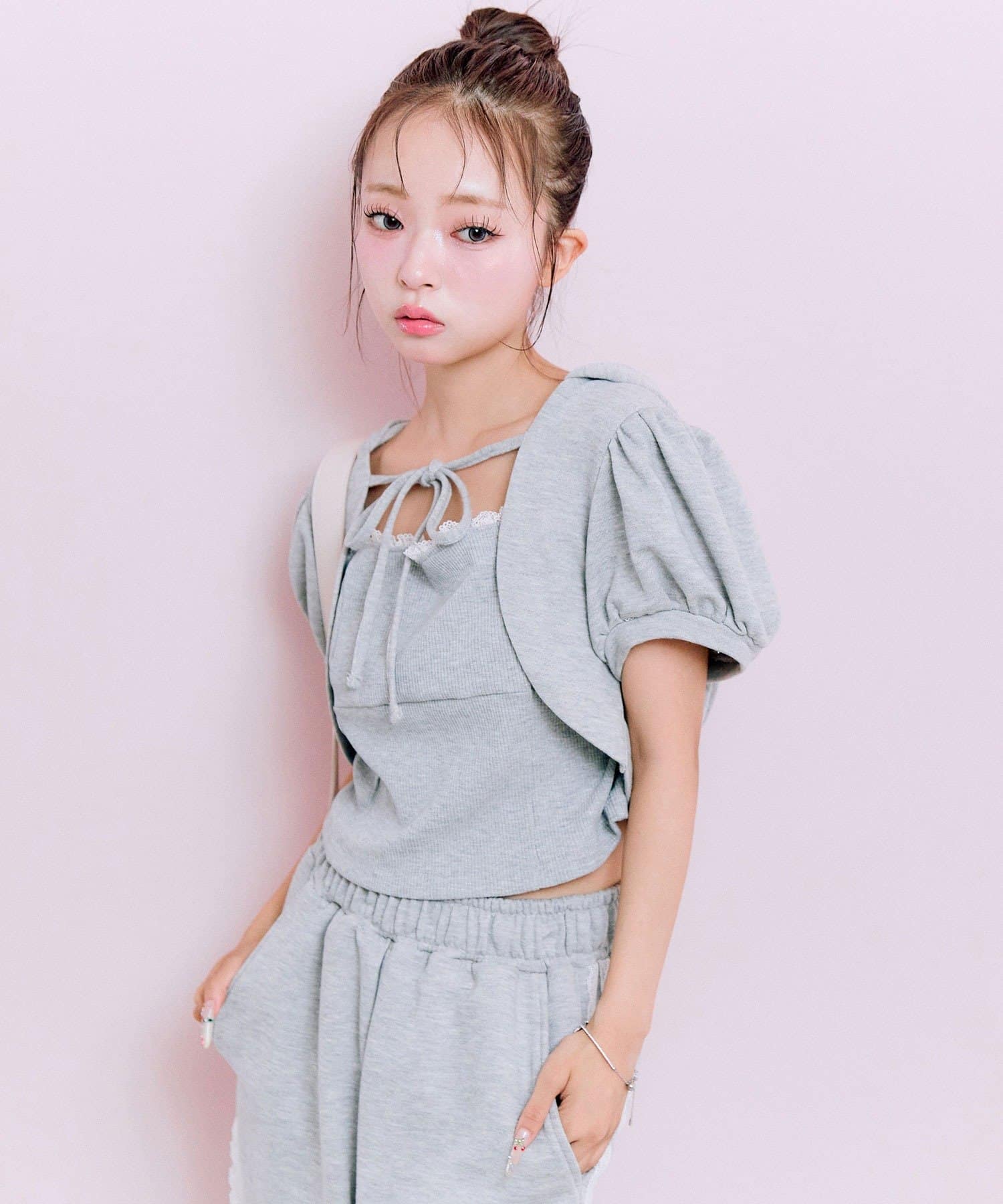 ・ウエストダブルリボンスウェットパンツ(商品番号:1052020030)と合わせてセットアップで着るのがおすすめ。