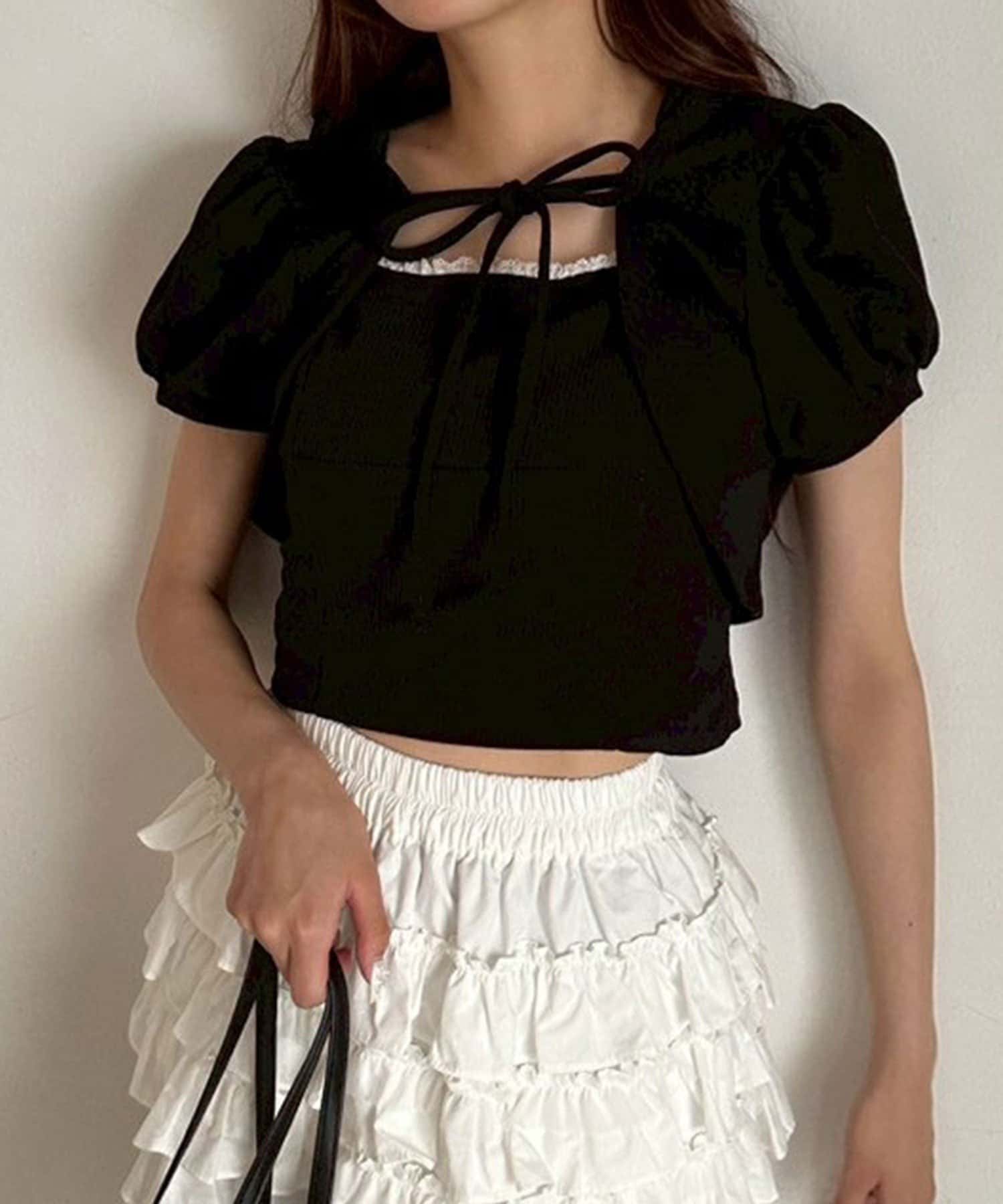 ・ふわっとしたパフスリーブが二の腕カバーしてくれて、女の子らしいシルエットです。