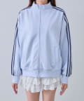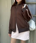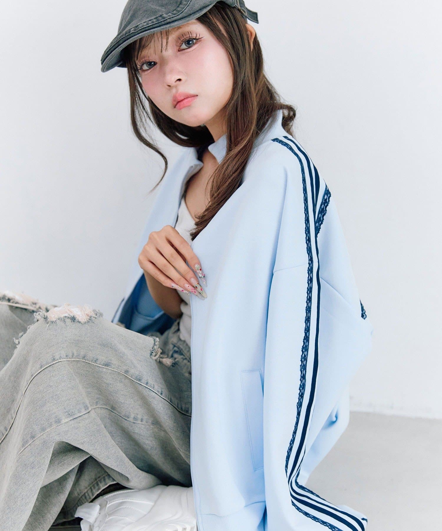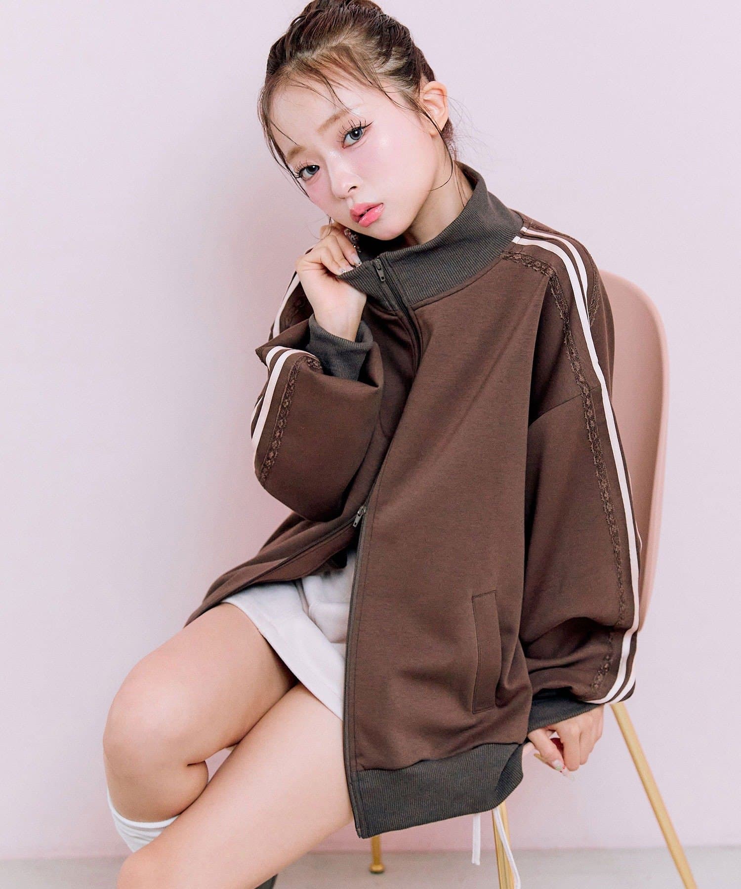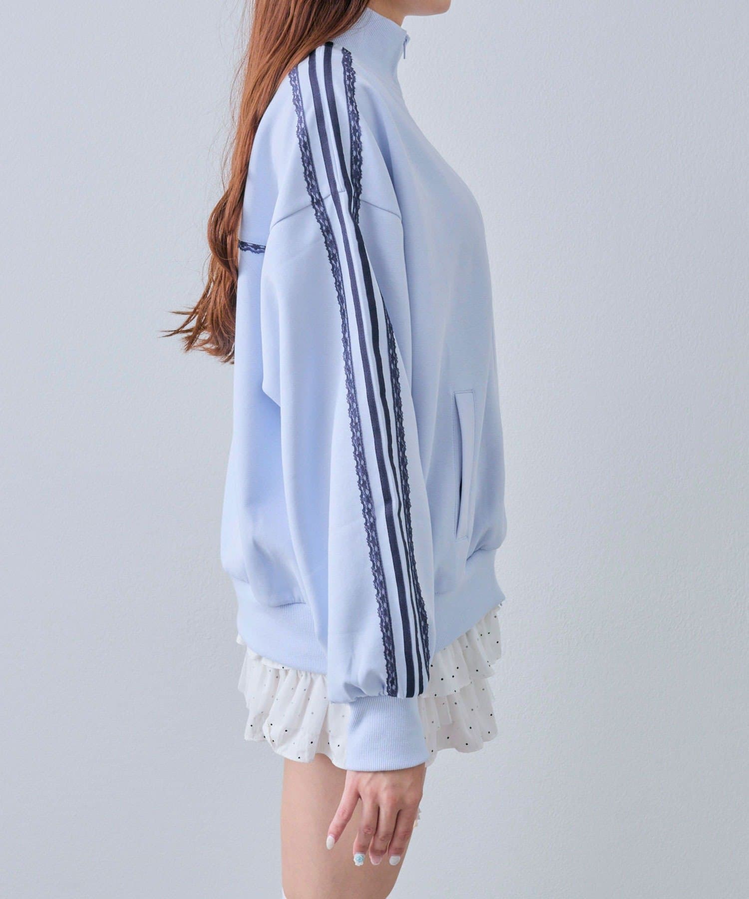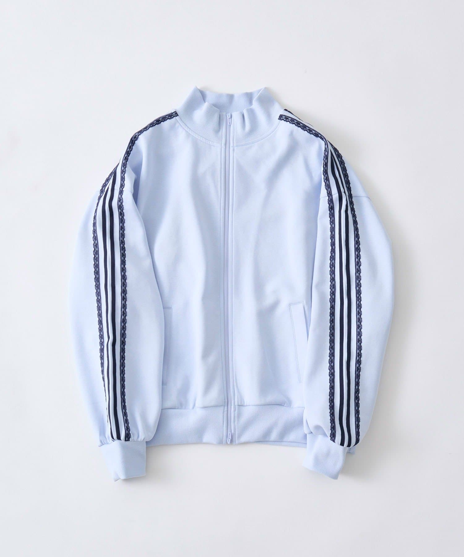 ・配色カラーの袖ラインとリボンがトレンドライクなトラックジャケット。