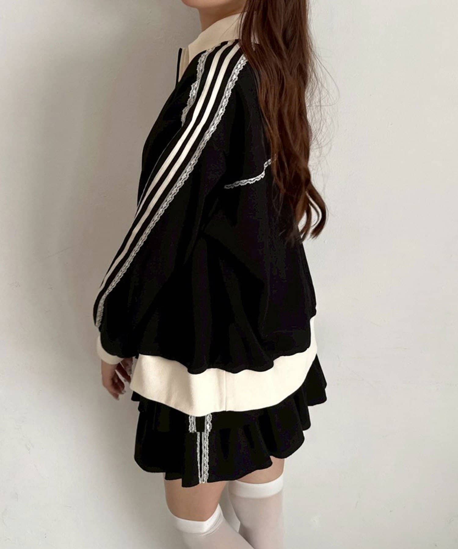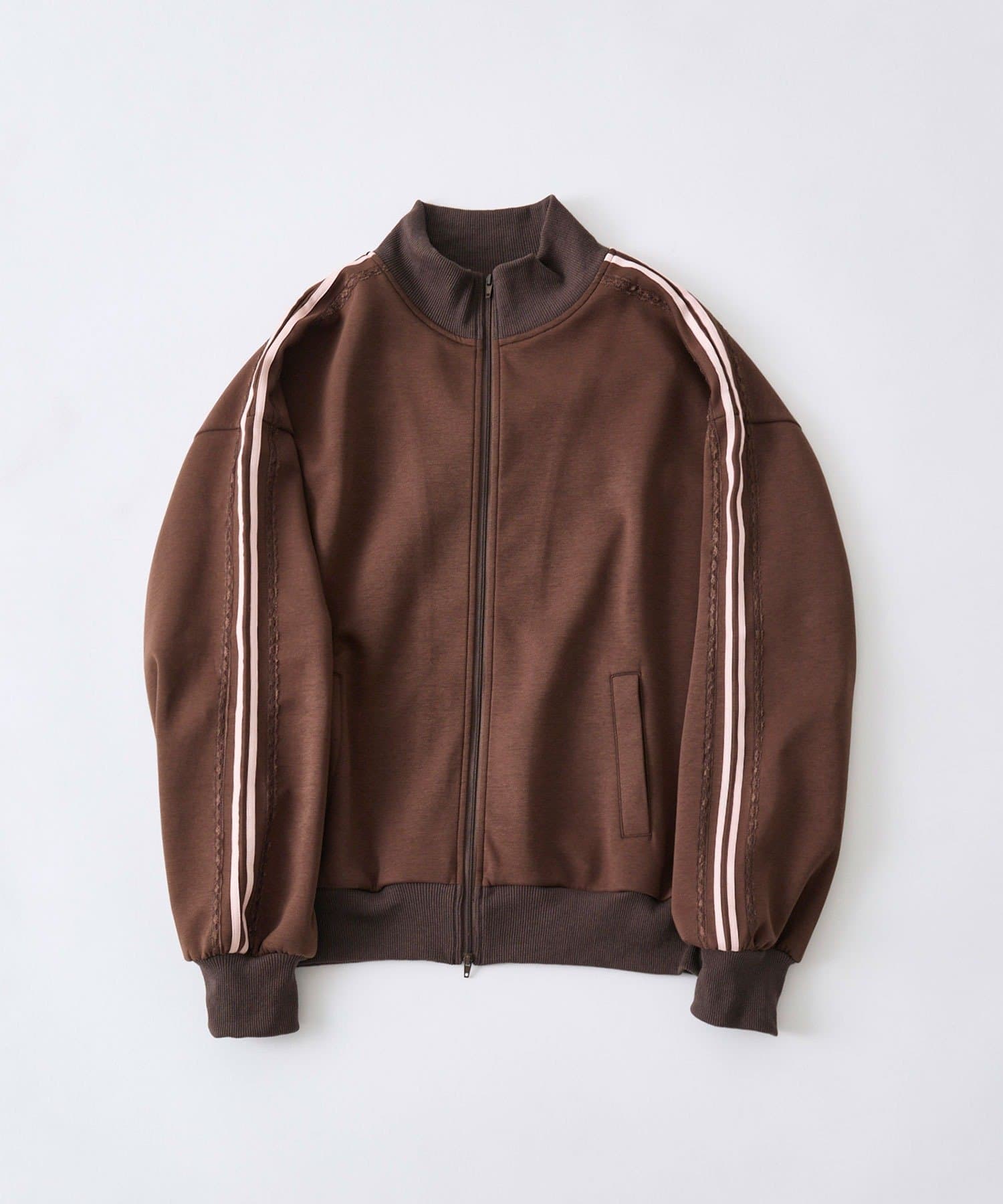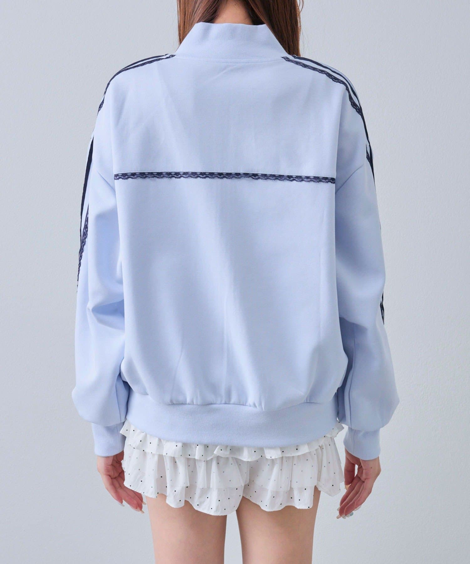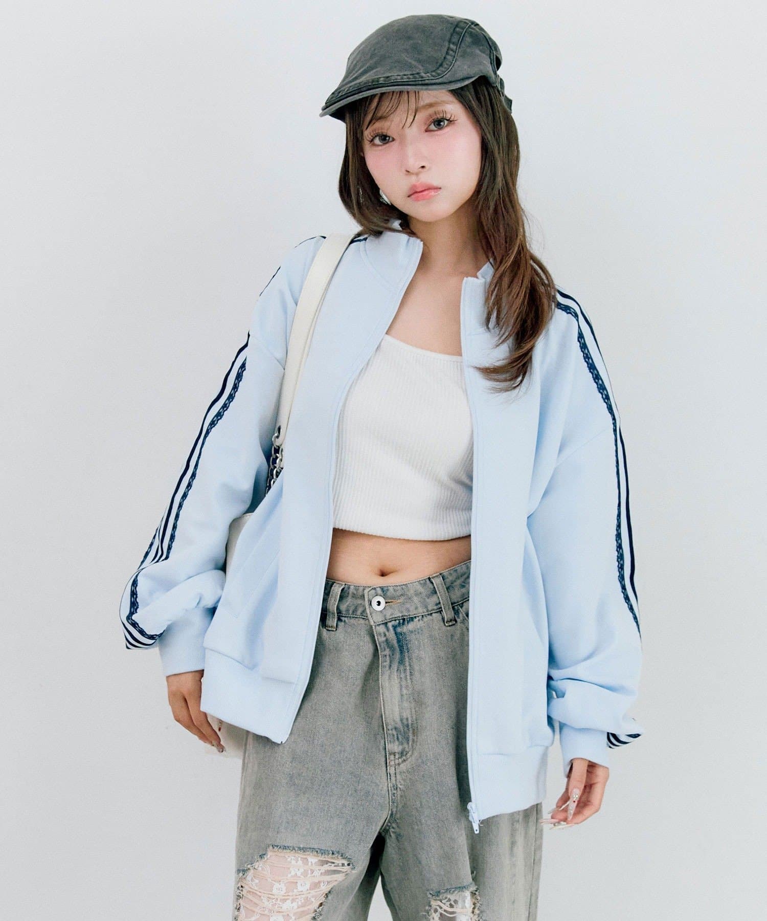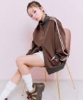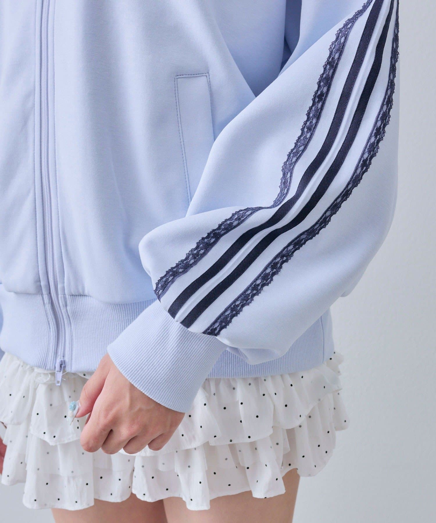 ・配色カラーの袖ラインとリボンがトレンドライクなトラックジャケット。