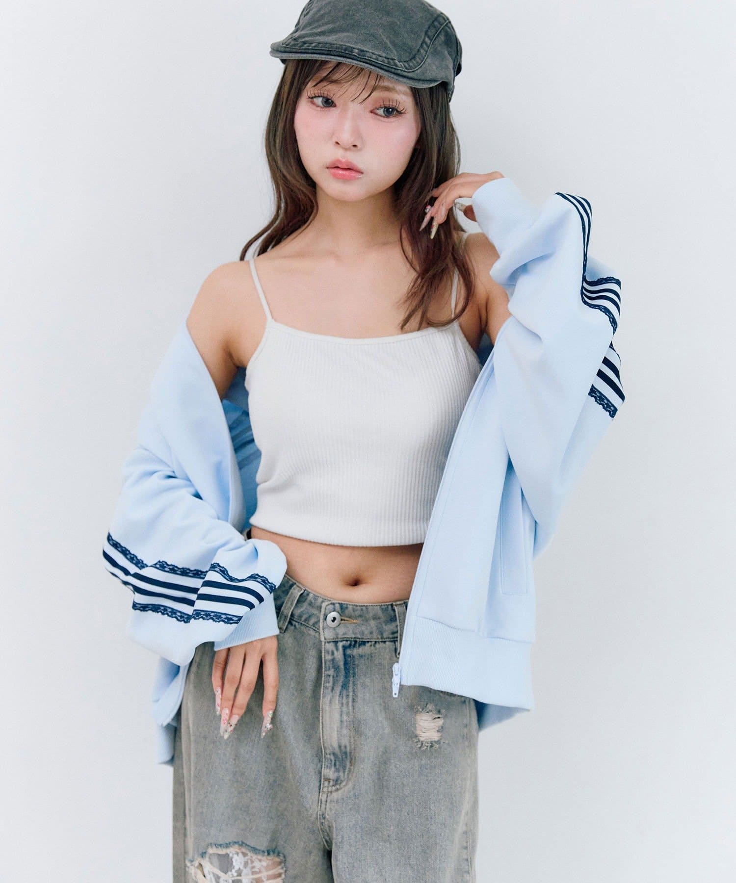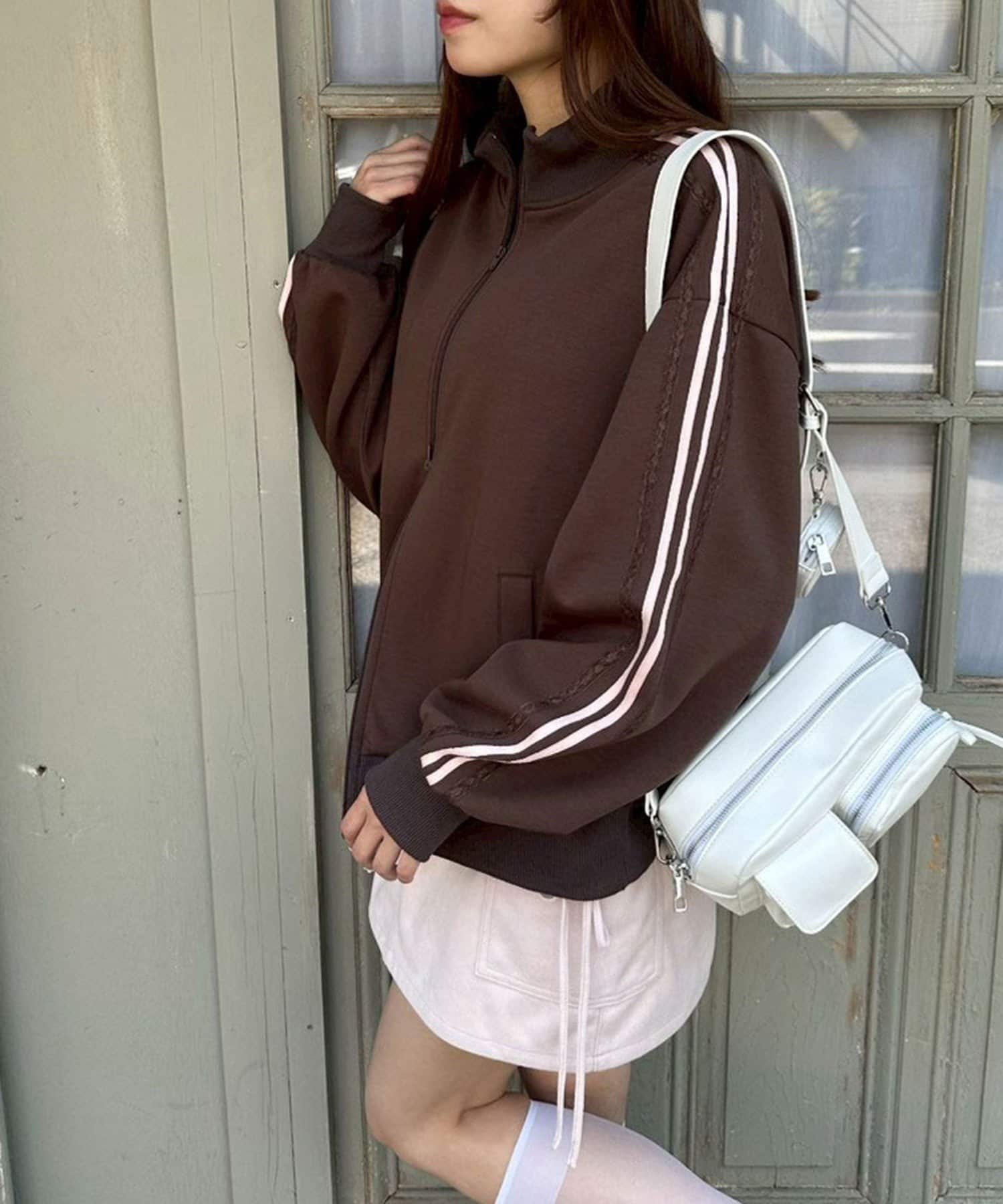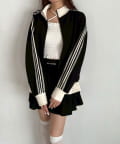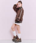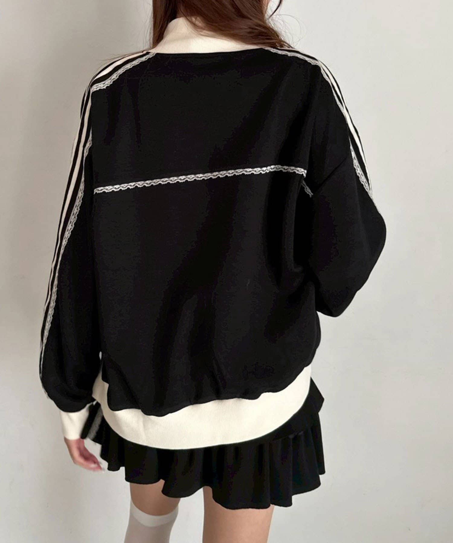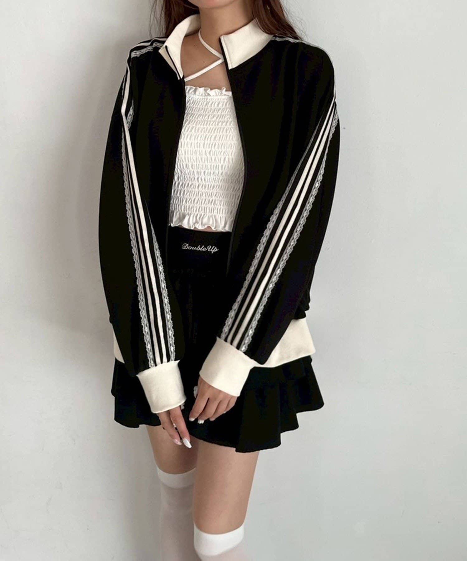 ・配色カラーの袖ラインとリボンがトレンドライクなトラックジャケット。