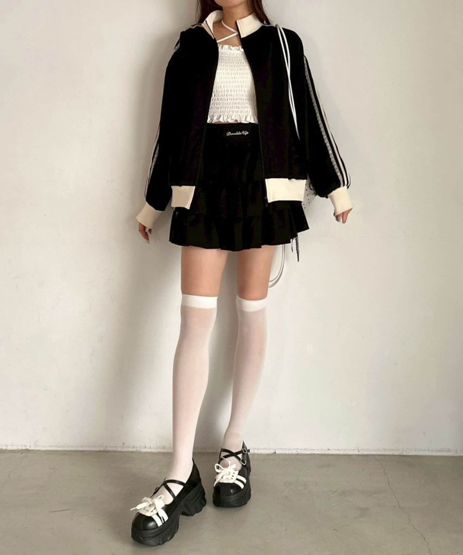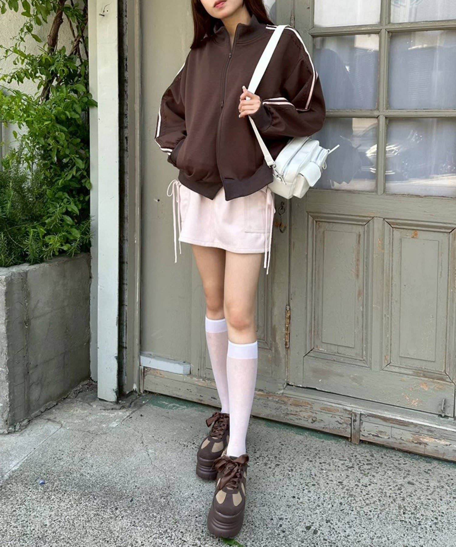・ミニボトムと合わせて韓国っぽいカジュアルガーリーな着こなしがおすすめ。