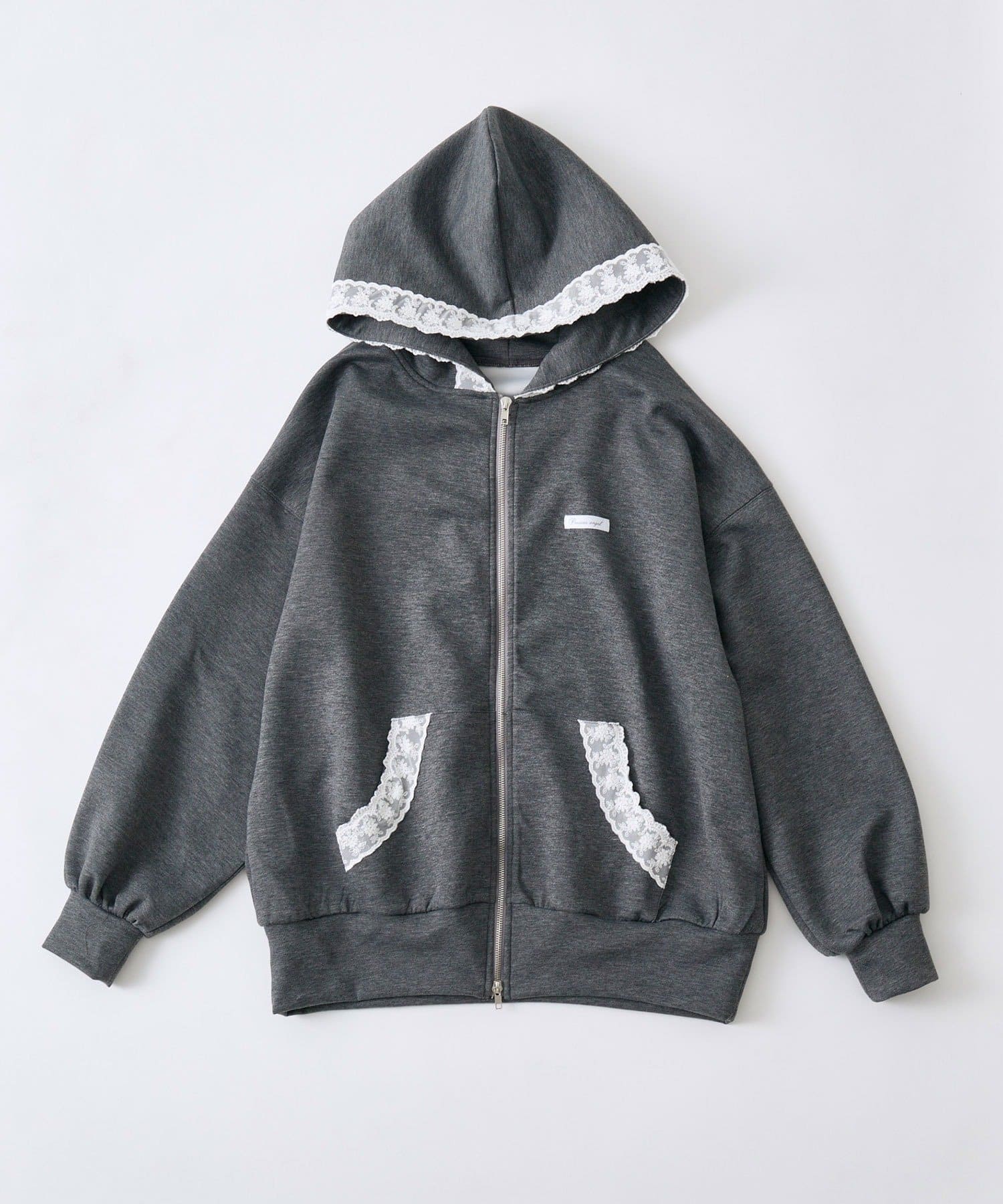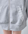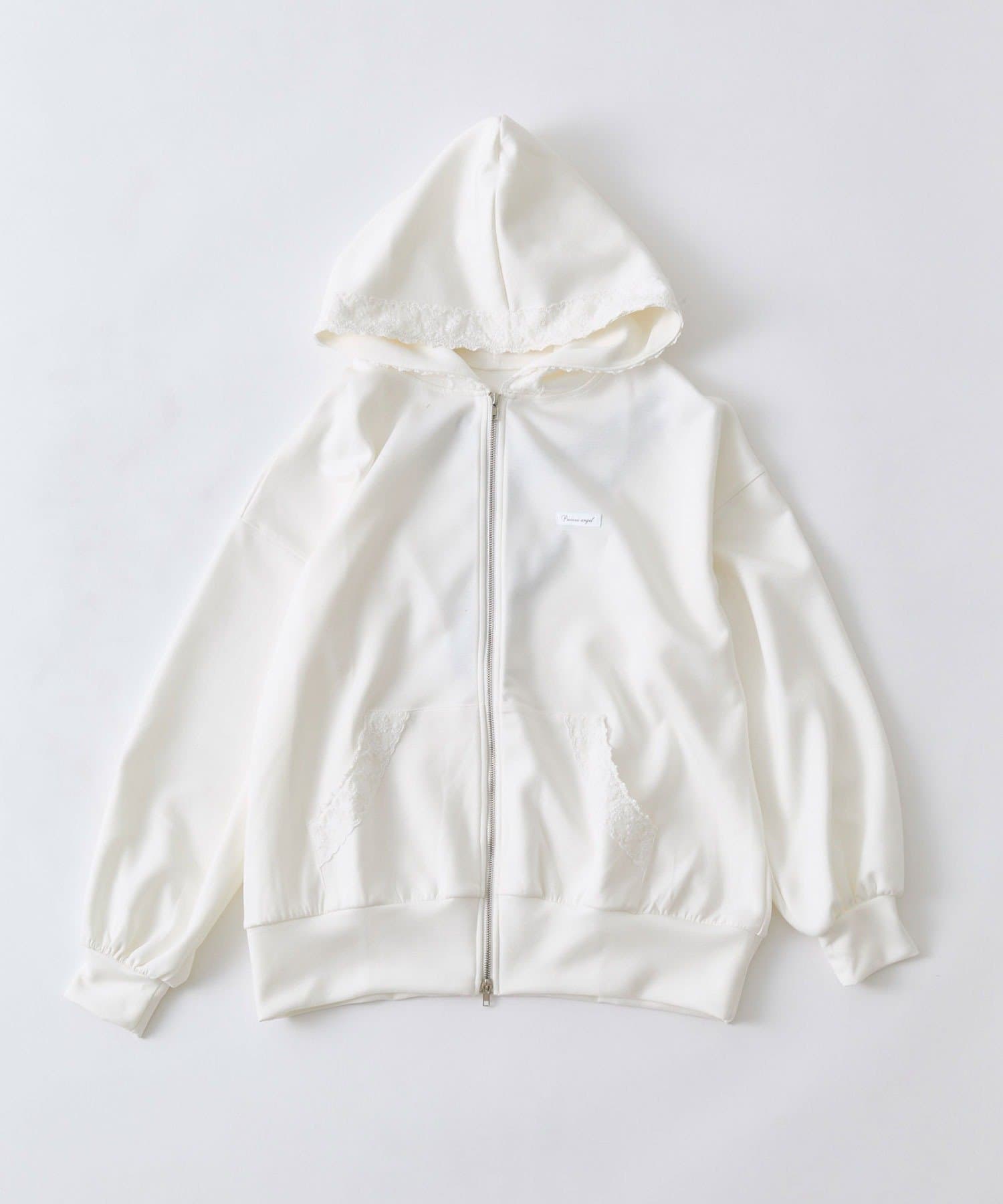 ・フードやポケットにレースが施された、ガーリーに着れるデザインです。