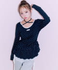 ・首元のリボンは前でクロスして後ろで結ぶと、顔周り華やかになり後ろ姿までかわいく着れます。