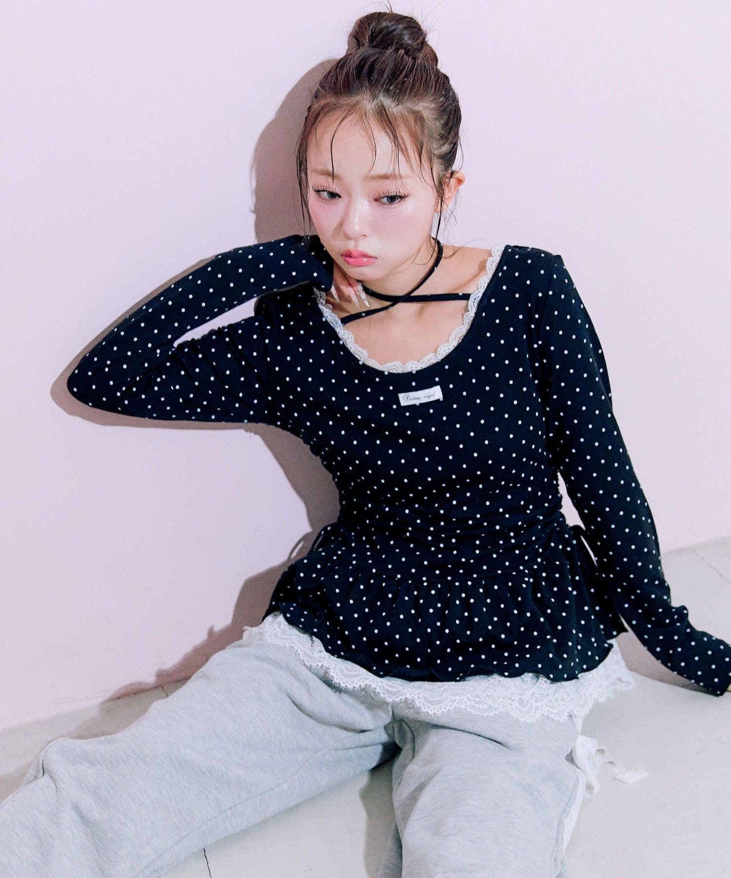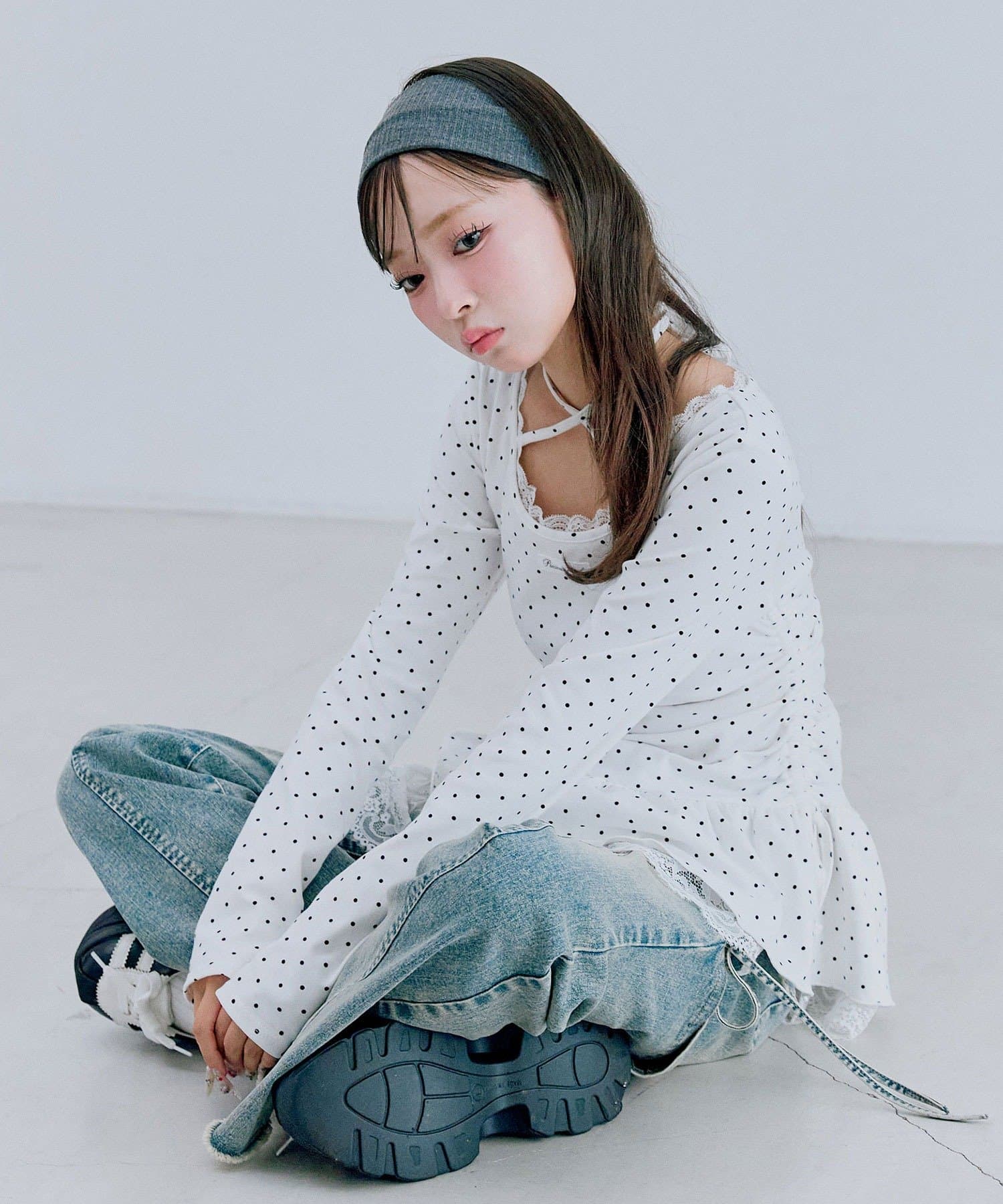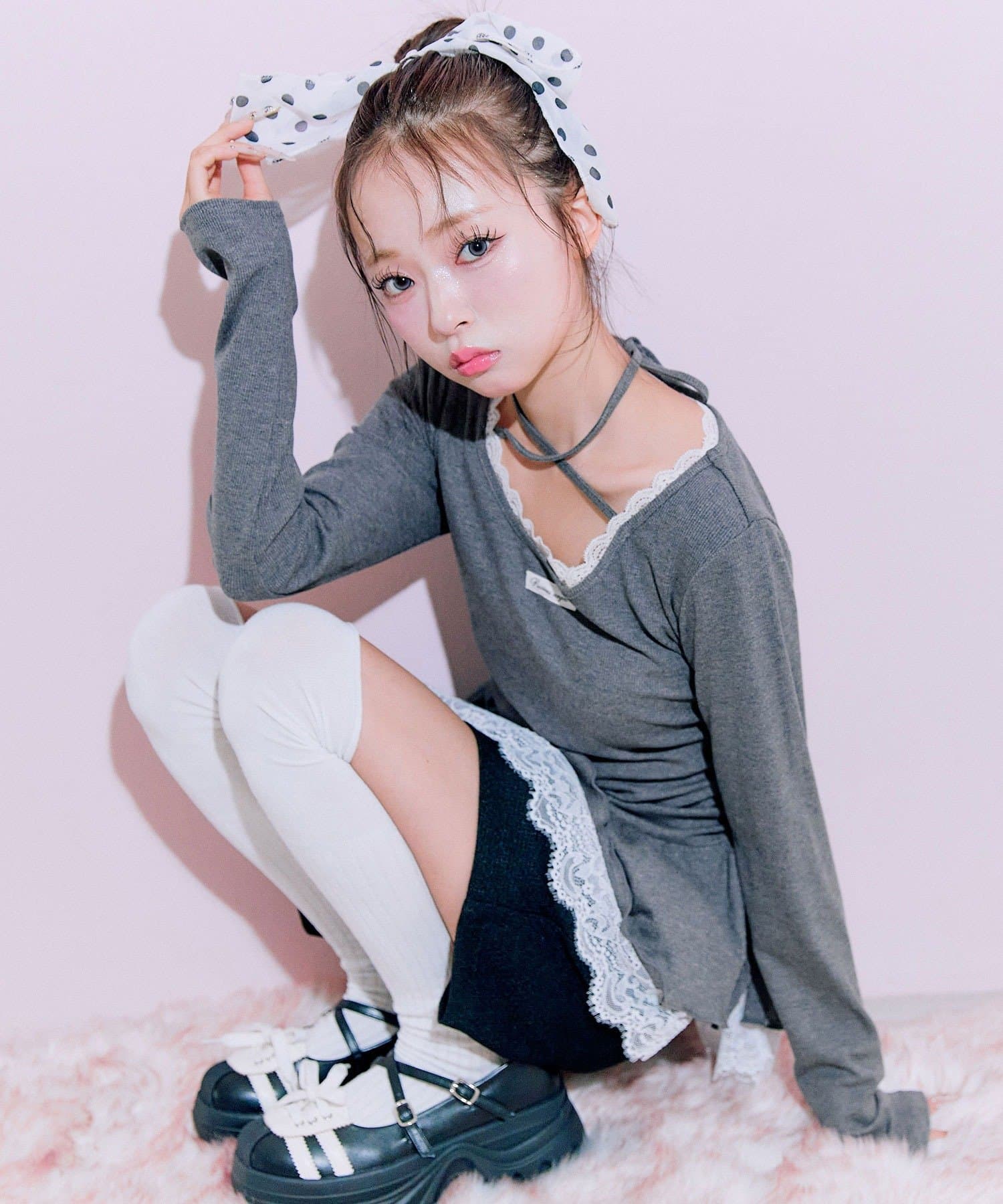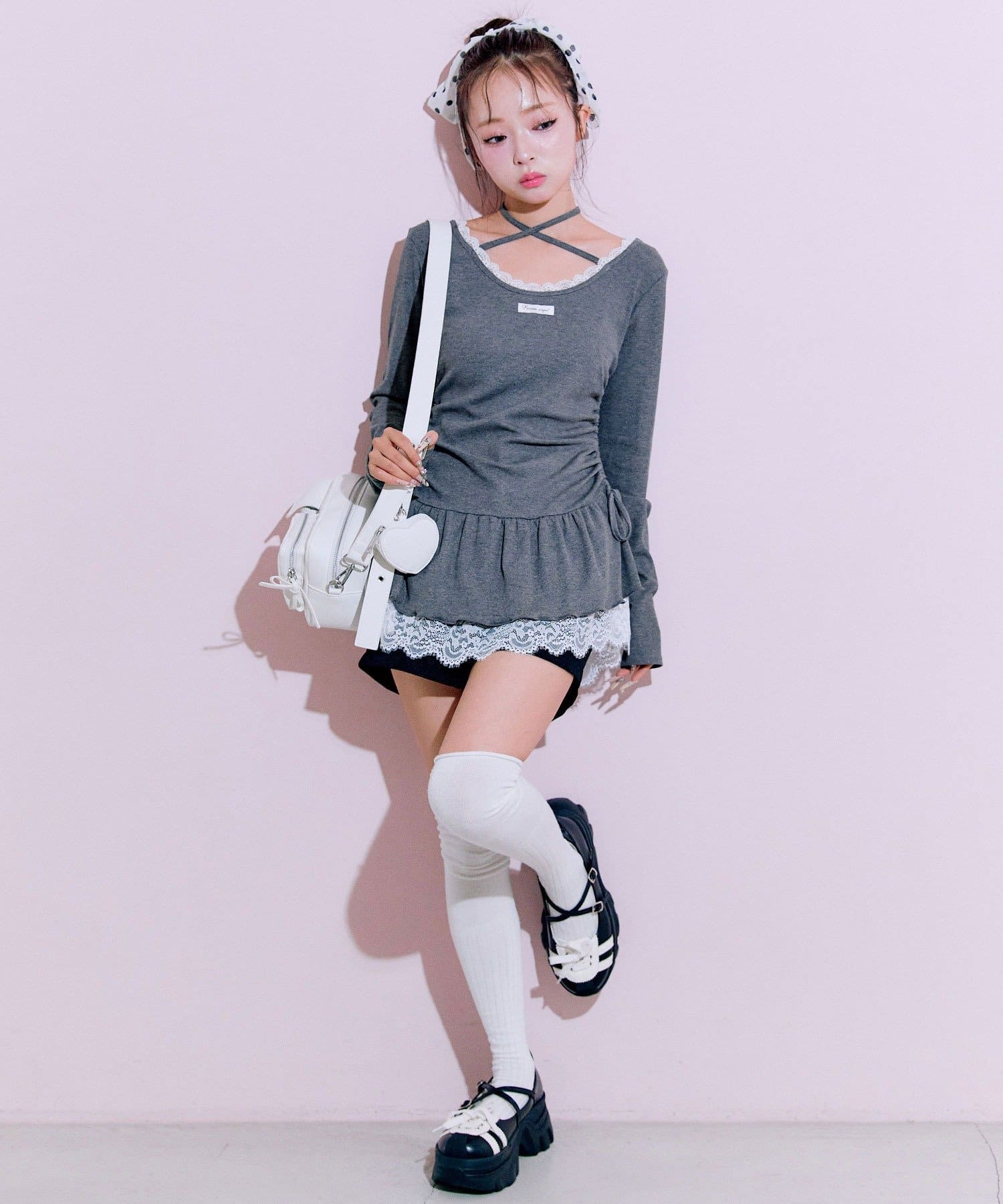 ・ミニボトムを合わせて韓国ガーリーにまとめてもかわいいです。