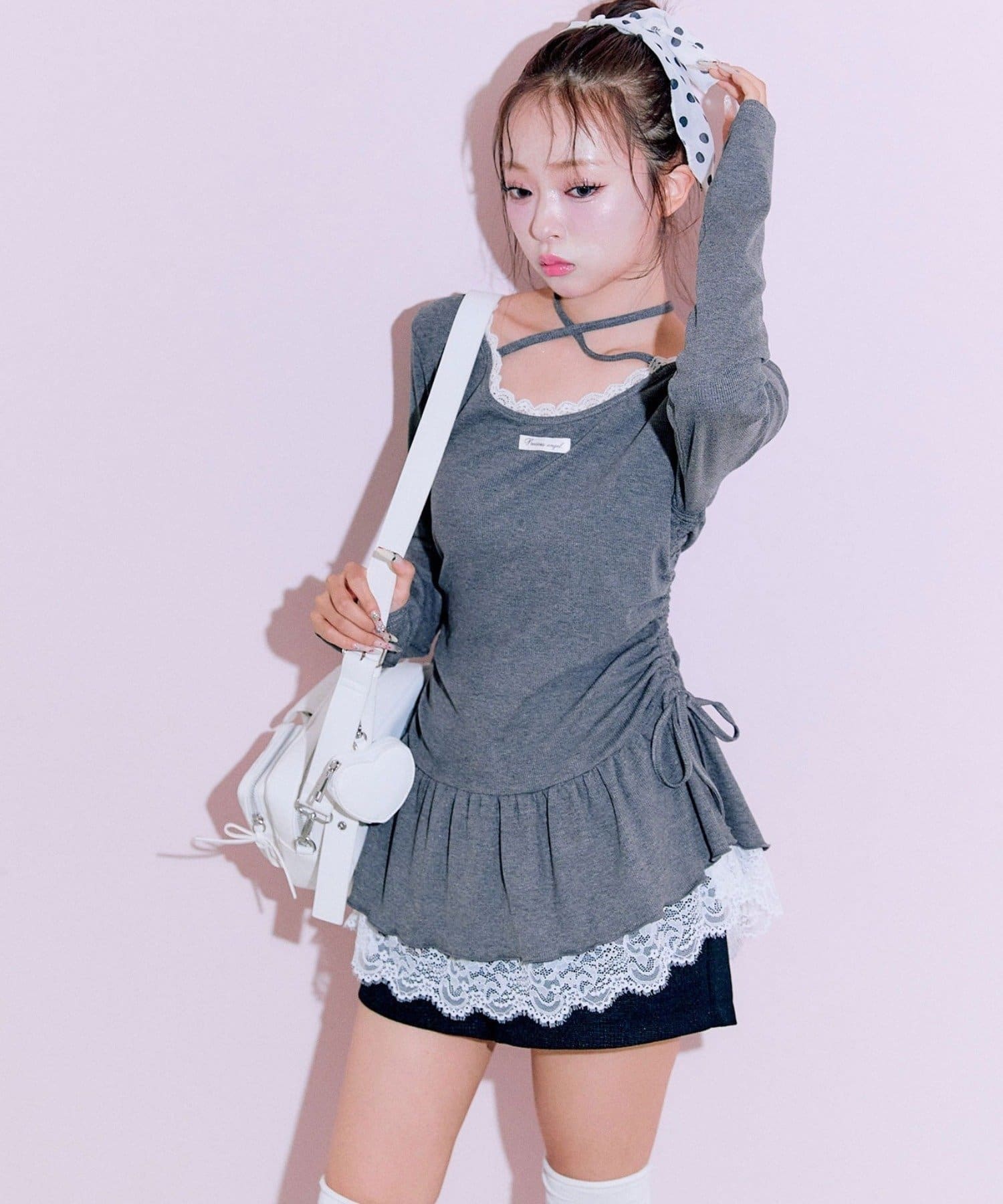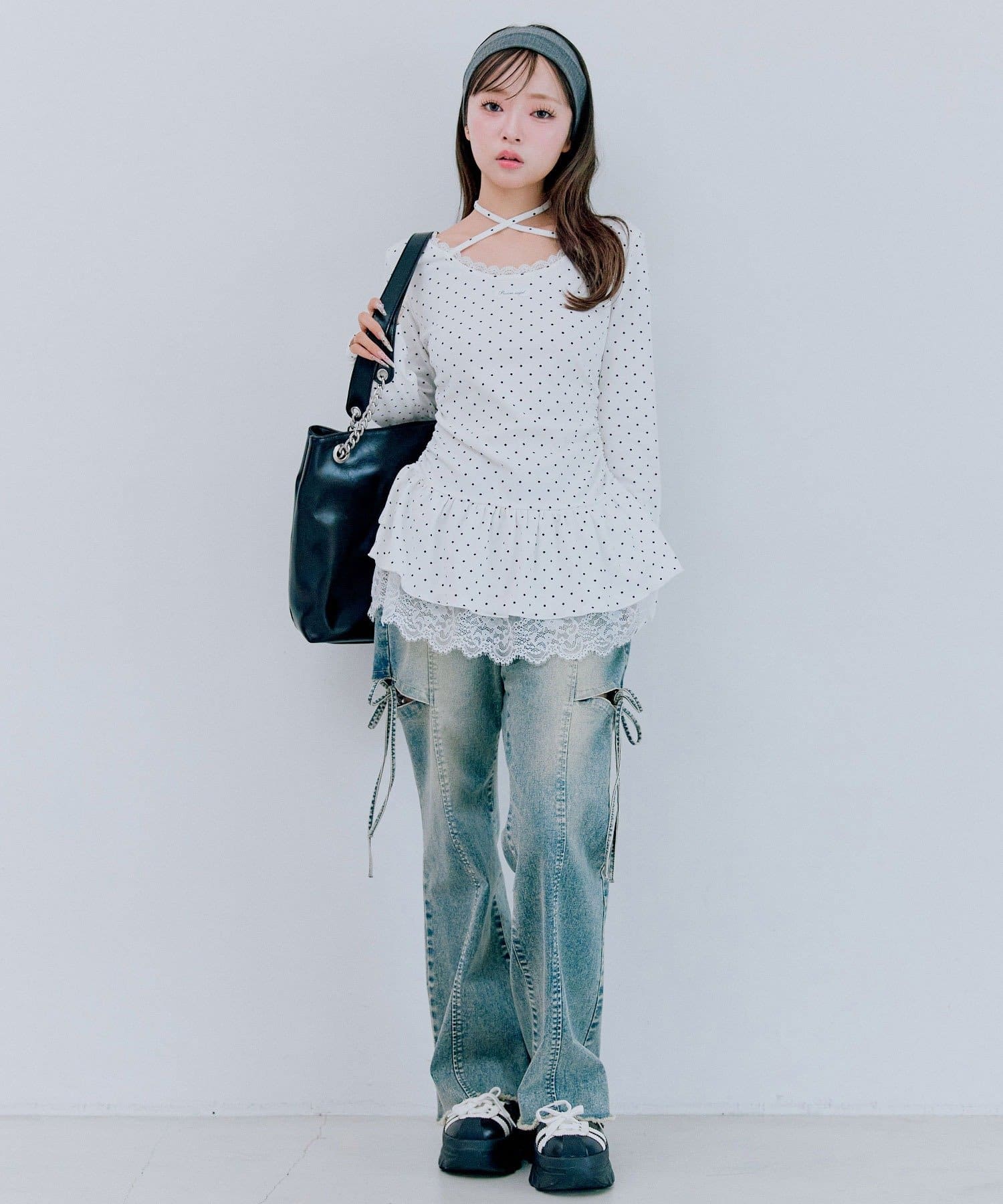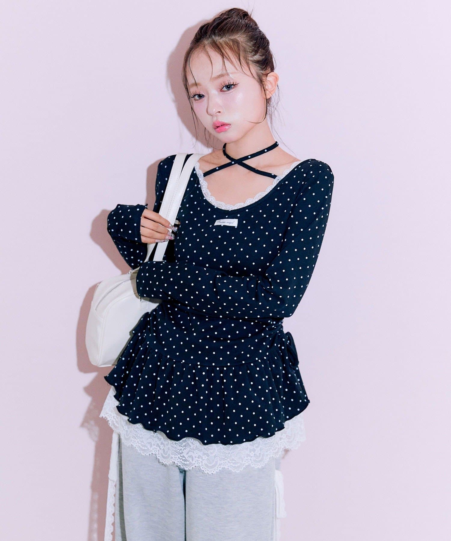 ・レースとリボンたっぷりで、これ1枚でトレンドの着こなしが叶うデザイン。