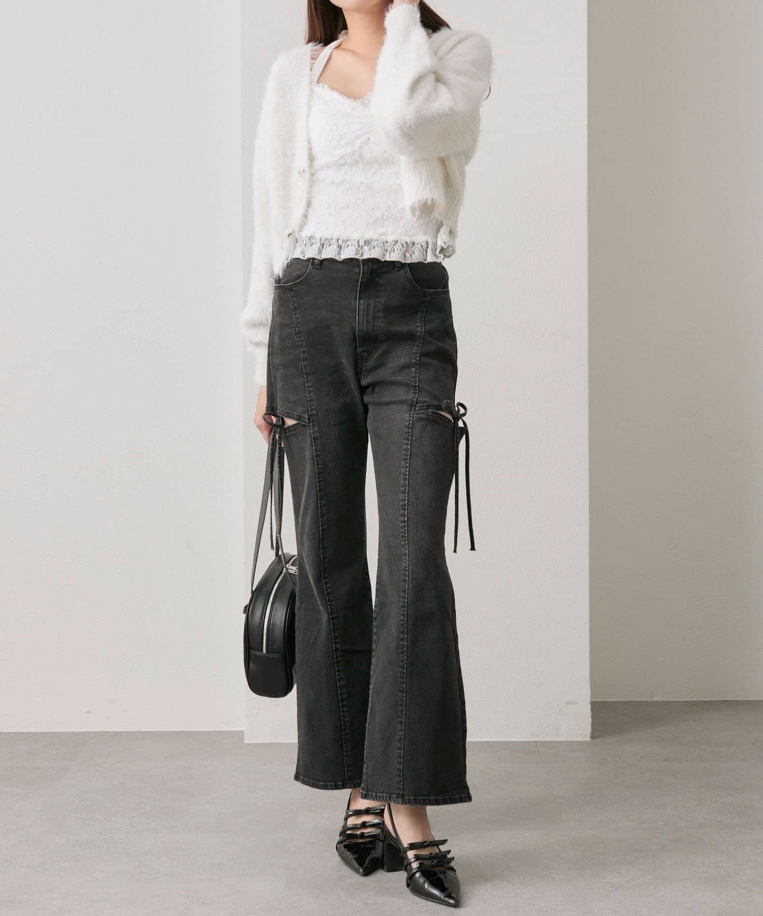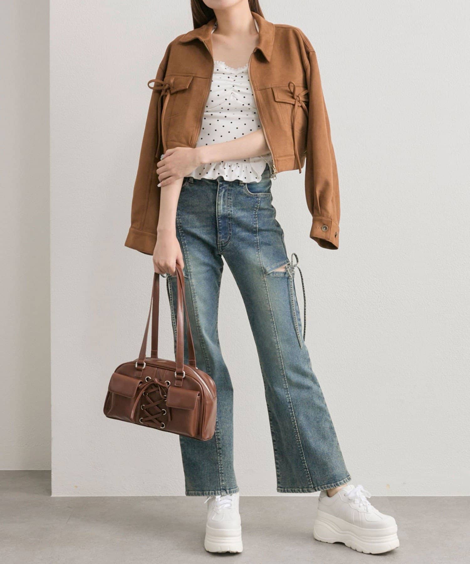 ・ボトムはスカート合わせでガーリーにも、デニムやスウェットパンツ合わせでカジュアルにも合います。