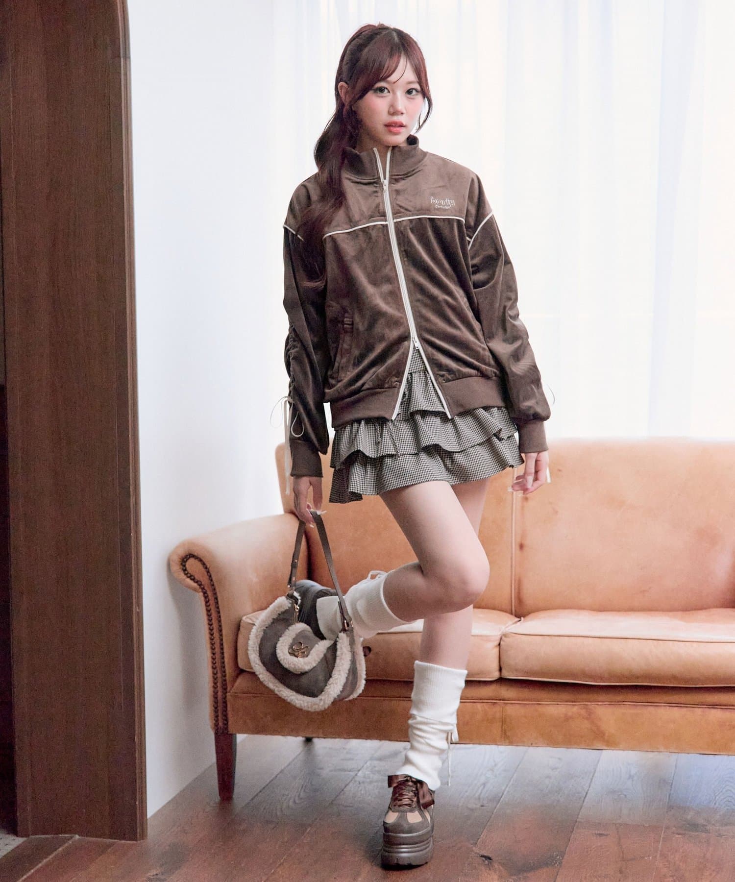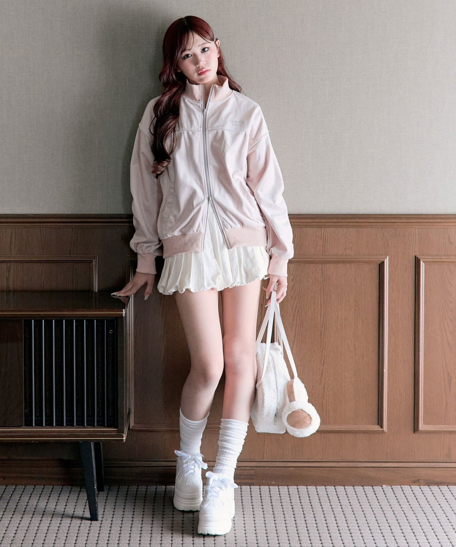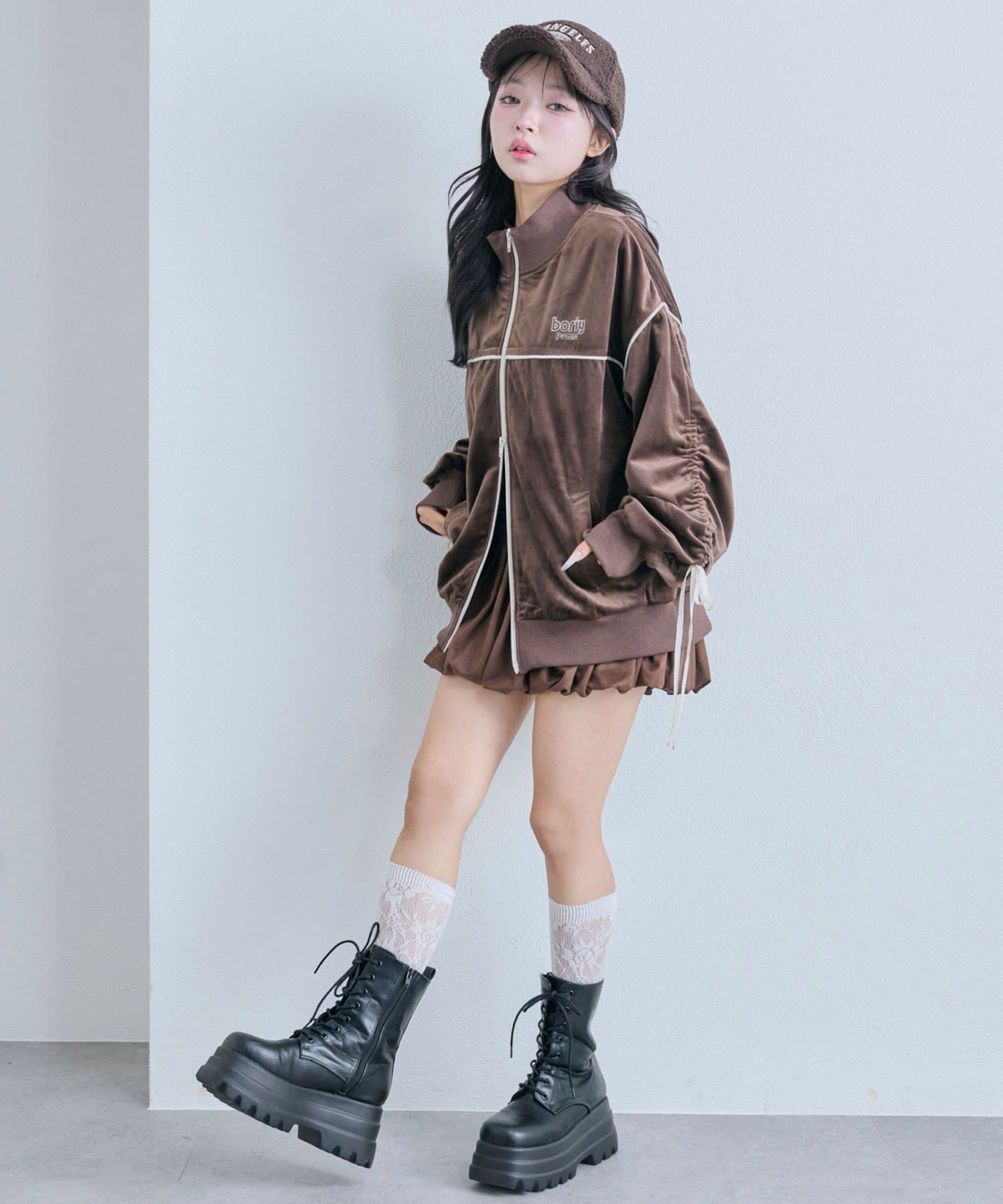 ・ミニボトムと合わせて韓国っぽいカジュアルガーリーな着こなしがおすすめ。