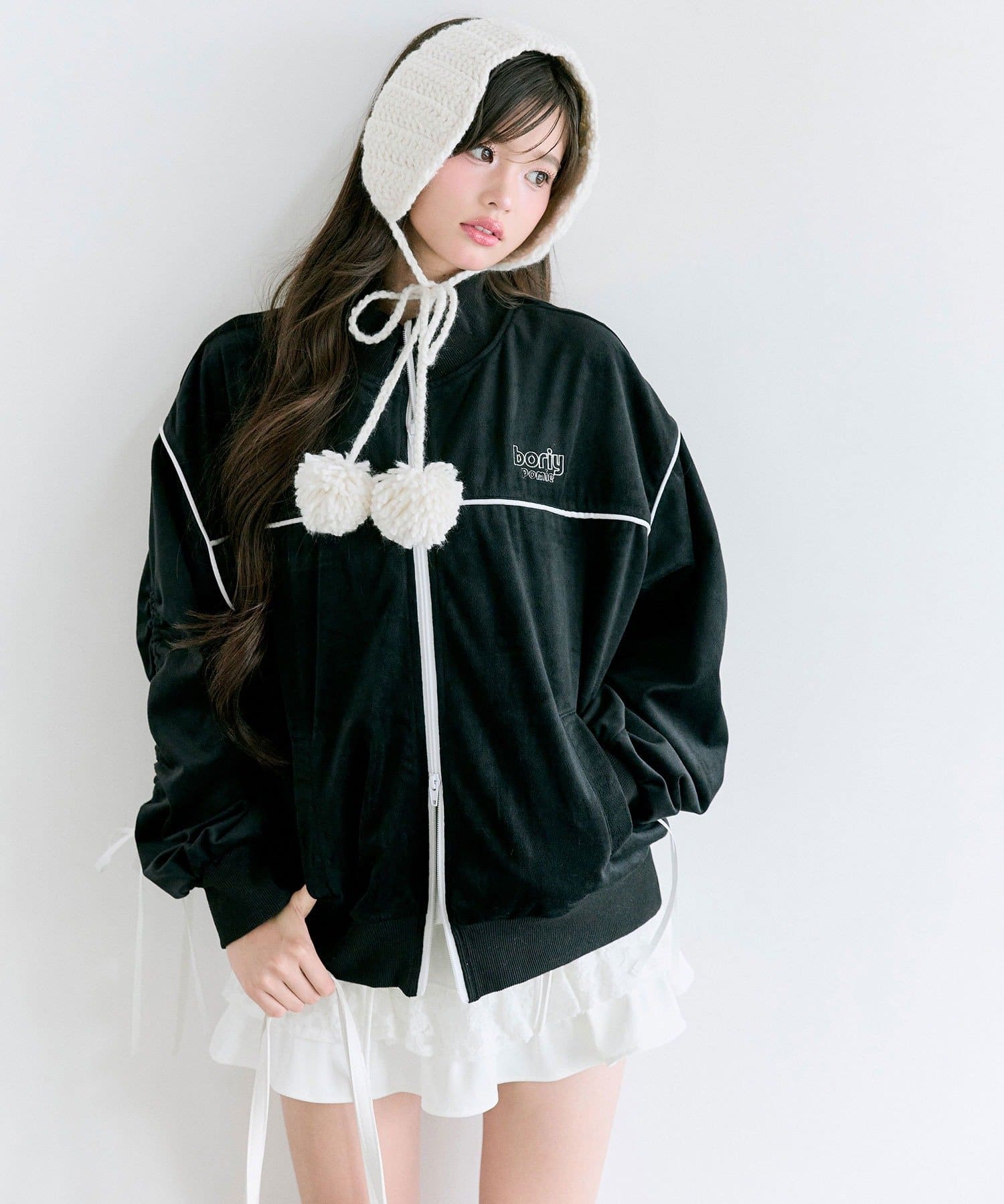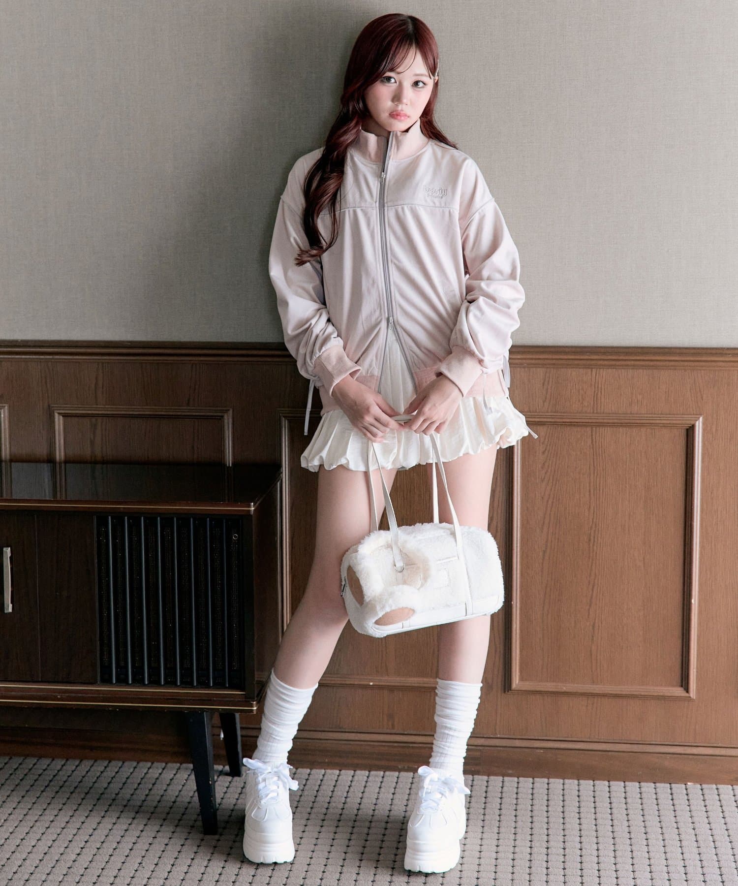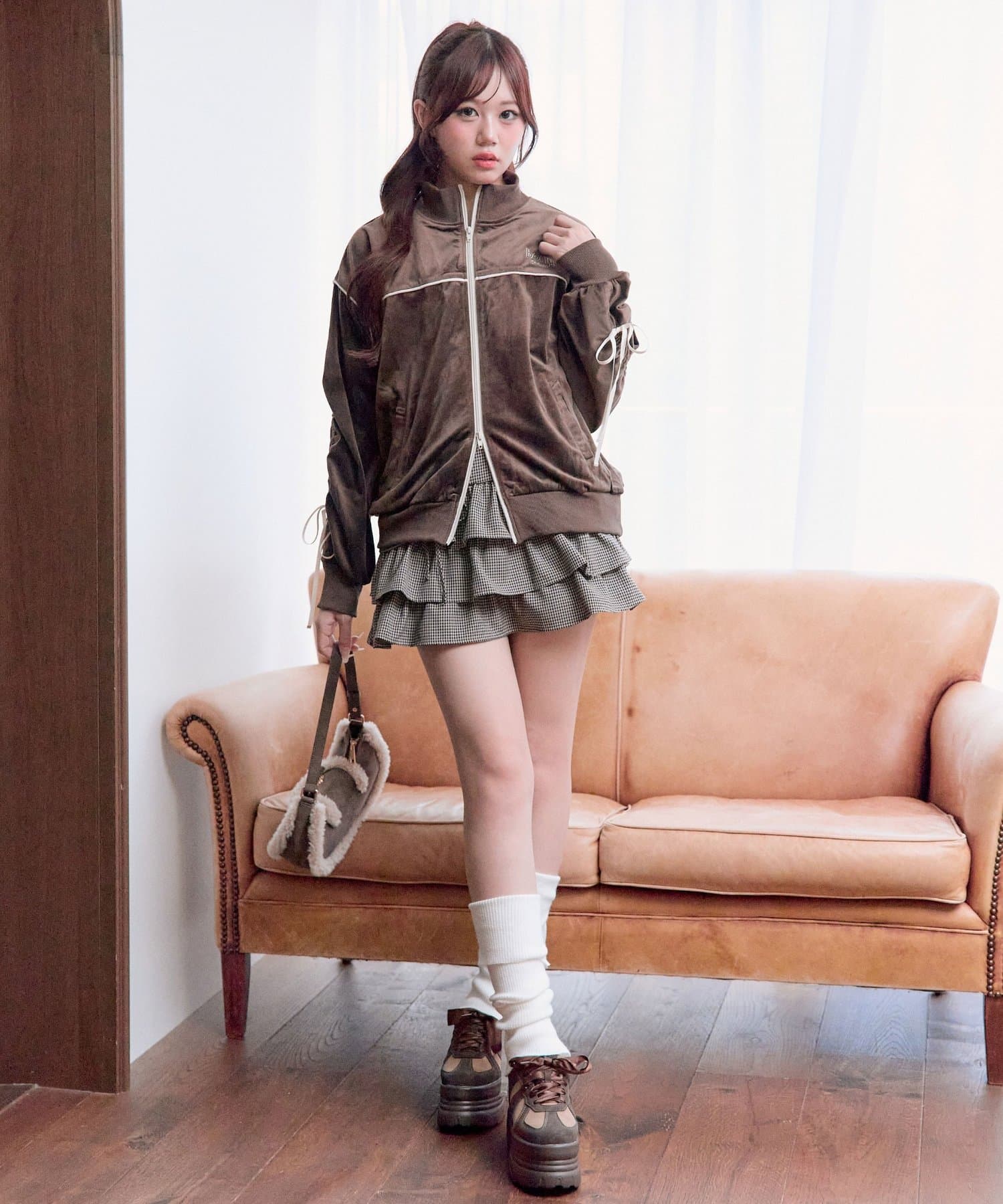 ・ミニボトムと合わせて韓国っぽいカジュアルガーリーな着こなしがおすすめ。