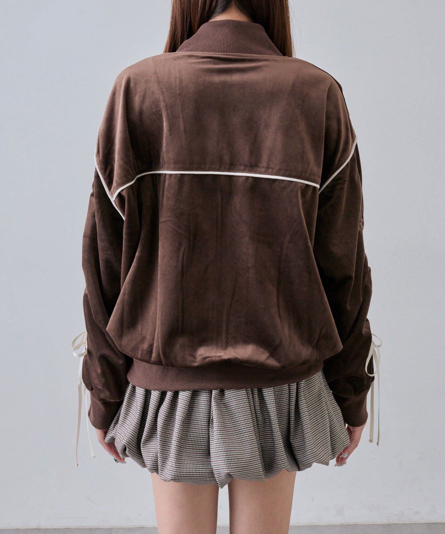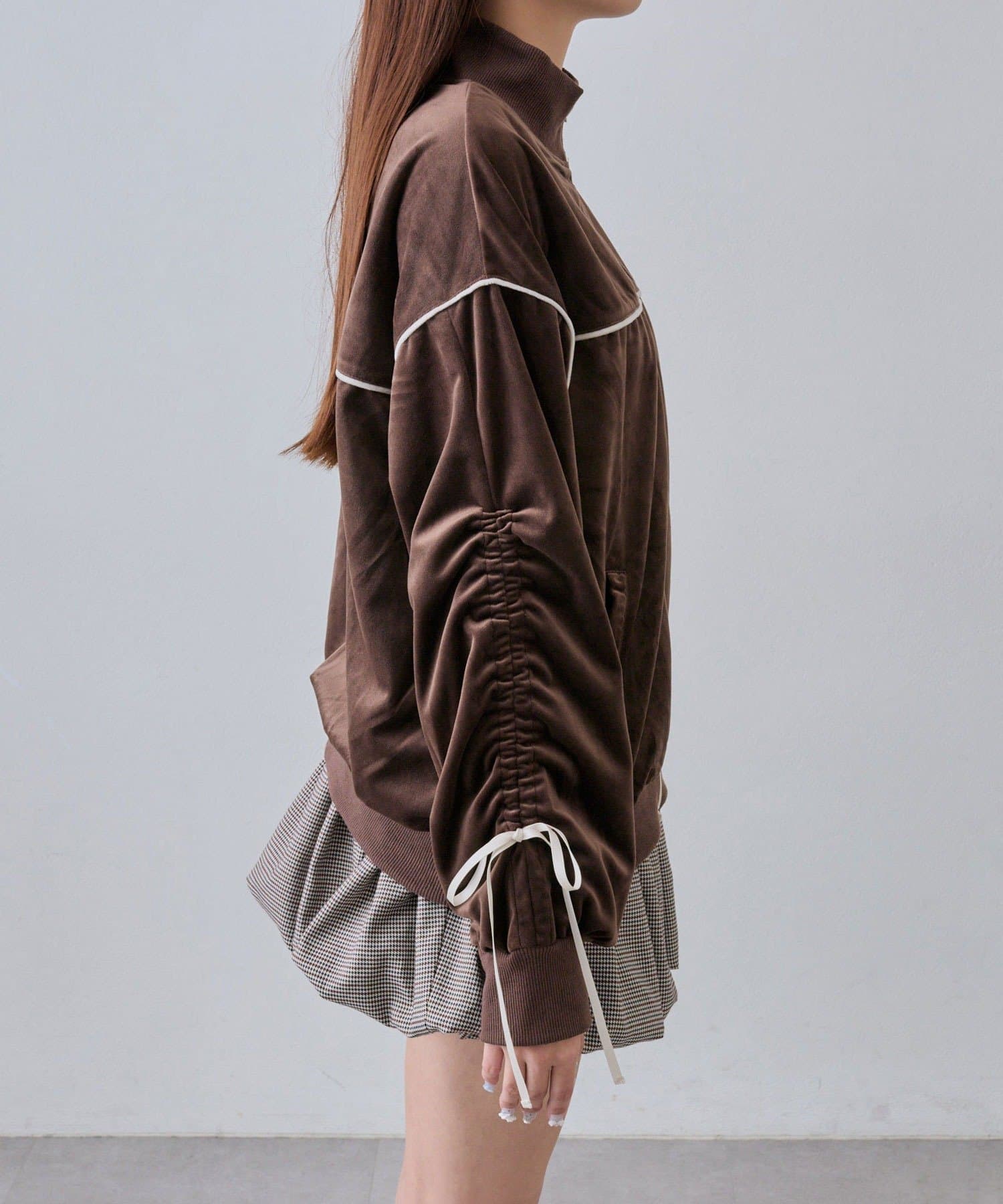 ・袖にはシャーリング+リボン付きで、フェミニンなアクセントをプラスしてくれます。
