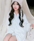 ・フード付きでカジュアル感もありつつ、女の子らしい丸みのあるシルエット。