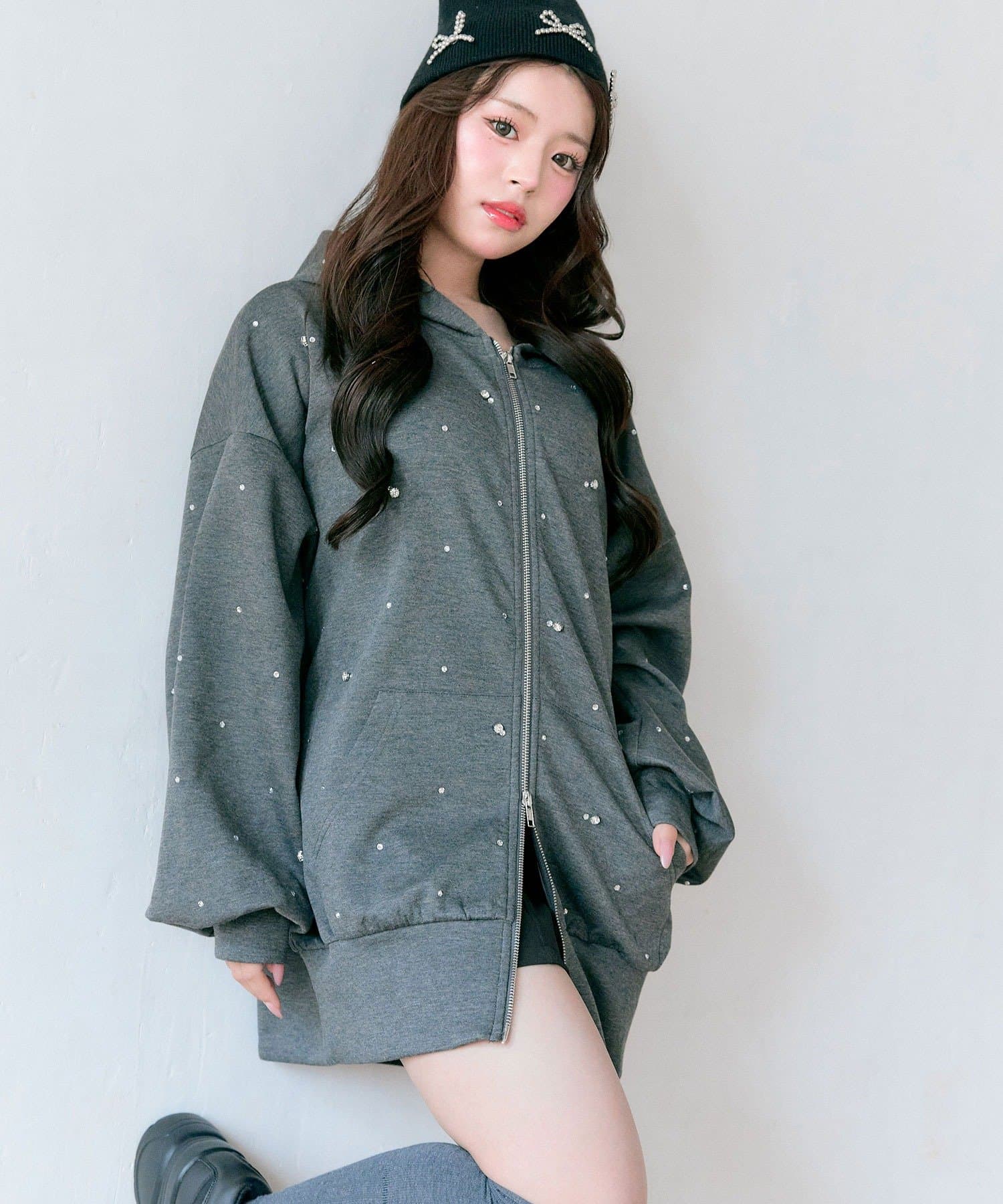 ・ミニ丈のボトムを合わせてすっぽり着るのがおすすめ。