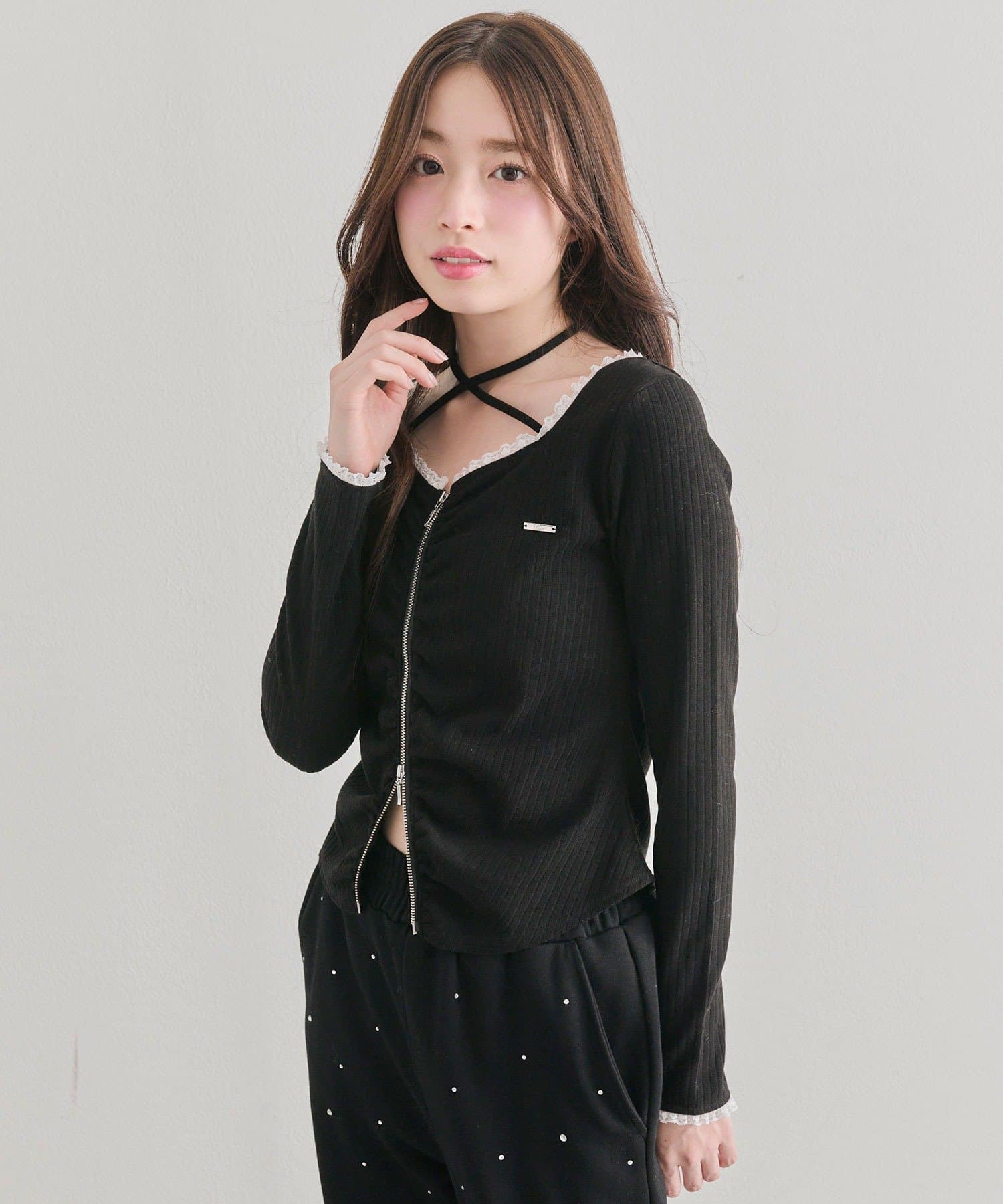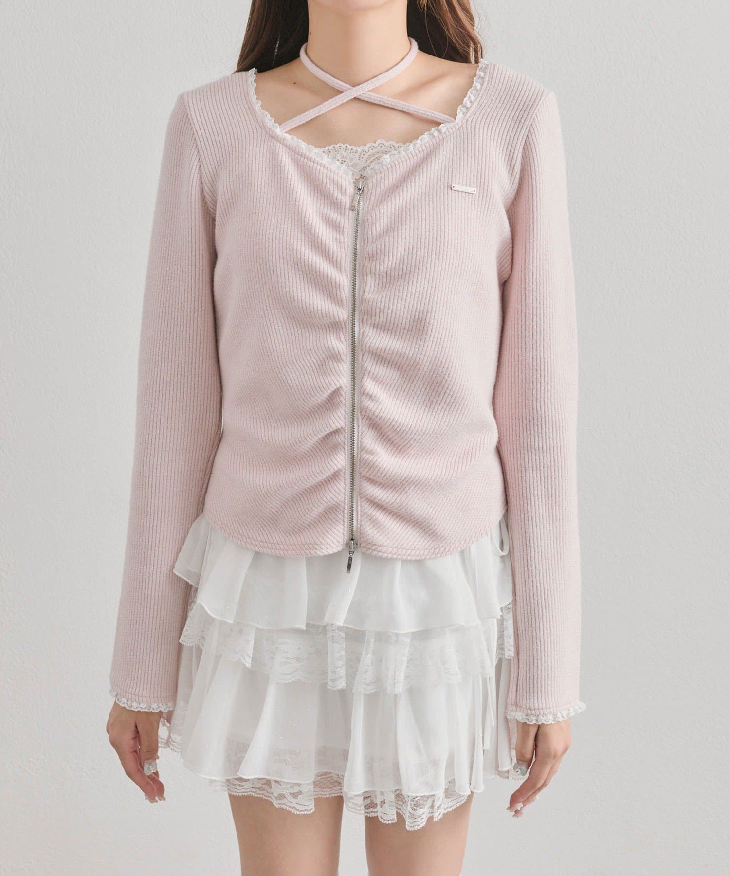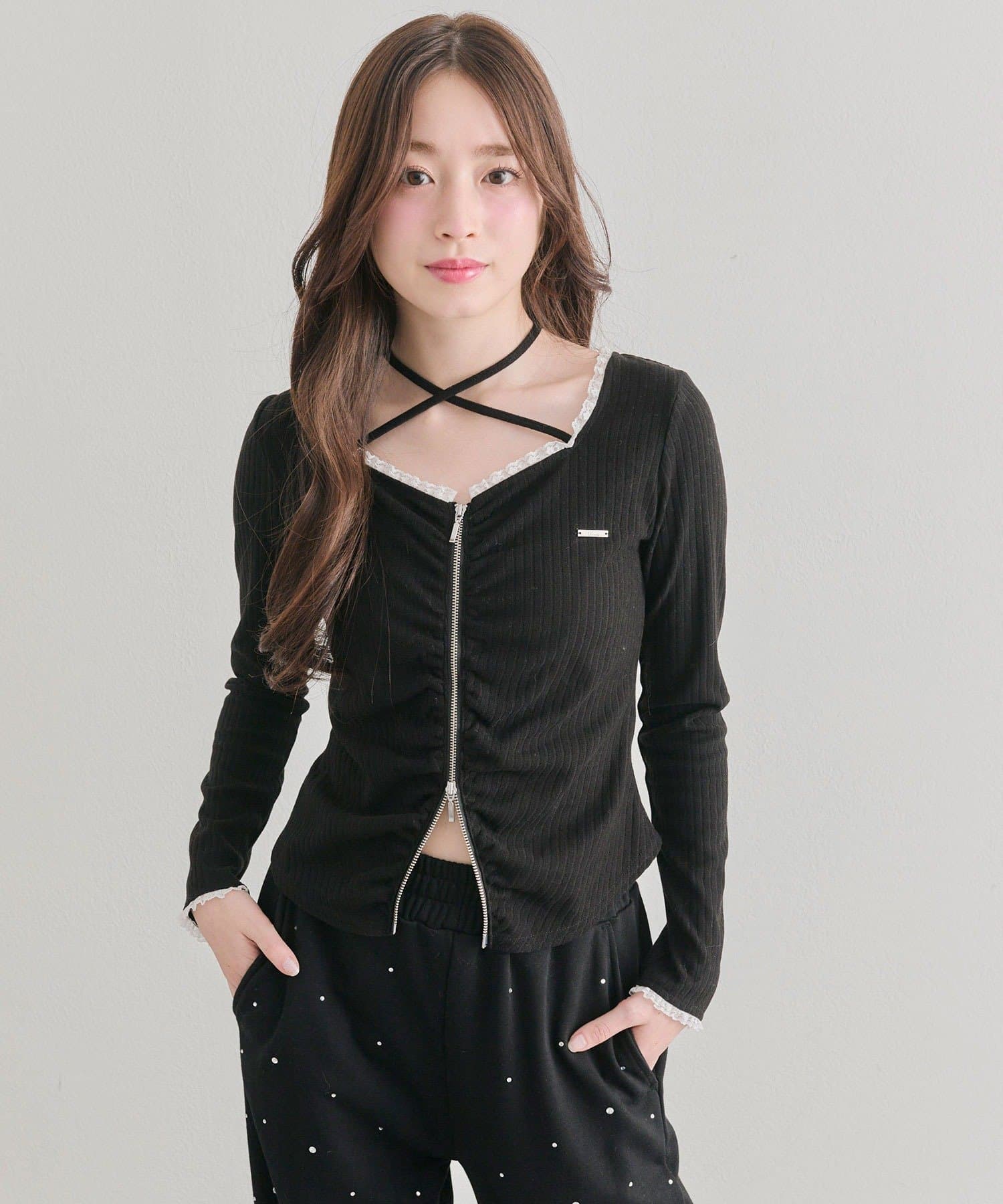 胸ギャザーとZIPで着るだけで可愛い主役トップス