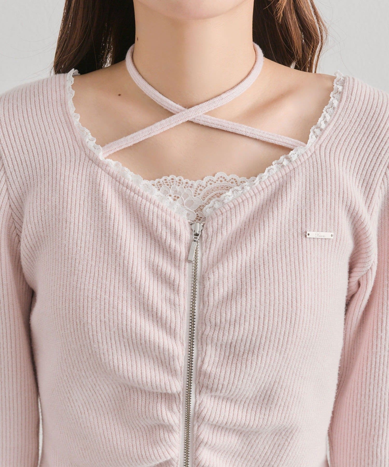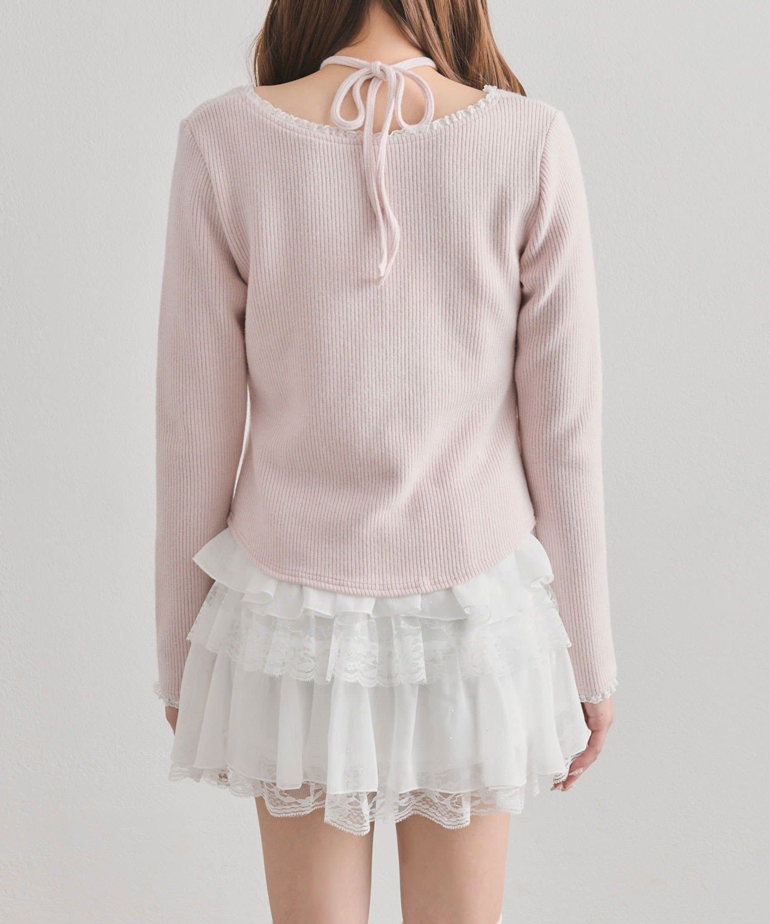 ・首元と袖口のさりげないレースで甘さもあるデザインです。