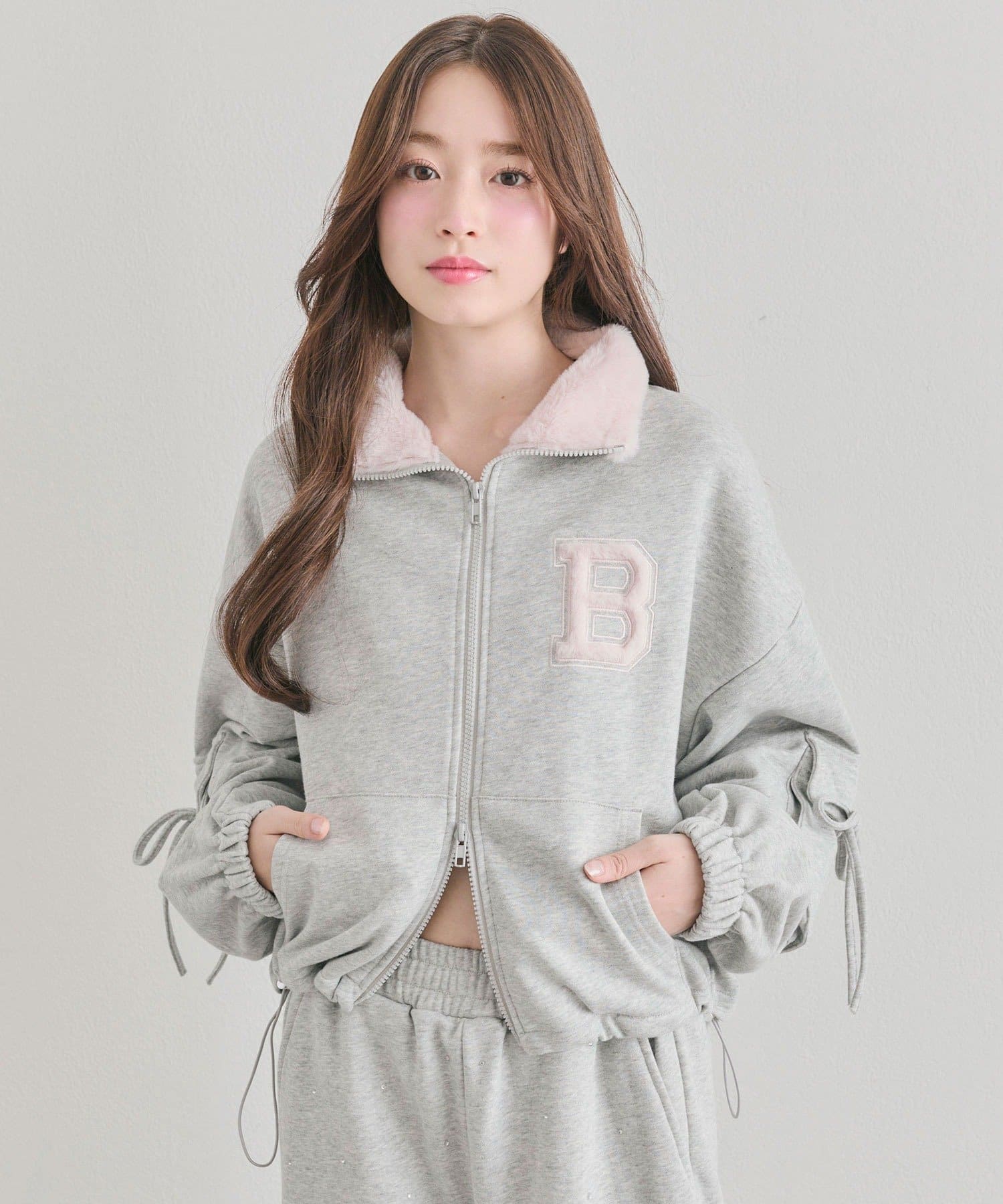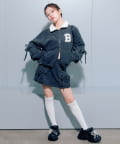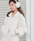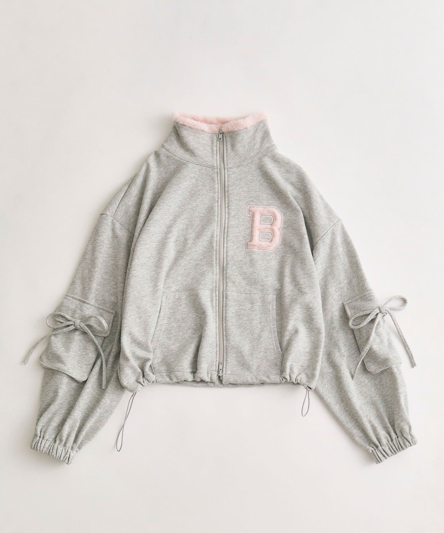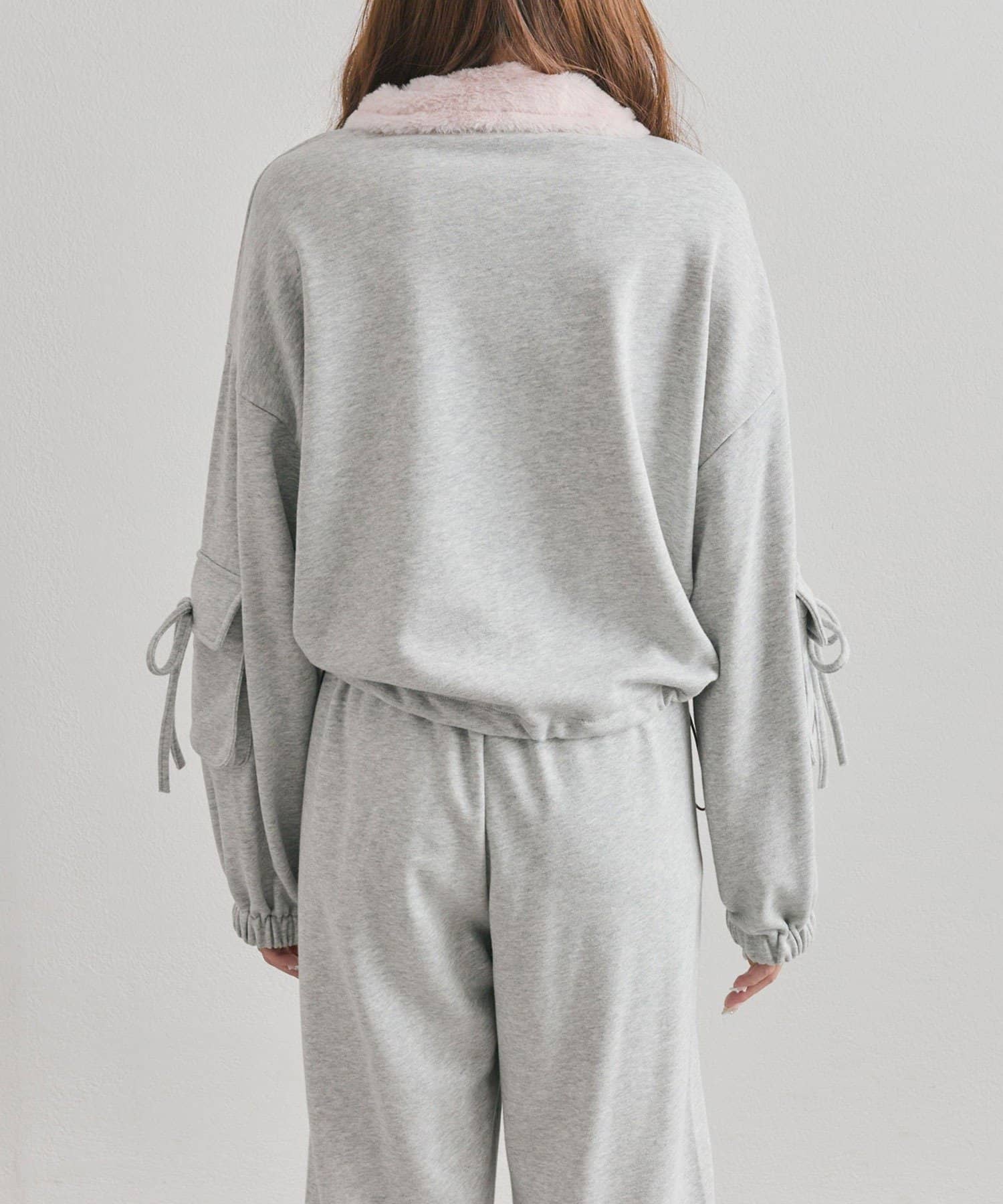 ・袖のポケットとリボン、胸元のファーロゴで、カジュアルとガーリーを両立したデザイン。